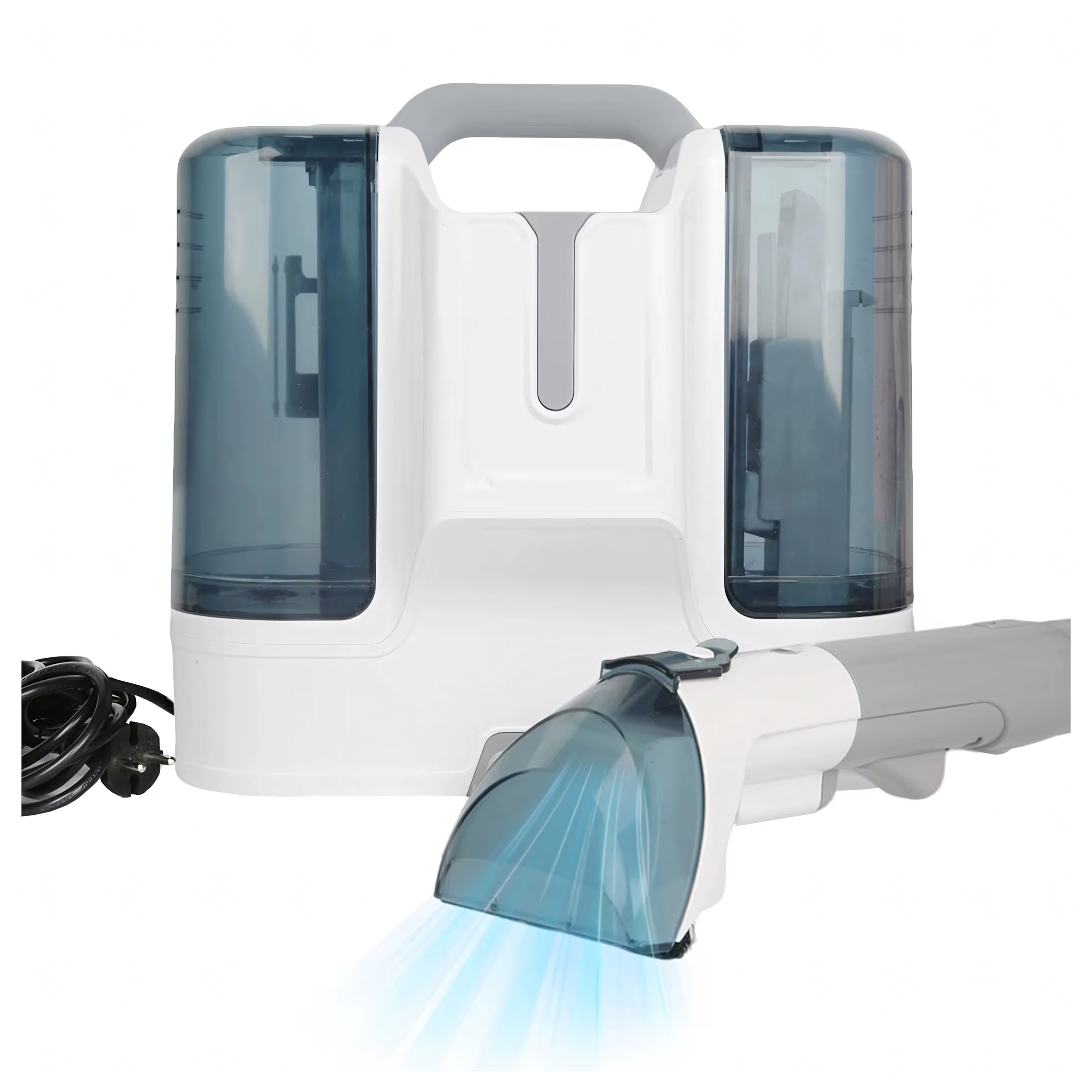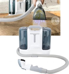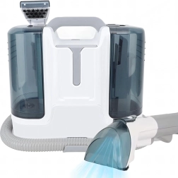 Kompaktan i snažan prijenosni perač s snagom 450 W i jakim usisom 11 kPa učinkovito čisti tepihe, sofe, madrace i autosjedala. Zahvaljujući dvostrukim spremnicima za čistu i prljavu vodu, fleksibilnom crijevu i praktičnim nastavcima brzo uklanja mrlje, prljavštinu i tekućine i s teško dostupnih mjesta.
