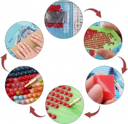 Ovaj kompletan set za dijamantnu mozaiku idealan je za početnike i napredne. Prema preglednoj shemi umećete akrilne “dijamante” na predtisnuto i ljepljivo platno, čime nastaje blistava 5D slika s izraženom dubinom i sjajnim bojama. Izrada je intuitivna, opuštajuća i pogodna za kreativni odmor nakon napornog dana.