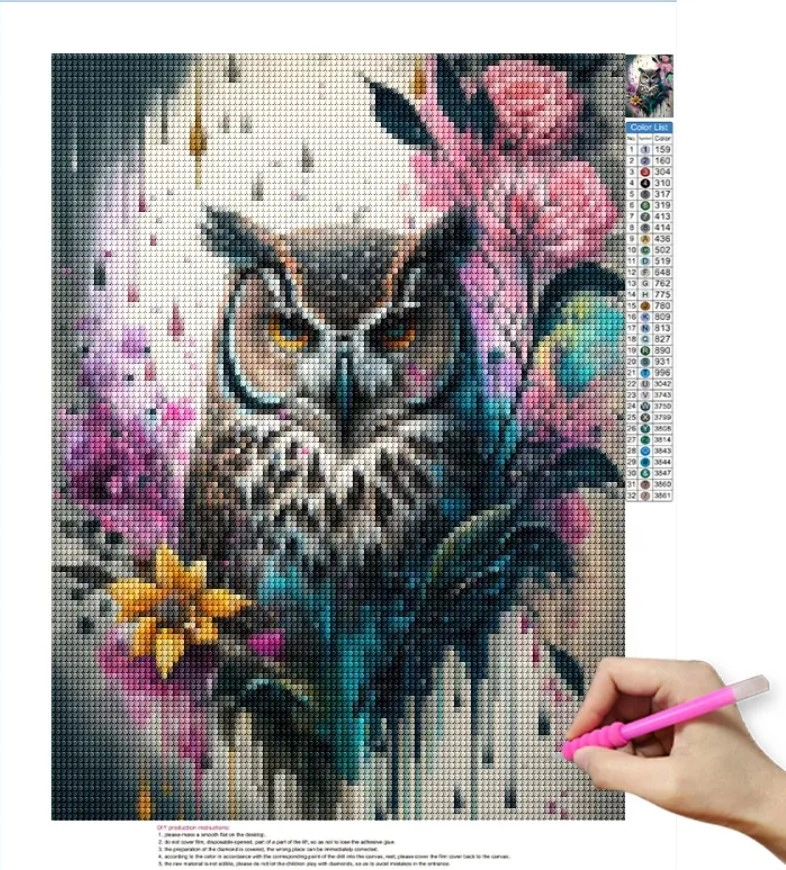 U ovom kompletnom setu pronaći ćete samoljepljivo tiskano platno, obojene kamenčiće, aplikator s voskom i posudicu za razvrstavanje. Dovoljno je postupno skidati foliju, pokupiti kamenčiće voskastim vrhom i precizno ih postavljati prema legendi. Ova aktivnost razvija strpljenje, preciznost i finu motoriku te je prikladna za odrasle i djecu uz nadzor.