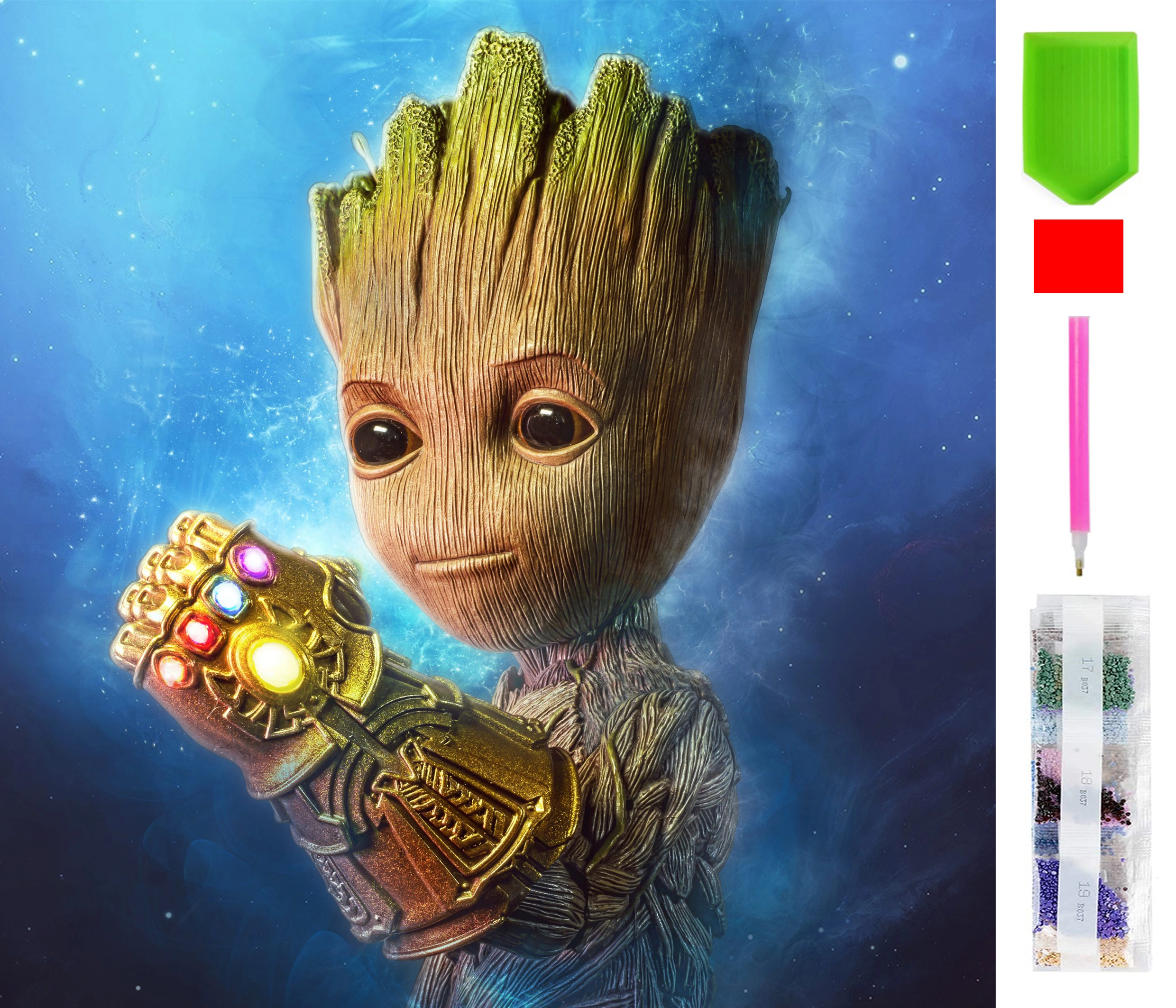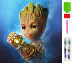 Ovaj komplet za dijamantno slikanje (haft diamentowy) omogućuje vam izradu blještavog mozaika s motivom Groot. Postupak je jednostavan: prema simbolima na samoljepljivom platnu postavljate obojene kamenčiće (drille) i promatrate kako nastaje sjajna 3D mozaika. Kreativno stvaranje koje smanjuje stres, razvija strpljenje i preciznost te donosi doista impresivan rezultat.