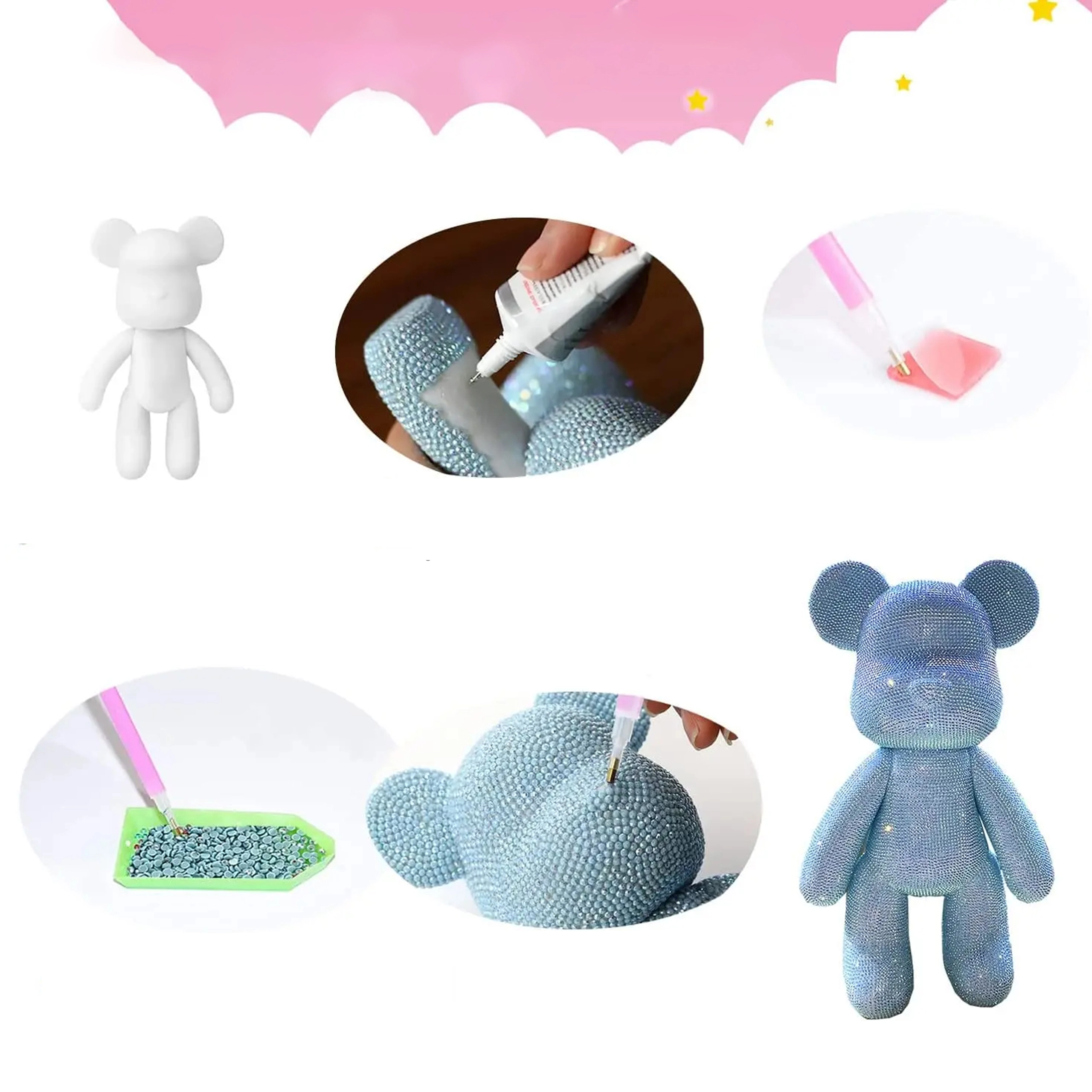 U pakiranju se nalazi sve potrebno: posebno ljepilo za kamenčiće, aplikator/olovka za udobno podizanje, tacna za razvrstavanje i kvalitetni dijamantni kamenčići u raznim bojama. Zahvaljujući njima, medvjediću ćete dati jedinstven sjaj i osobit stil. Odlična ideja za poklon za rođendane, blagdane ili dječje proslave.