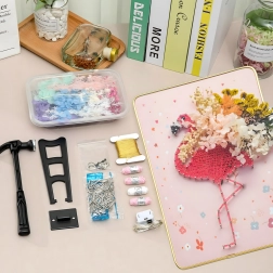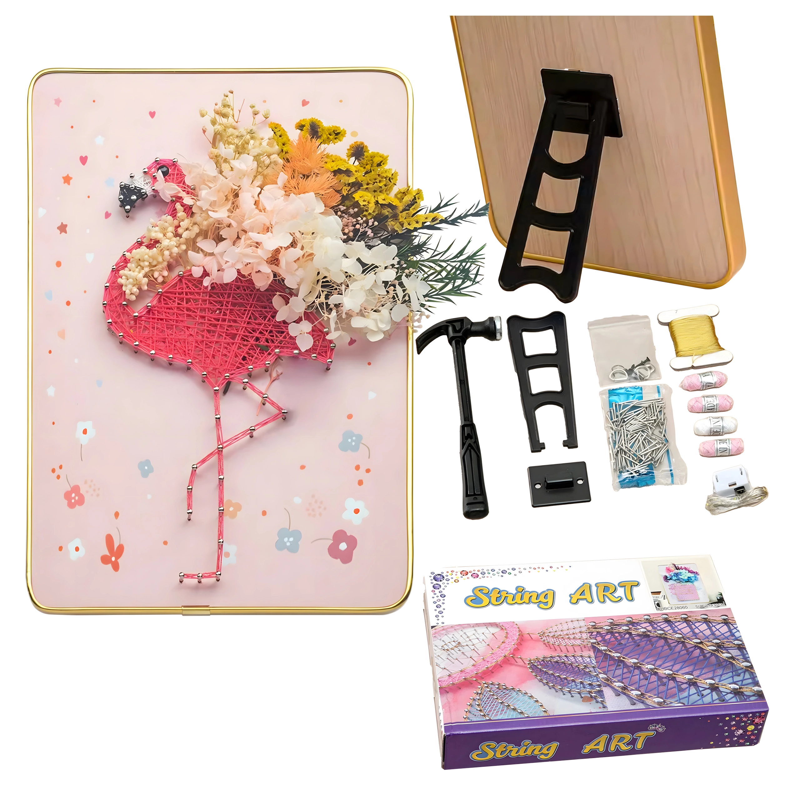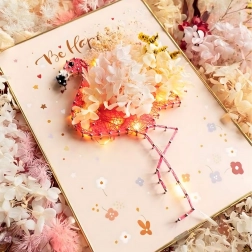 Ovaj kreativni set za string art (omotavanje niti oko čavlića) omogućuje vam lako stvoriti stylish sliku s motivom flaminga i cvijeća. Gotovu sliku možete objesiti na zid ili postaviti na policu. Integrirano LED osvjetljenje osvjetlit će završni motiv i pretvoriti ga u dojmljivu svjetlosnu dekoraciju.
