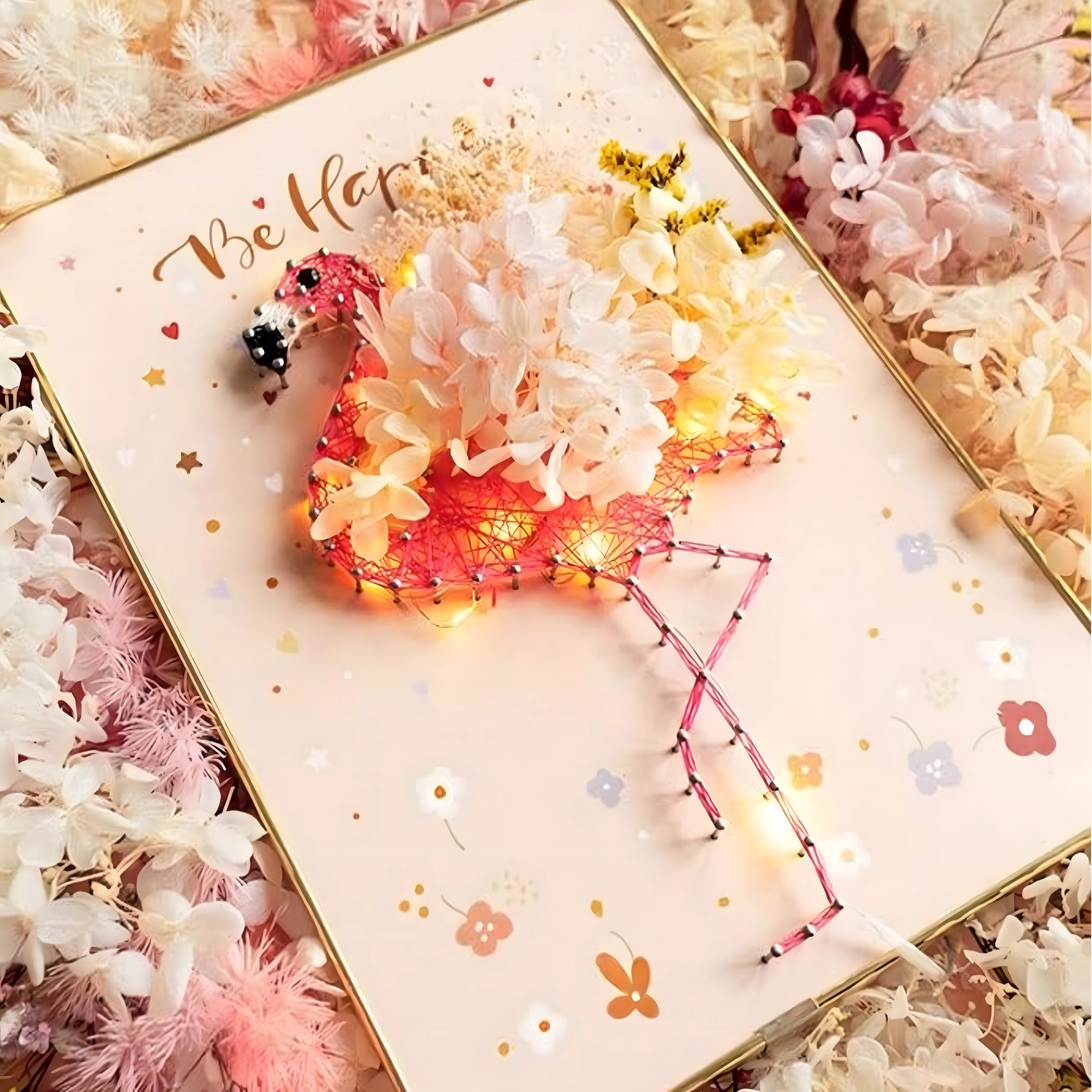 Ugrađena LED svjetla daju gotovoj string art slici čaroban ugođaj i stvaraju ugodnu atmosferu u svakom interijeru.