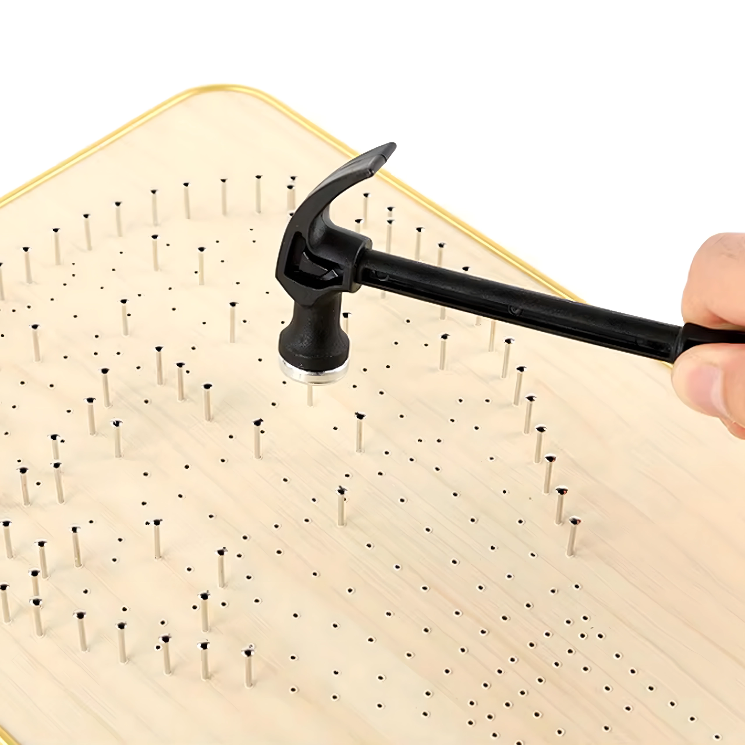 Mreža unaprijed pripremljenih otvora i mali čavlići ubrzavaju rad i preciziraju oblikovanje motiva. Prikladno i za početnike te djecu uz nadzor.