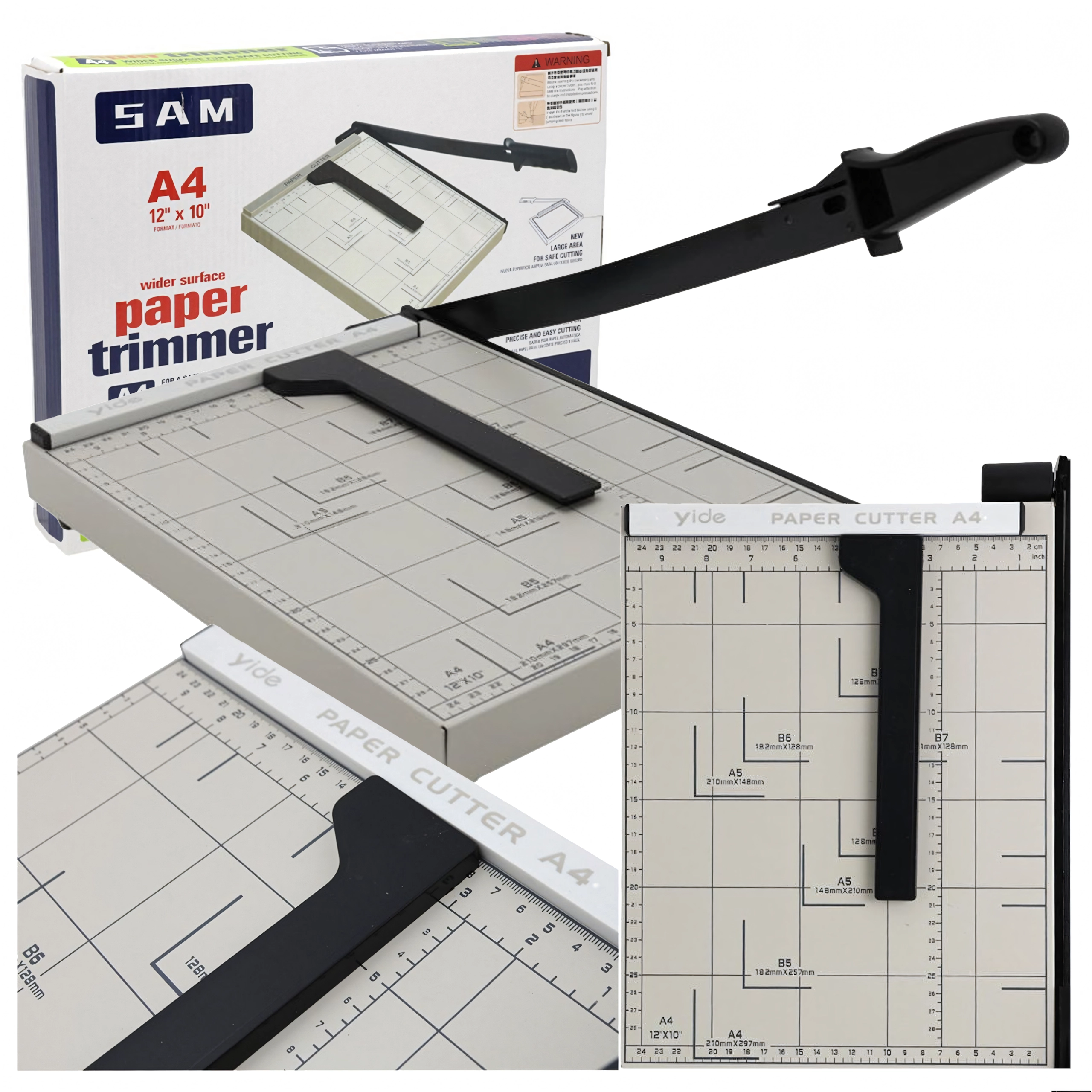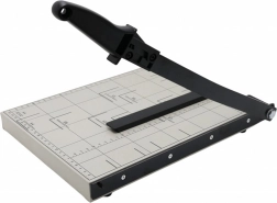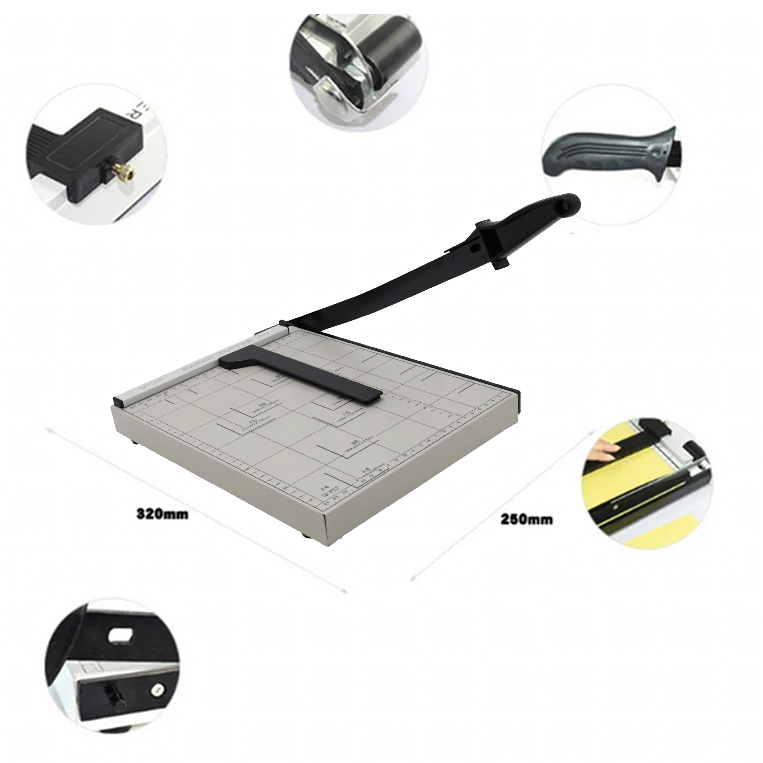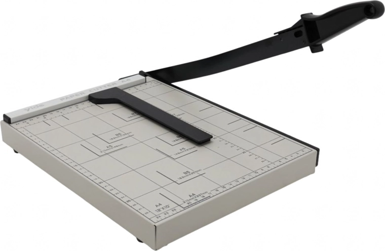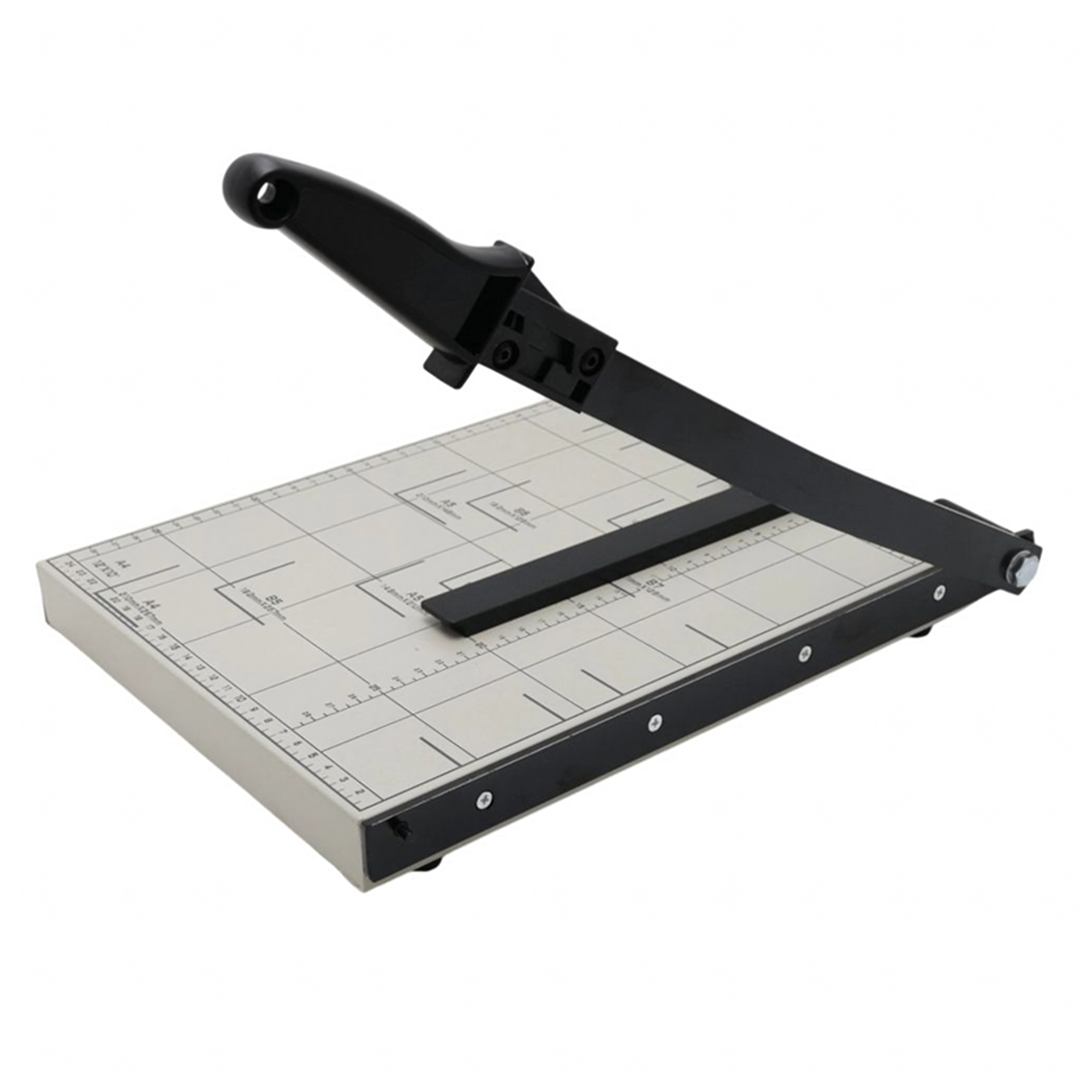 Ova izdržljiva giljotina omogućuje sigurne i ravne rezove zahvaljujući preciznoj mjernoj mrežici i vodičima formata (A4, A5, B5, itd.). Robusna metalna konstrukcija i poluga s udobnom drškom osiguravaju gladak rad i konzistentne rezultate pri obrezivanju dokumenata, fotografija ili materijala za prezentacije.