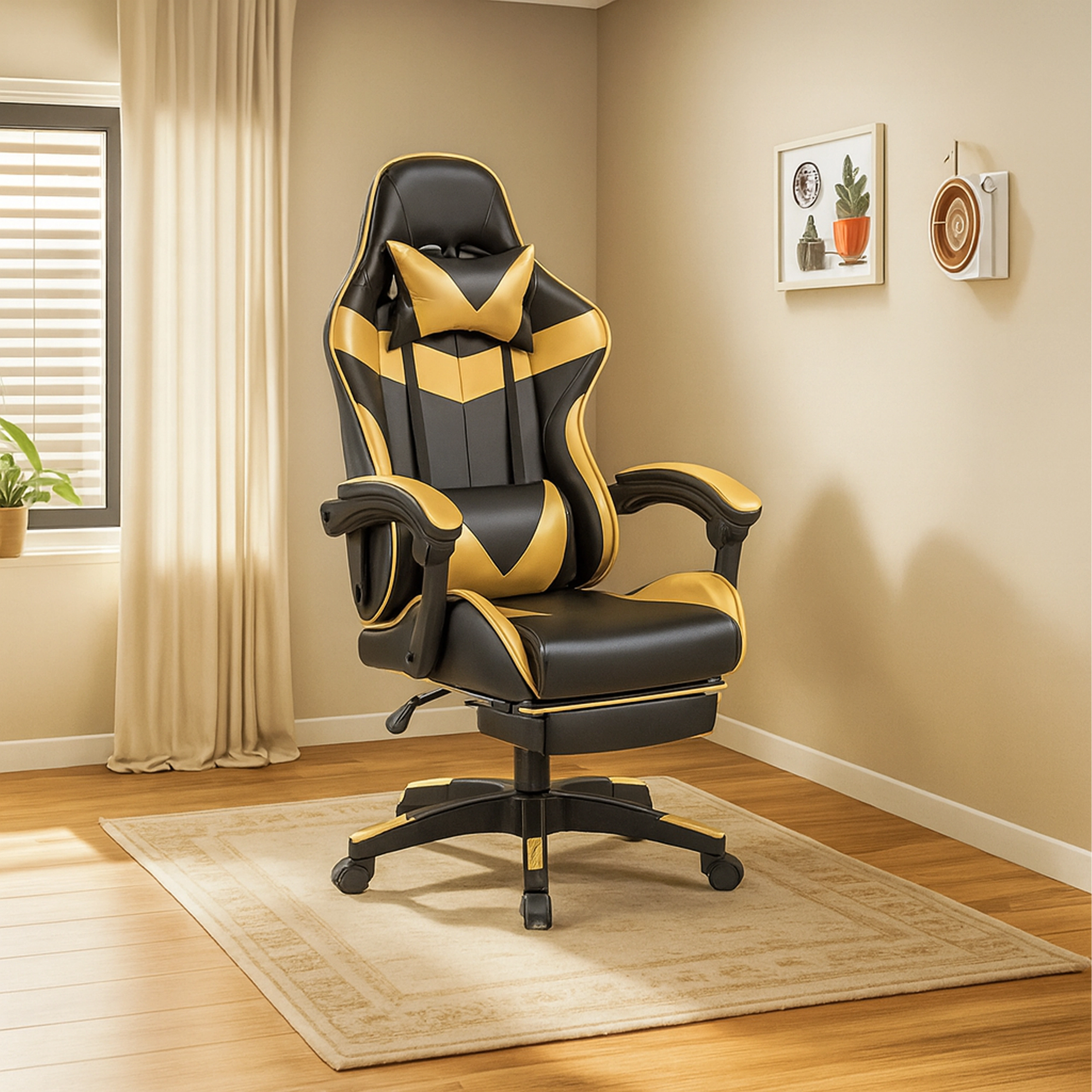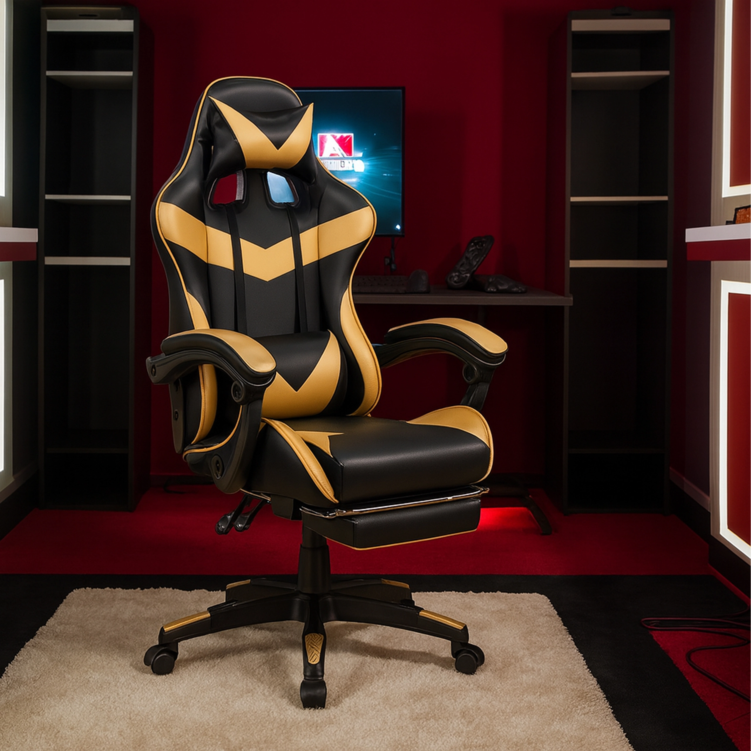 Sportski “racing” dizajn s kontrastnim akcentima odlično izgleda u gaming sobi i modernom uredu. Izdržljivi presvlaku materijali lako se održavaju i ublažavaju trošenje pri svakodnevnoj upotrebi.
