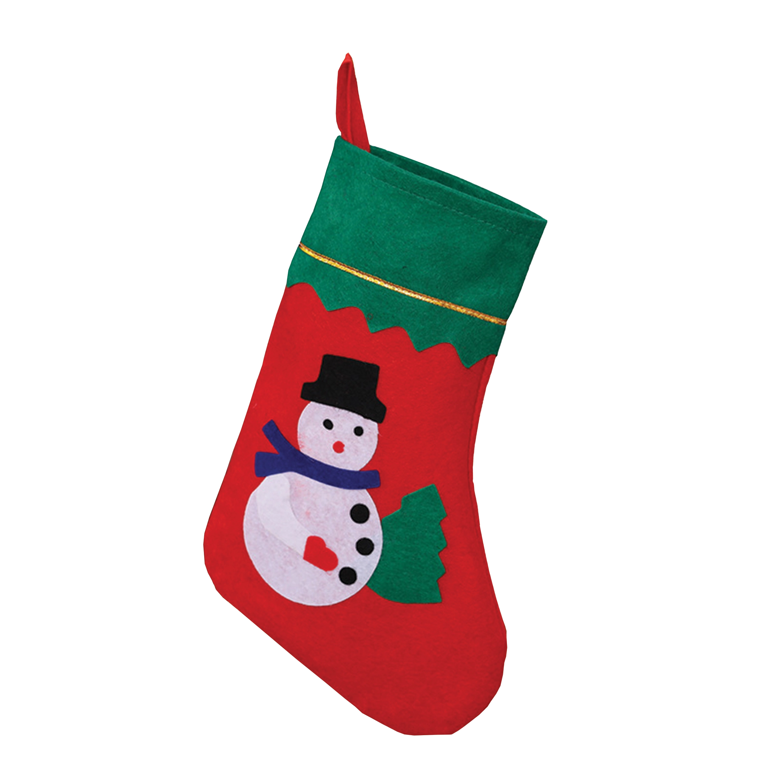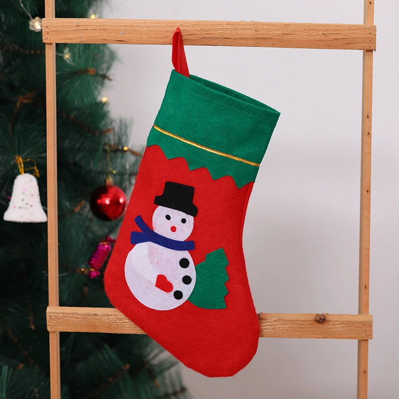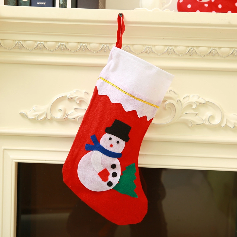 Veseli aplicirani snjegović s detaljima daje čarapi osobnost i naglašava božićno raspoloženje kraj kamina ili bora.