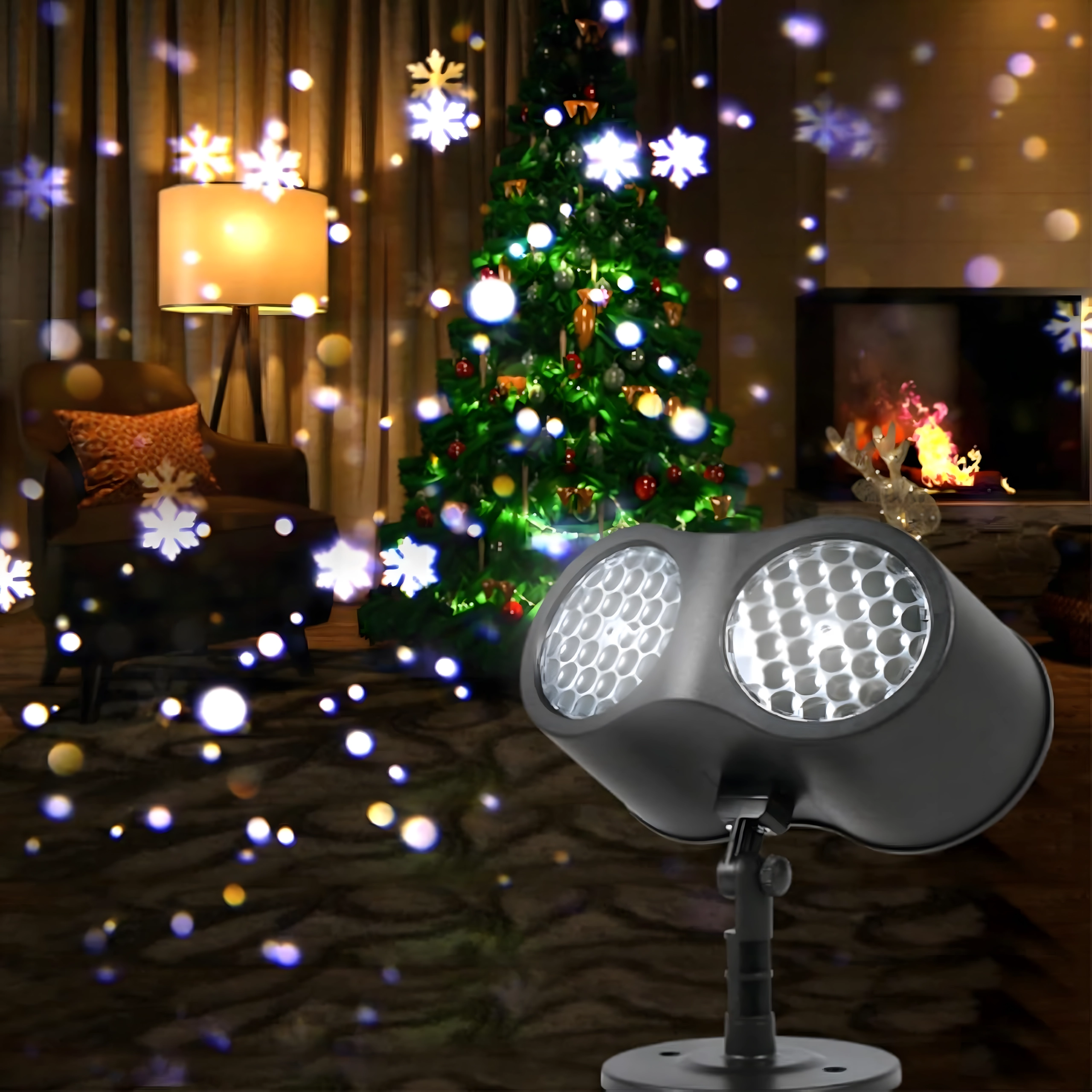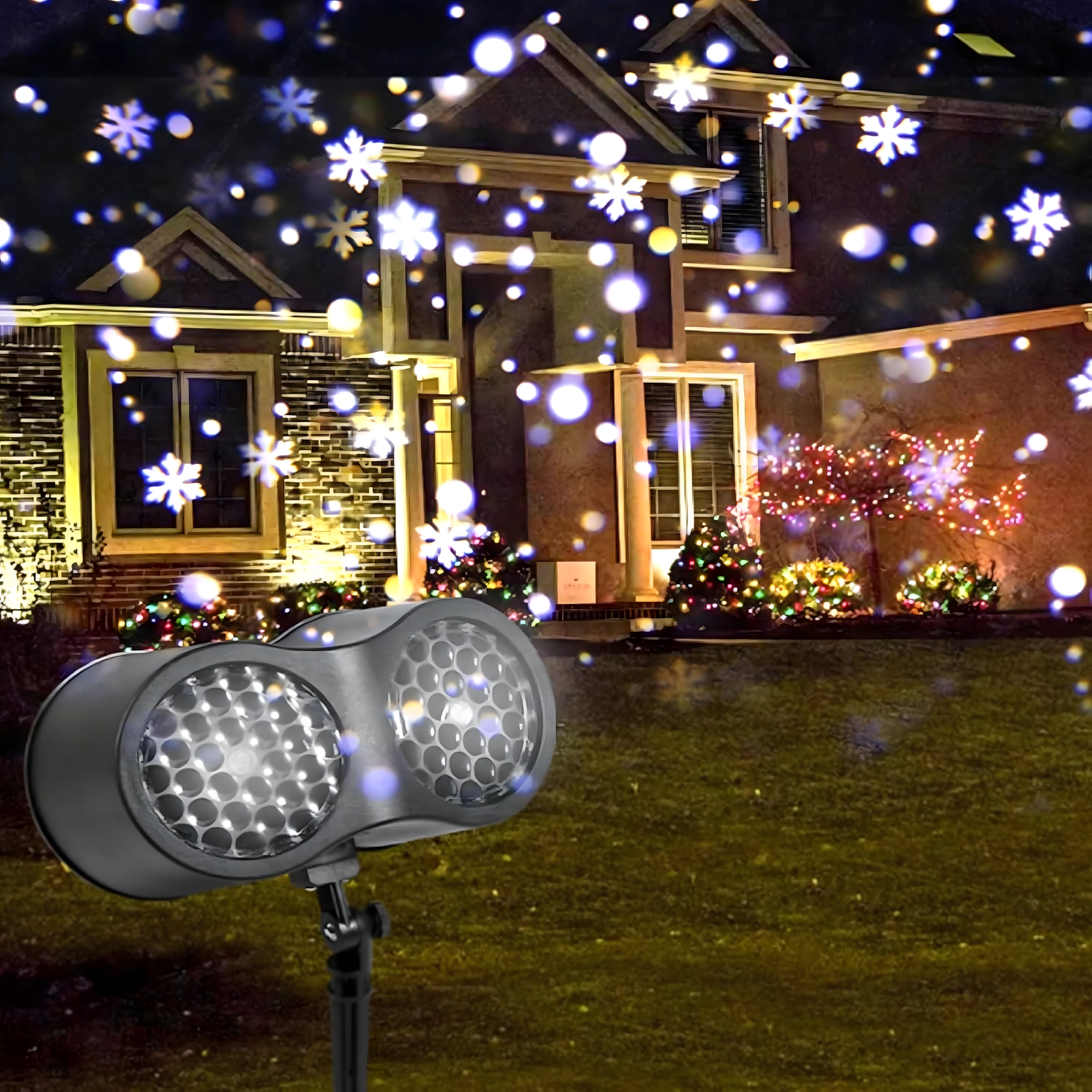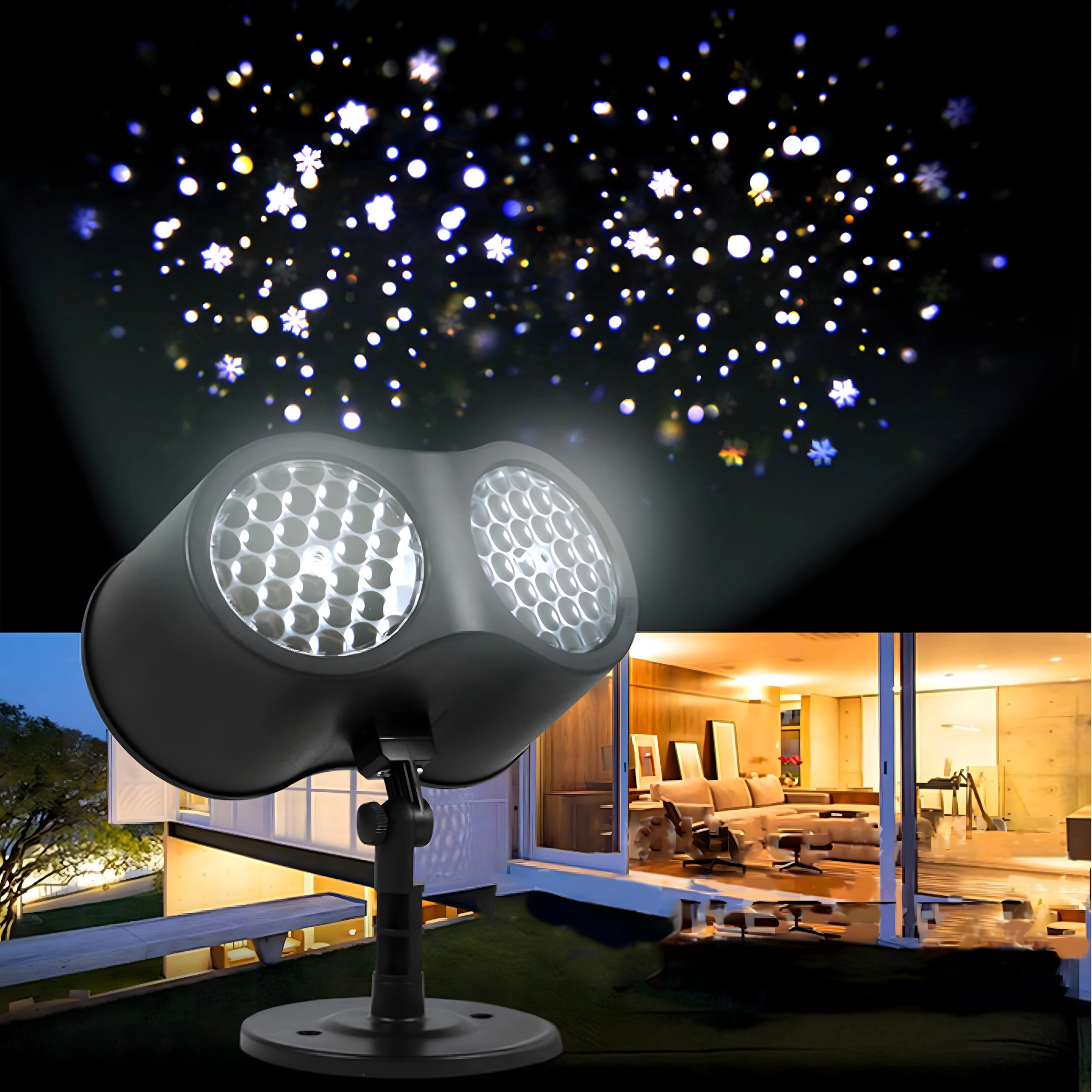 Dvostruka LED optika projicira jasne, dinamične pahuljice i točkice preko velikih površina zidova i fasada – idealno za brzu blagdansku dekoraciju bez ljestava i svjetlosnih lanaca.