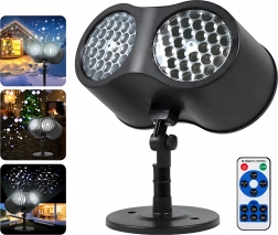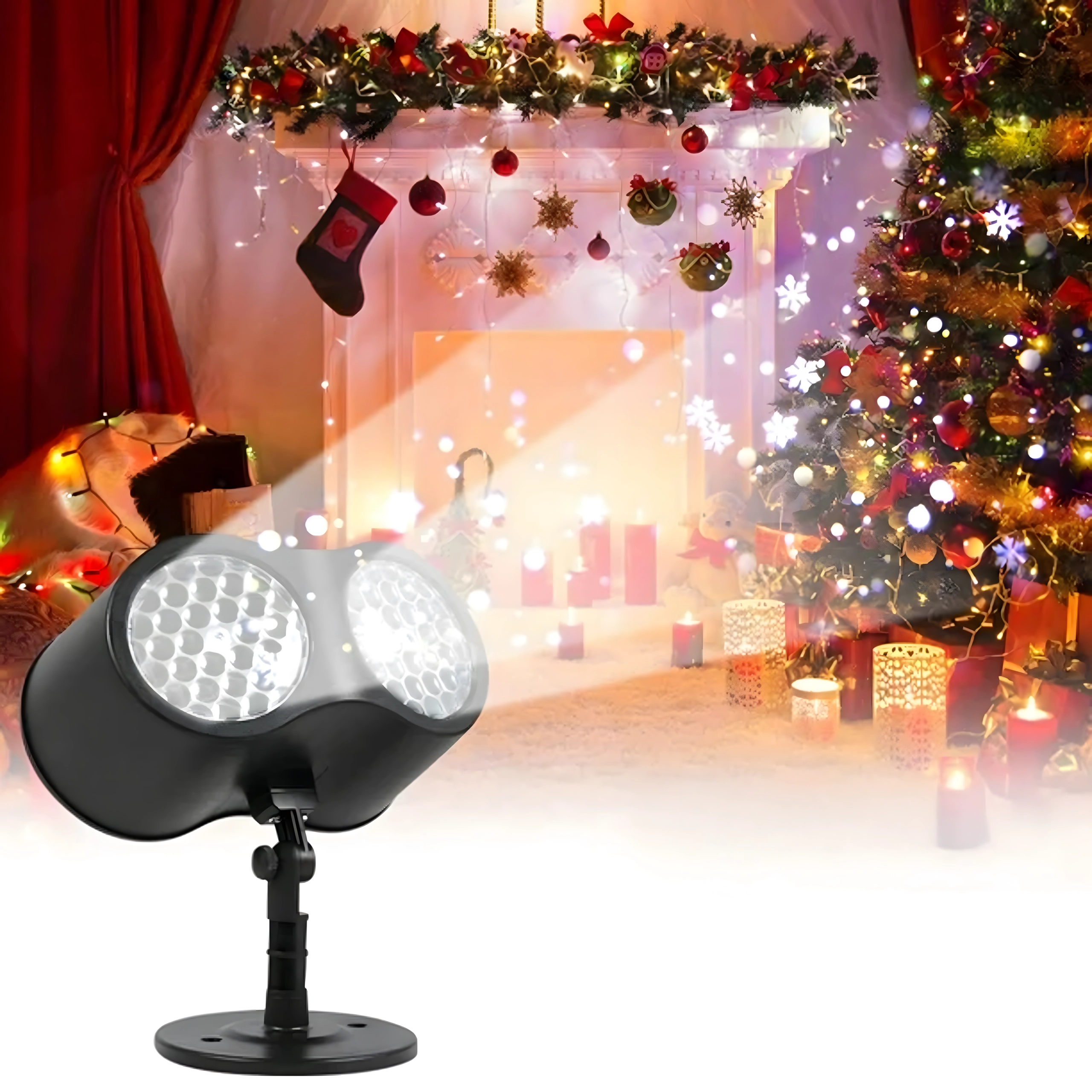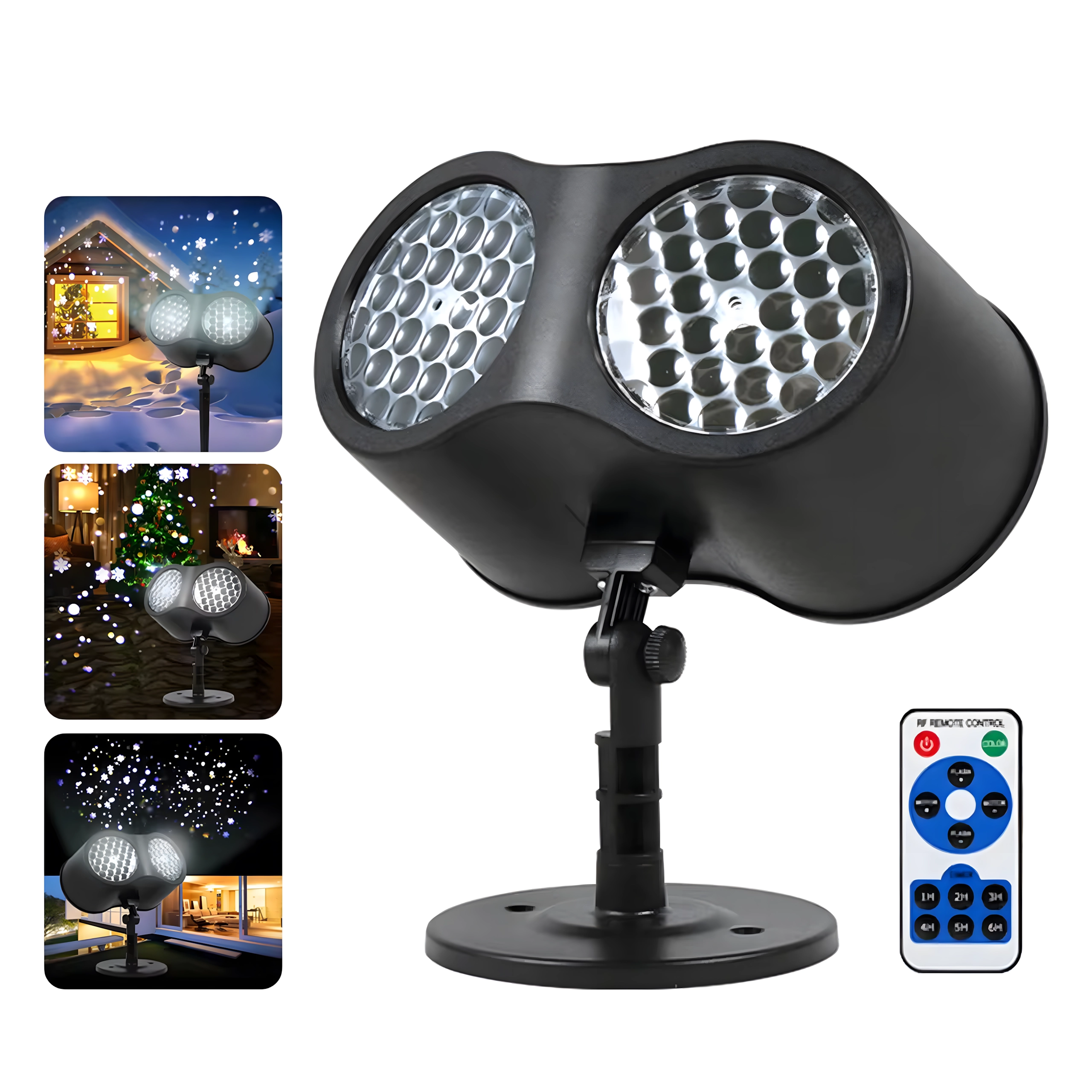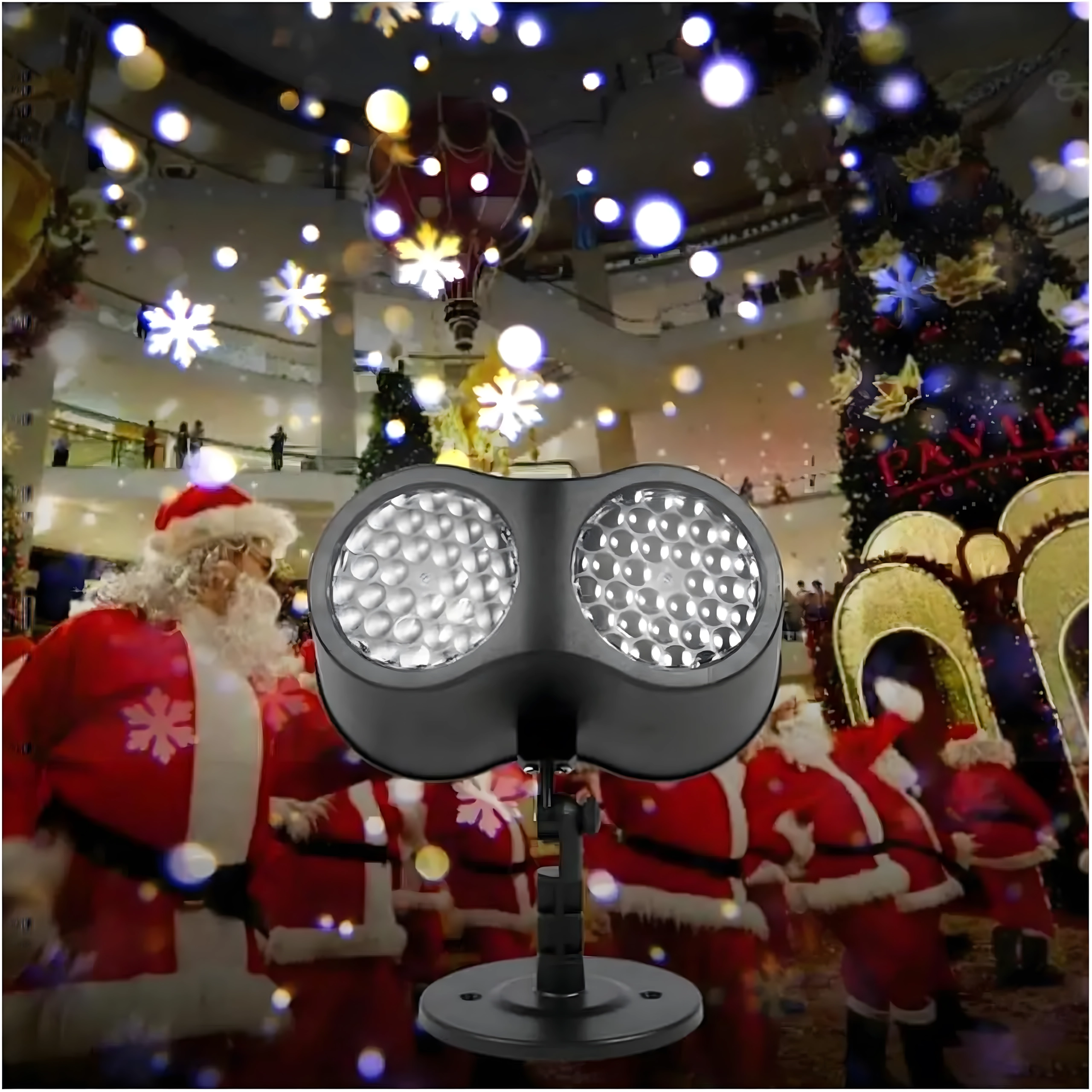 Dvostruka LED optika projicira jasne, dinamične pahuljice i točkice preko velikih površina zidova i fasada – idealno za brzu blagdansku dekoraciju bez ljestava i svjetlosnih lanaca.