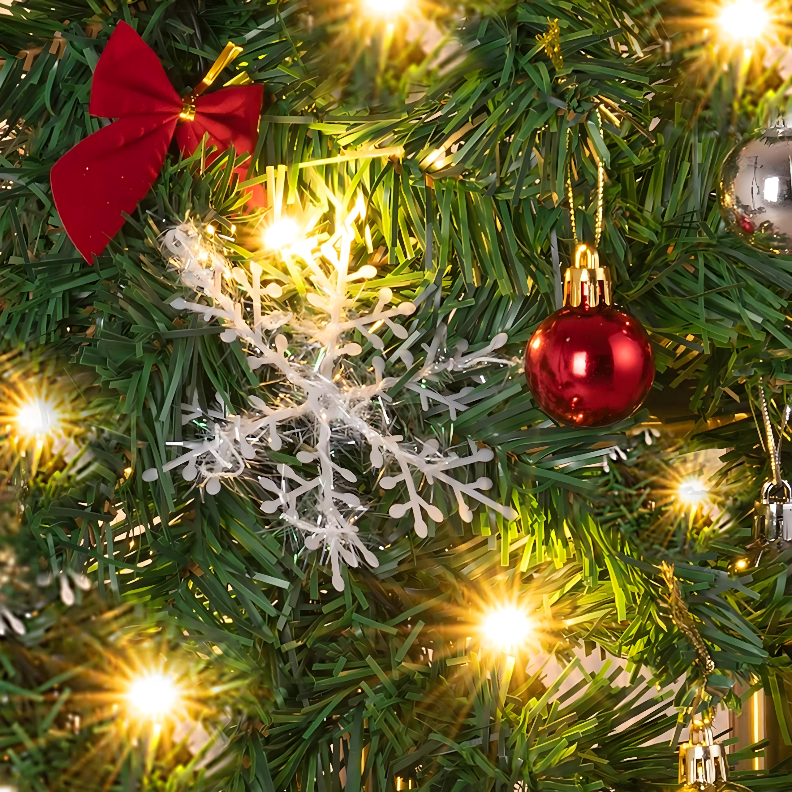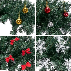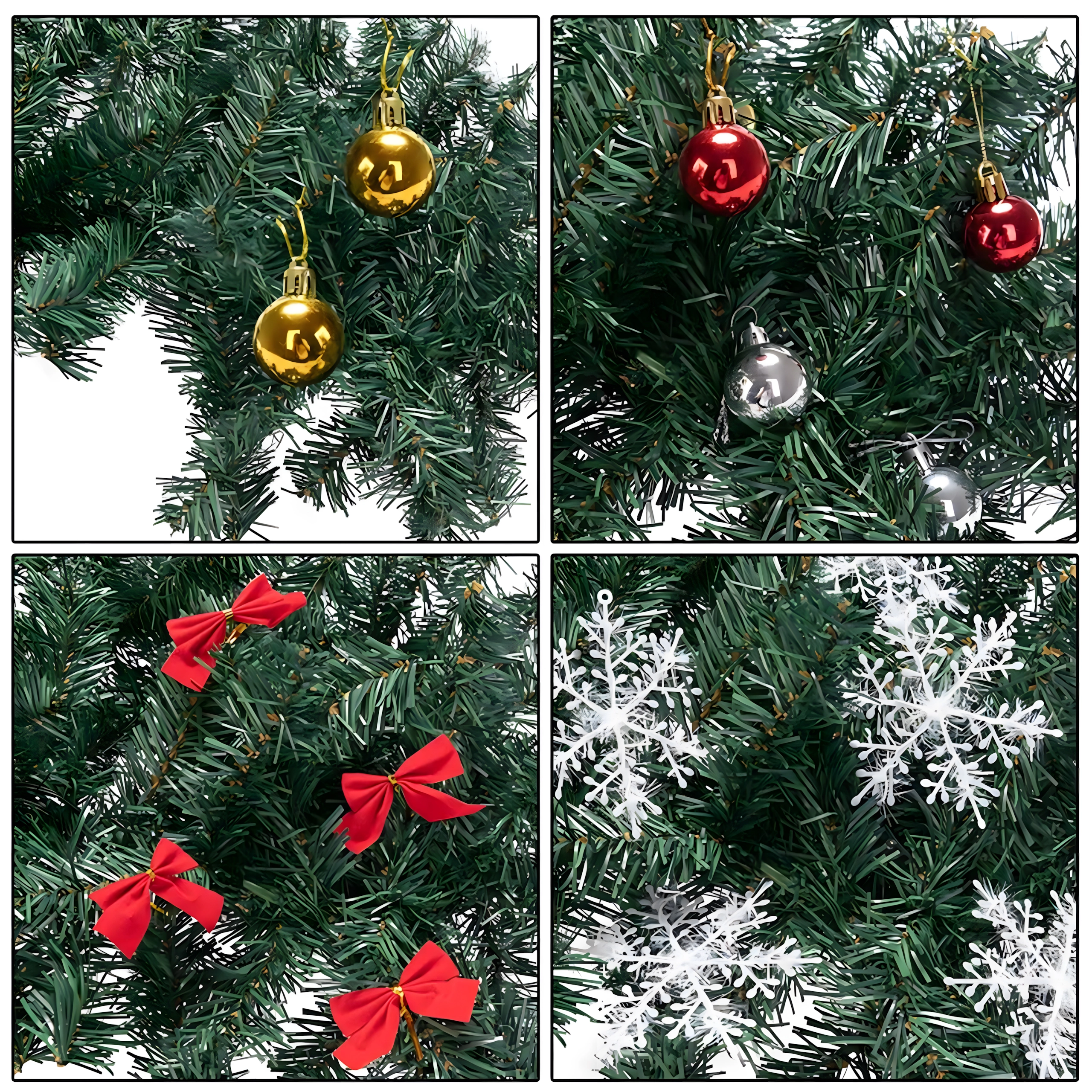 Čak 260 grančica s ukrasima – kuglice, mašne i snježne pahulje – za pun i reprezentativan izgled bez potrebe za dodatnim dodacima.