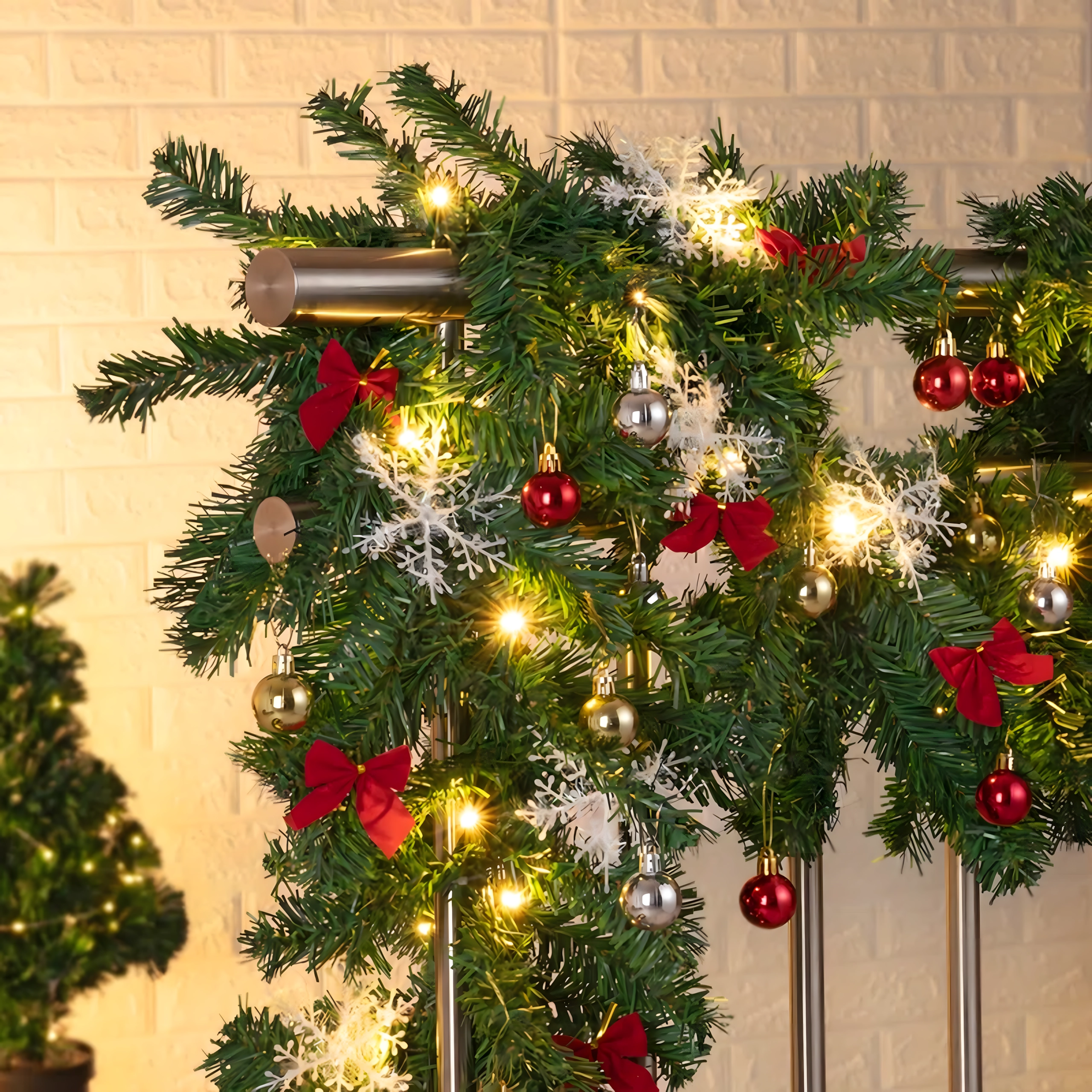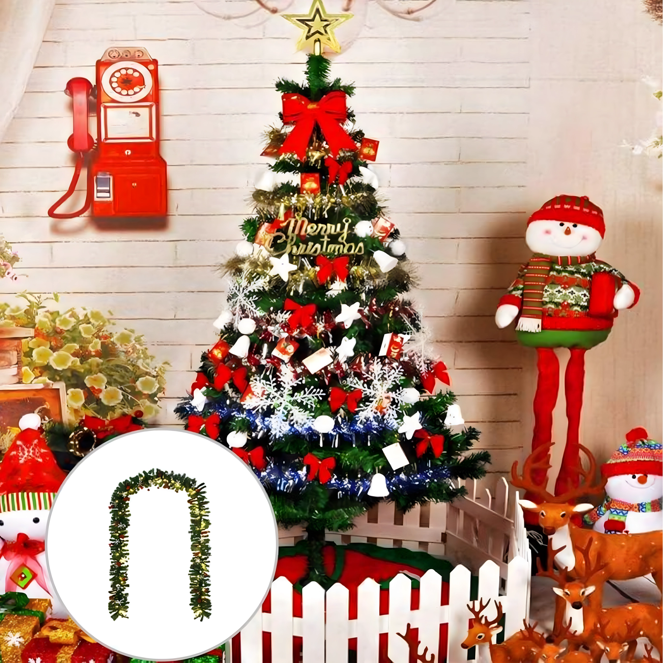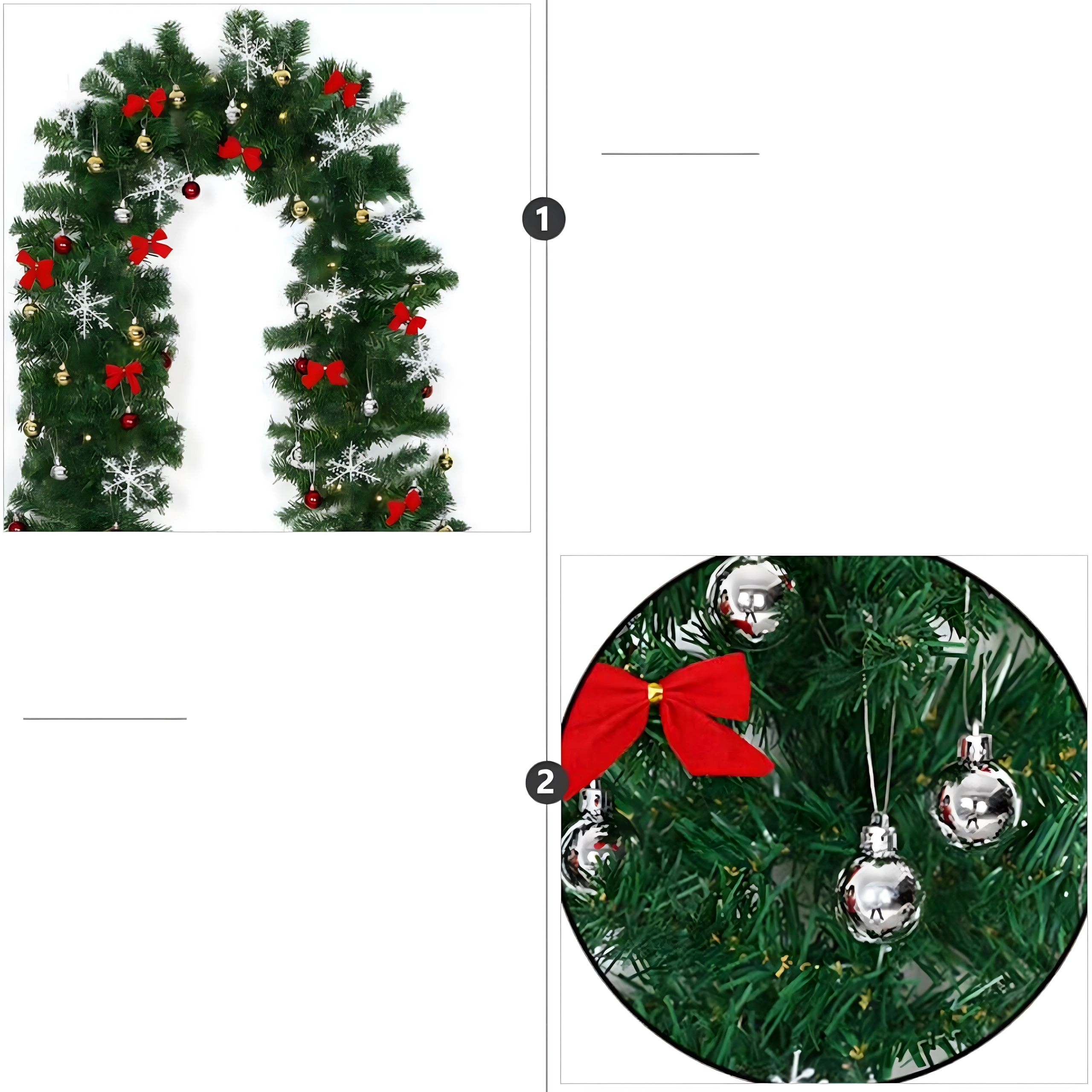 Zahvaljujući gustoj strukturi s 260 grančica girlanda izgleda puno i realistično, a pritom je fleksibilna i lako se oblikuje oko ograde, prozorskih i vratnih okvira. Duljina 2,7 m omogućuje univerzalnu primjenu u interijeru i natkrivenim vanjskim prostorima.