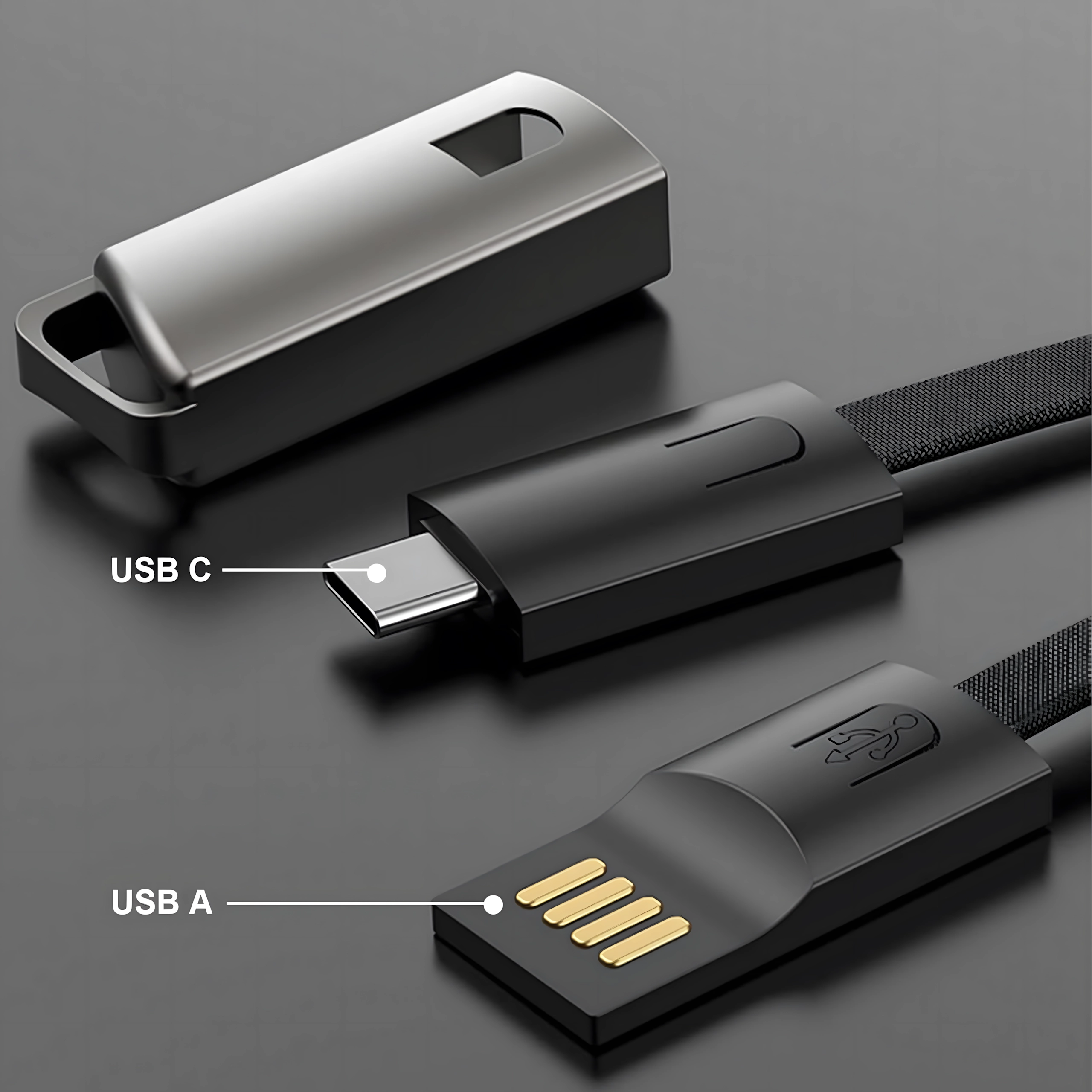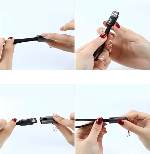 Praktični kabel u obliku privjeska spaja mobilnost, funkcionalnost i moderan dizajn. Pomoću njega spojite uređaj s USB‑C na USB‑A port i osigurajte brzo punjenje i stabilnu sinkronizaciju datoteka. Zahvaljujući izvedbi kao vrpca prikladan je za ključeve, torbu ili ruksak – uvijek vam je nadohvat ruke.