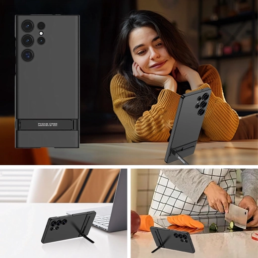 Tanka zaštitna futrola s postoljem za Samsung Galaxy S24 Ultra crna