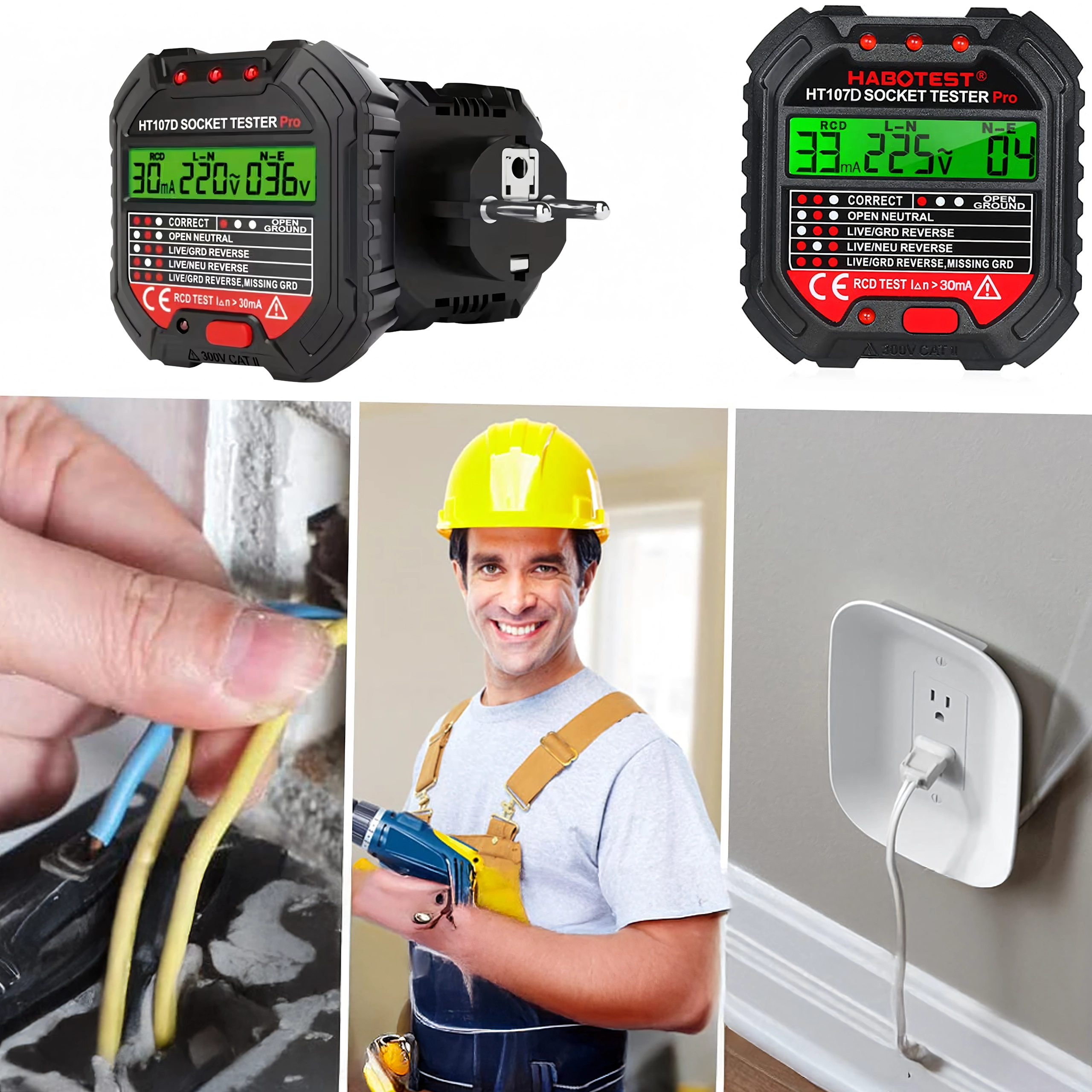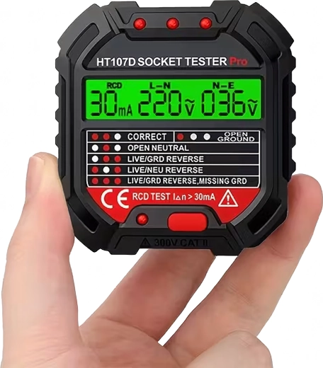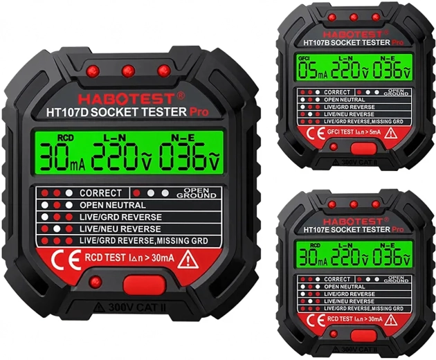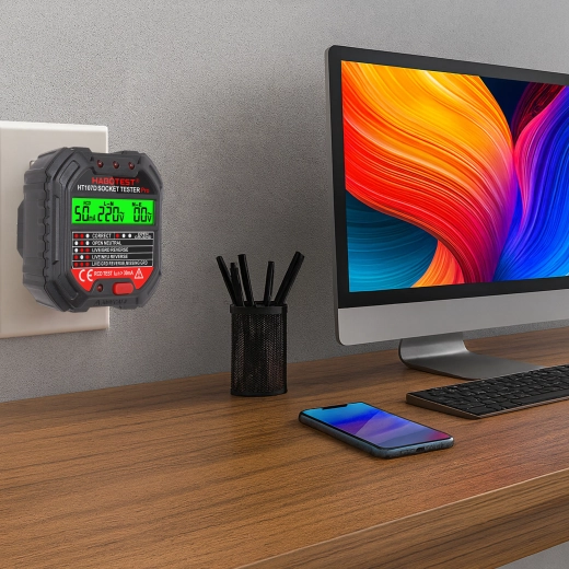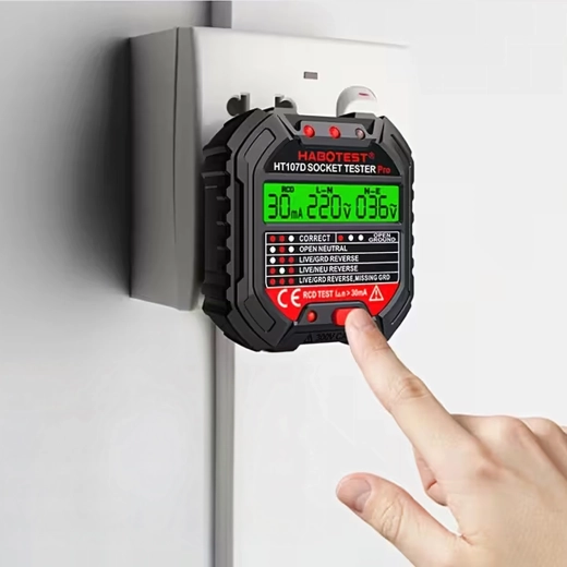 Osigurajte sigurnost kod kuće, u uredu i radionici uz pametni tester napona HABOTEST HT107D. Ovaj kompaktan i vrlo funkcionalan tester utičnica s LCD zaslonom brzo otkriva greške u elektroinstalaciji i pomaže spriječiti kvarove i skupe popravke. Podržava i RCD test (zaštitne sklopke diferencijalne struje) za provjeru ispravne zaštite kruga.