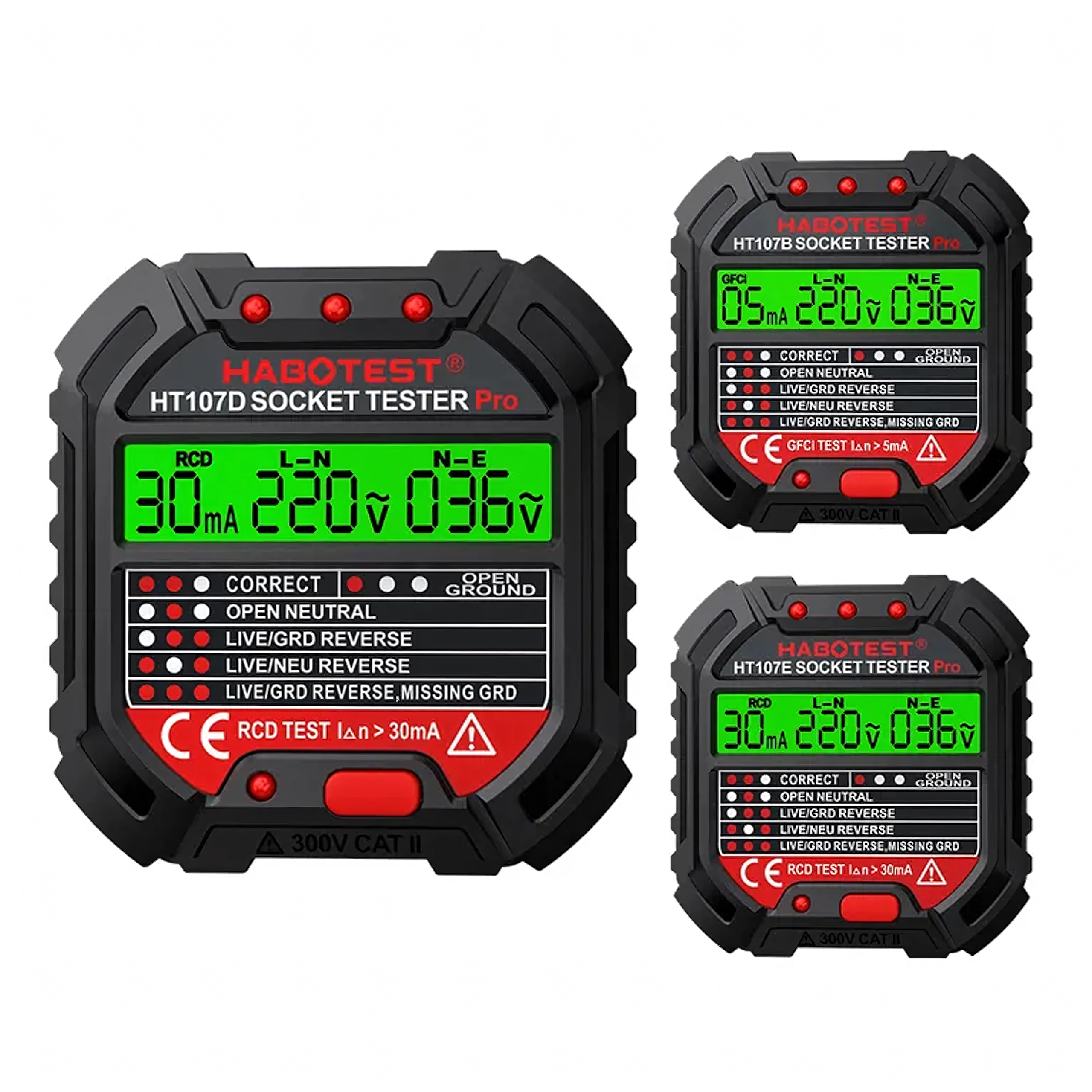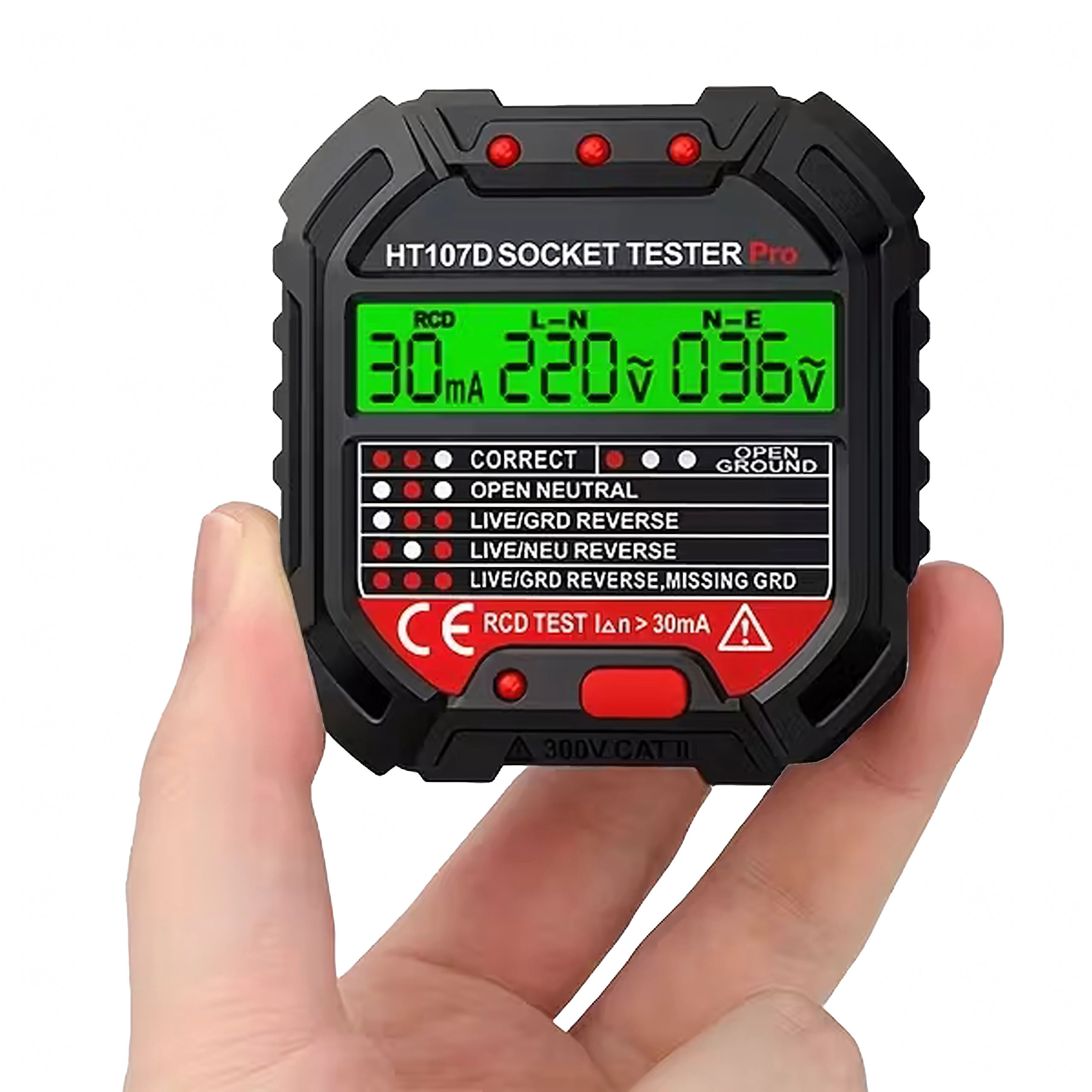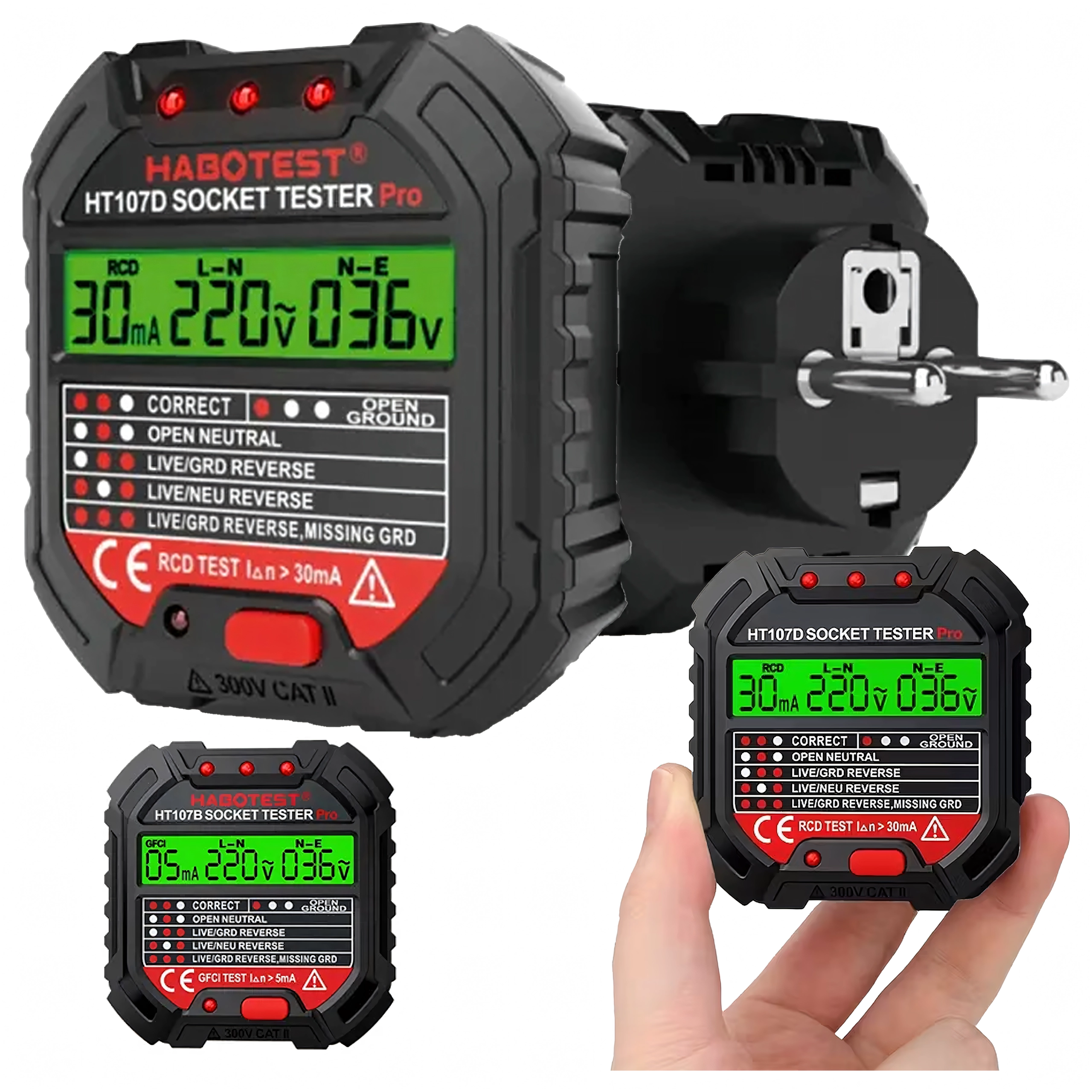 HABOTEST HT107D je praktičan alat za brzu provjeru mrežnih utičnica. Zahvaljujući jasnom LCD zaslonu pruža pregledne informacije o stanju ožičenja i naponu, pa odmah možete utvrditi je li utičnica sigurna za uporabu. Integrirani RCD test omogućuje provjeru funkcionalnosti zaštitne sklopke diferencijalne struje i povećava zaštitu od strujnog udara.