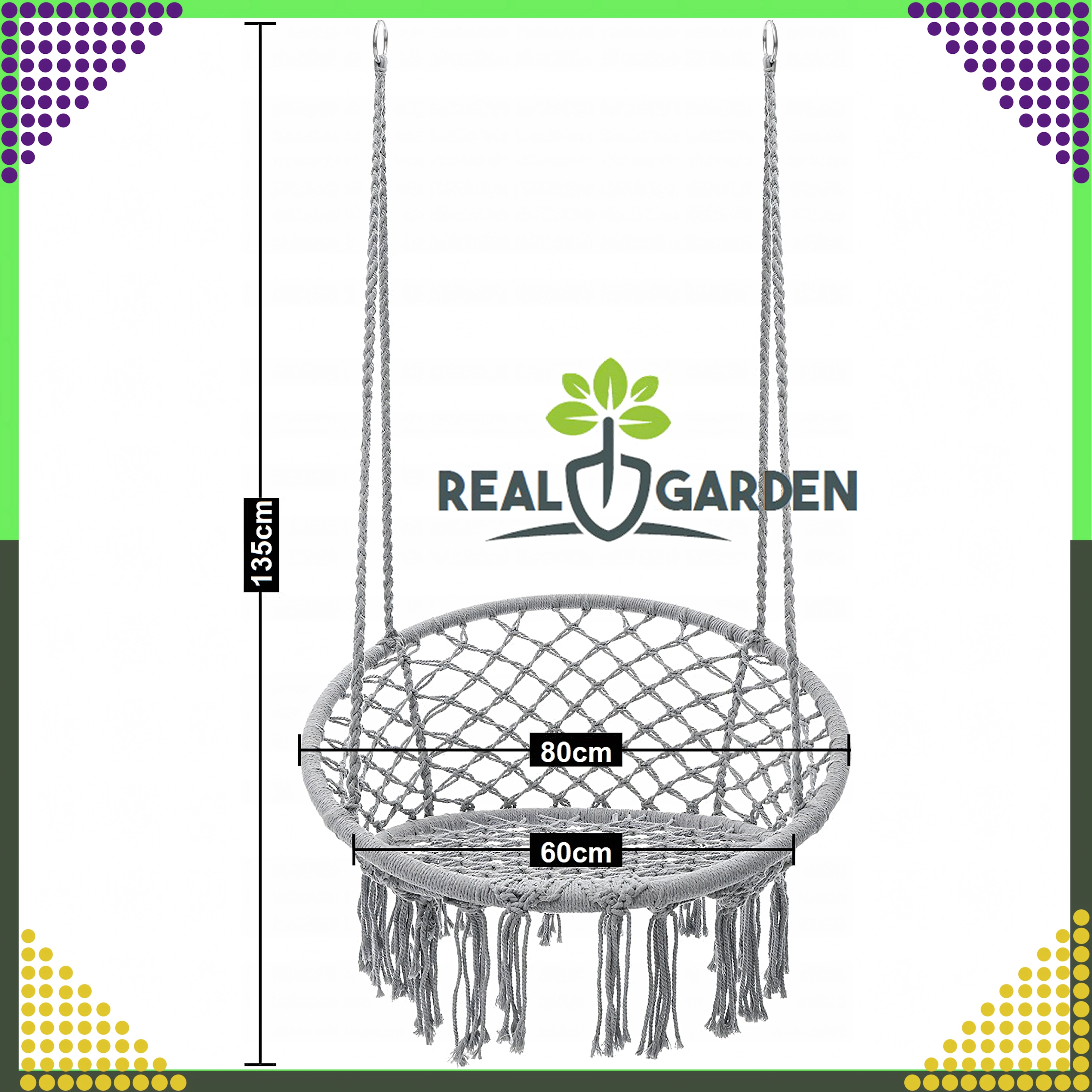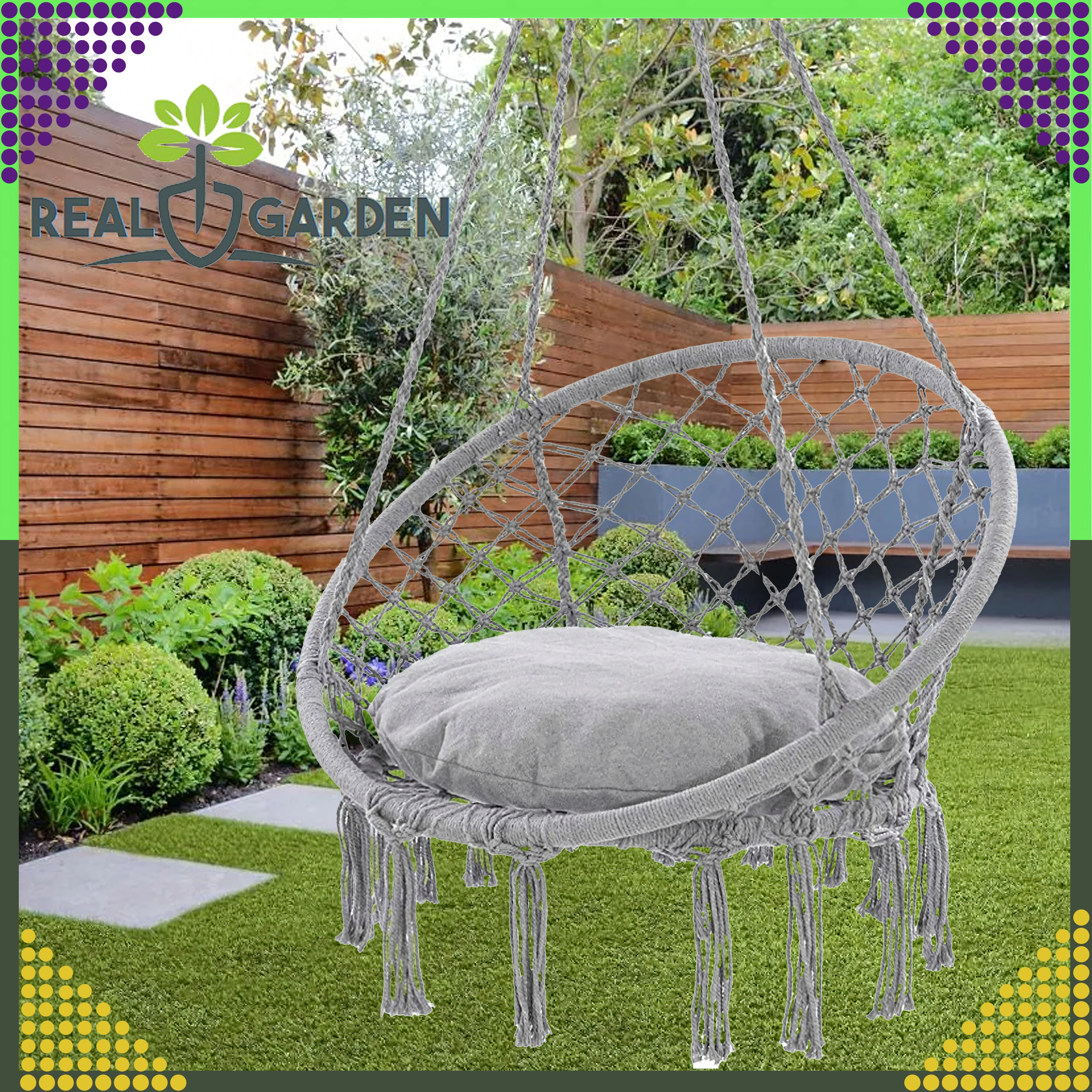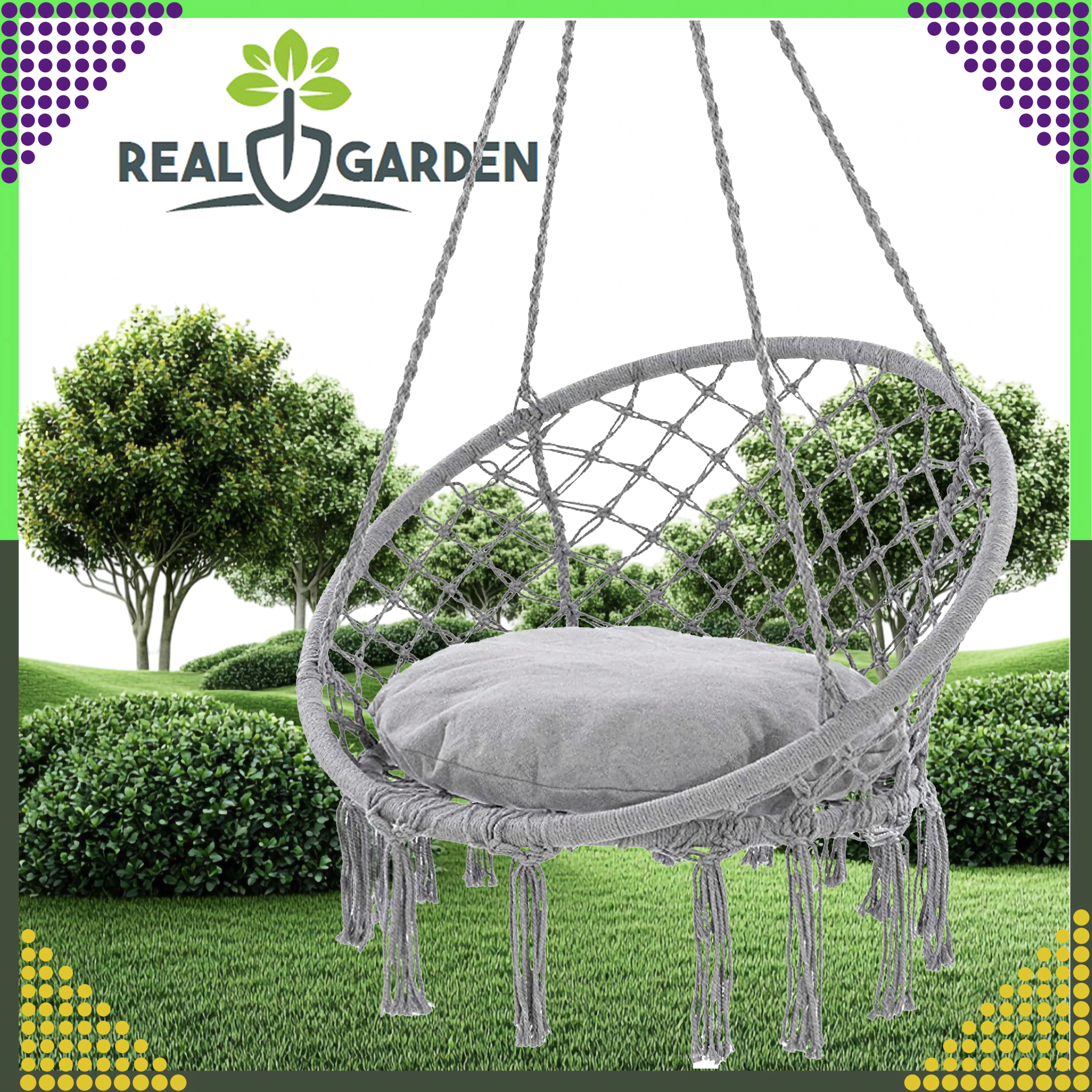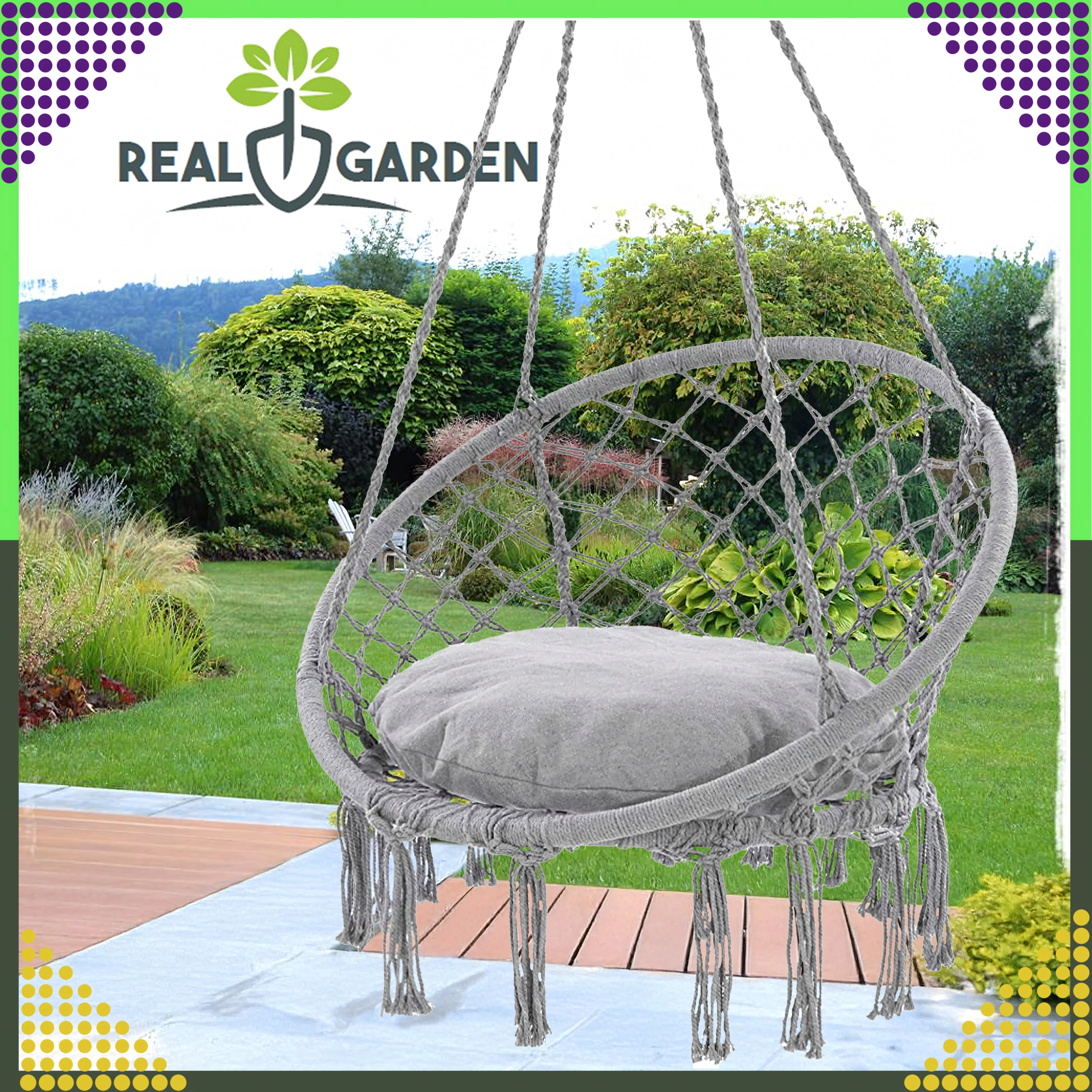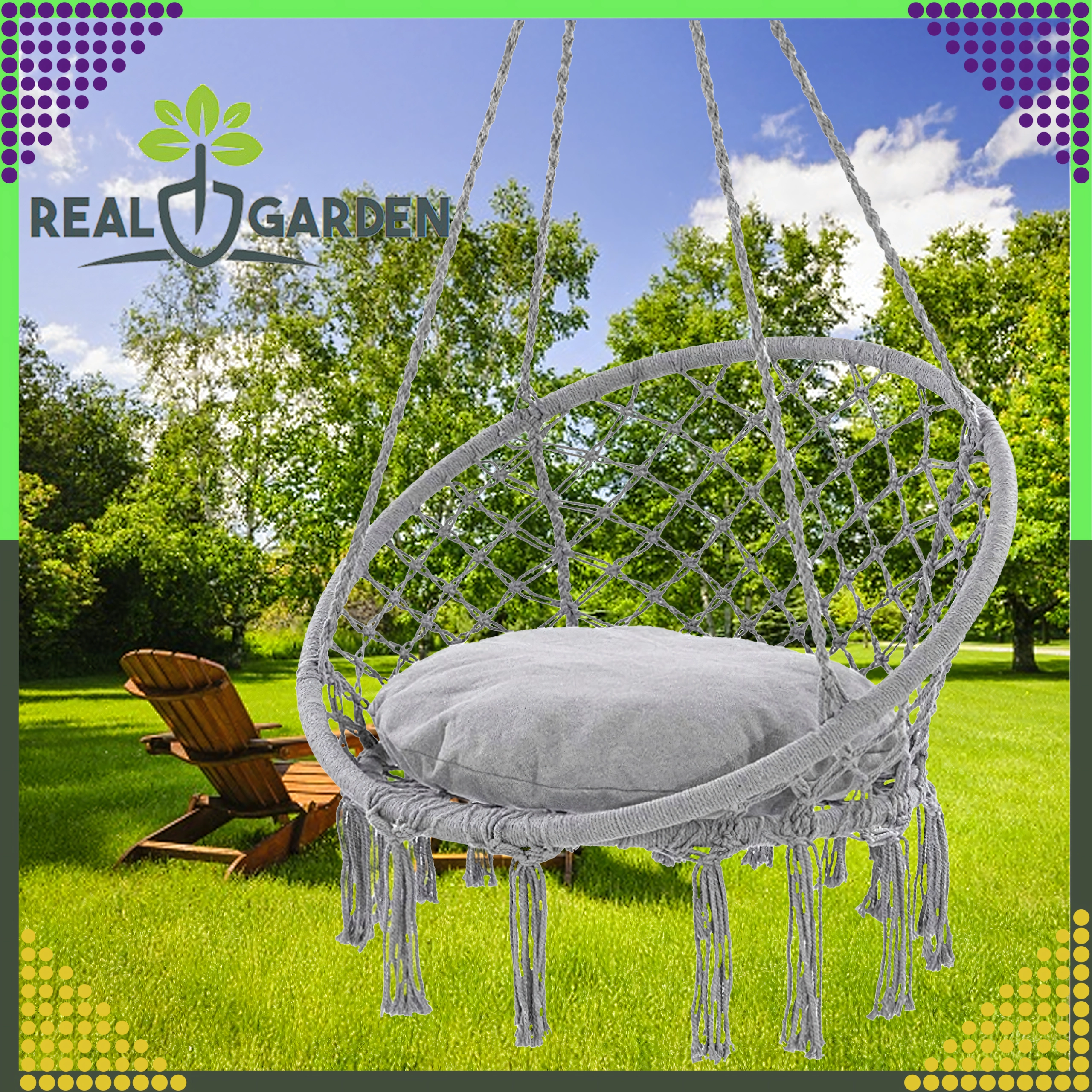 Montaža je brza i fleksibilna: odaberite klasično vješanje za ljuljanje naprijed-natrag ili spojite dvije ušice i uživajte u nježnoj rotaciji idealnoj za čitanje. Jastuk u pakiranju povećava komfor kako bi vaš odmor bio još ugodniji.