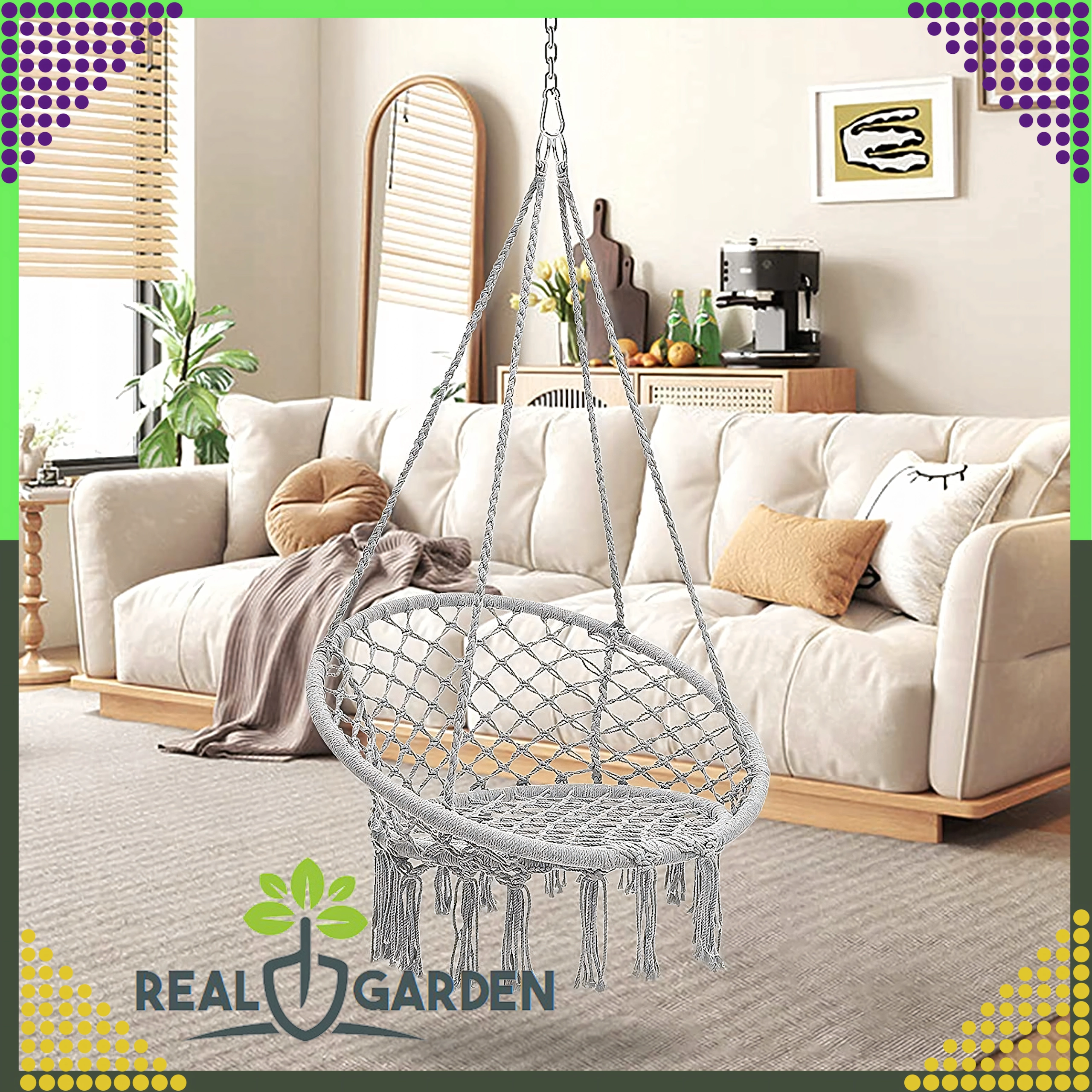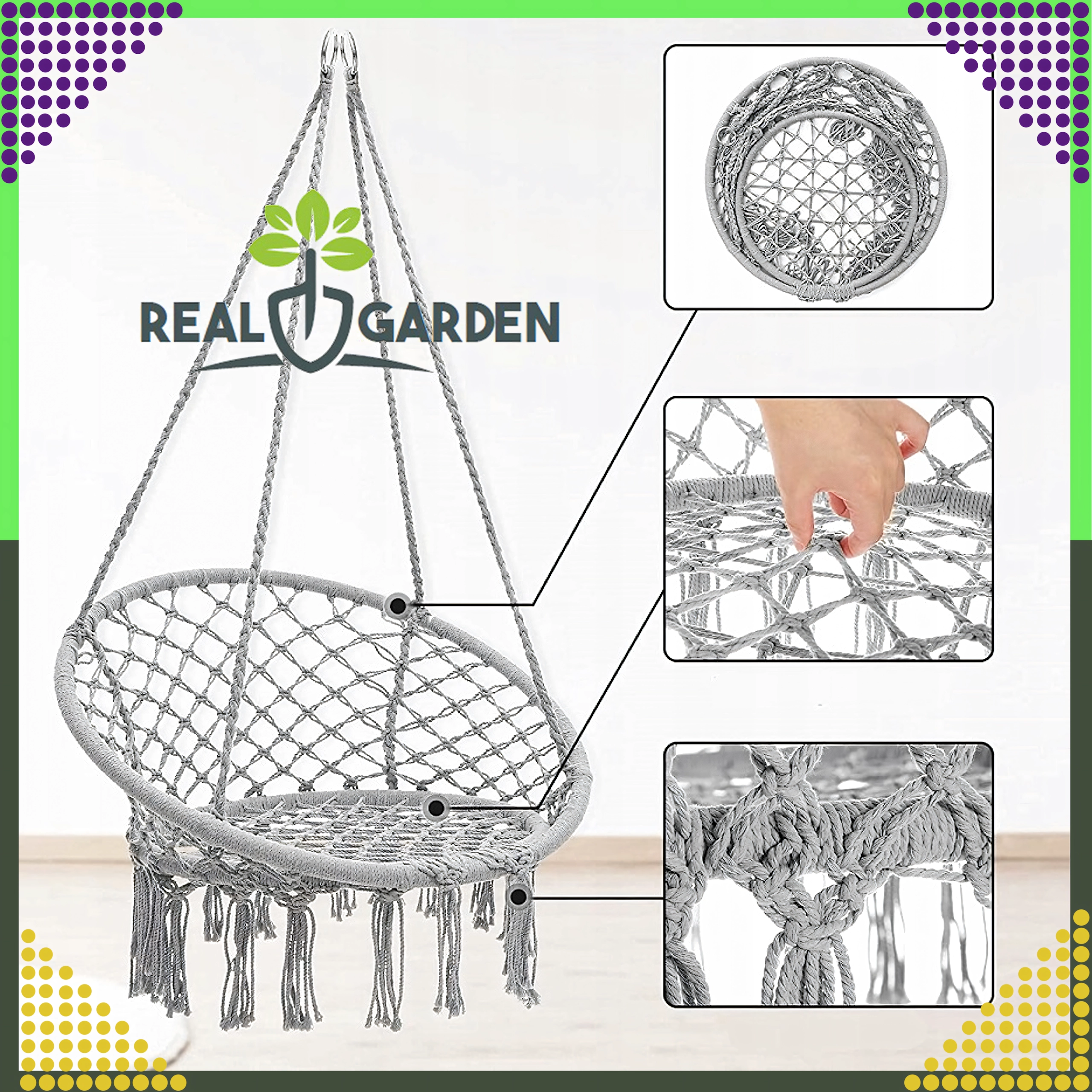 Uživajte u relaksaciji u visećem gnijezdu koje se zahvaljujući modernom boho izgledu uklapa u dnevni boravak, na terasu, balkon i na putovanja. Čvrste užadi i izdržljiva prozračna pamučna tkanina osiguravaju stabilnost i udobnost čak i pri duljem sjedenju.