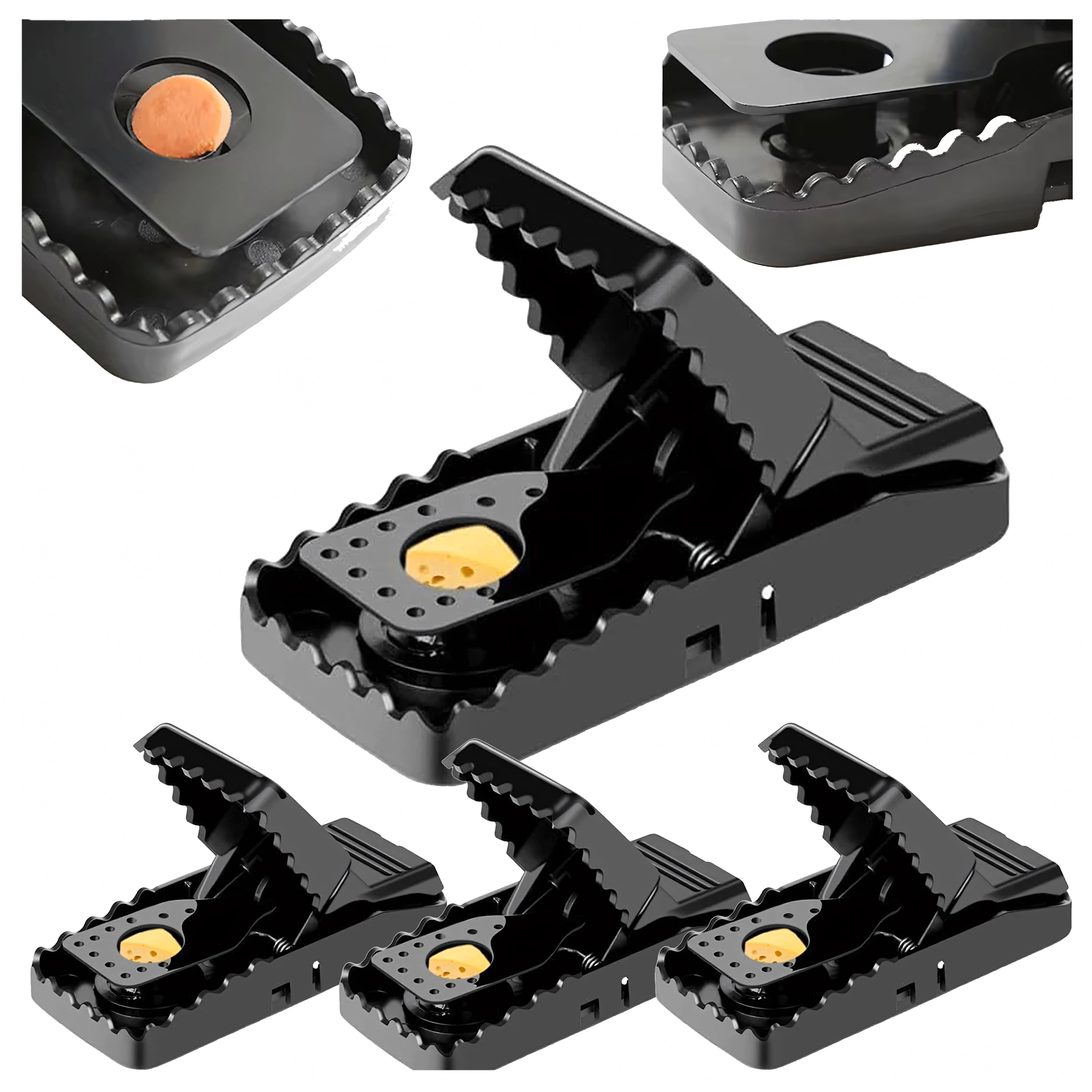 Praktičan set 4 klopke za miše i štakore od izdržljive plastike za brzo i higijensko suzbijanje glodavaca u kućanstvu. Klopka ima jaku oprugu, jednostavno podešavanje pomoću poluge i integrirani spremnik za mamac za sigurno i učinkovito korištenje u kuhinji, smočnici, garaži ili podrumu.