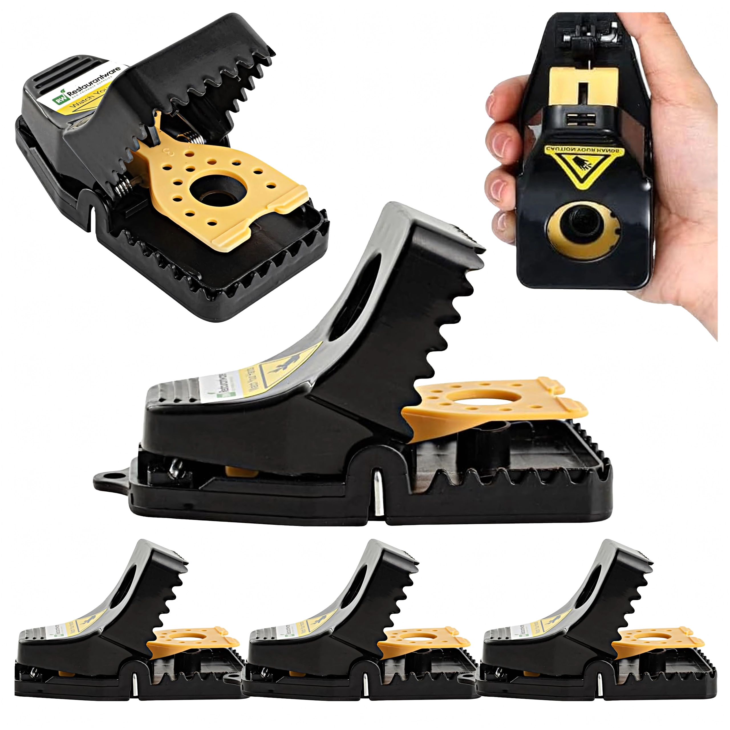 Praktičan set 4 plastičnih klopki za miševe i štakore za brzo i higijensko uklanjanje štetnika u kućanstvu. Klopka ima jaku oprugu, jednostavno podešavanje pomoću poluge i spremnik za mamac za sigurnu upotrebu. Zahvaljujući kompaktnim dimenzijama možete je postaviti u kuhinji, ostavi, garaži i podrumu. Višekratna upotreba i otporna na vremenske uvjete.