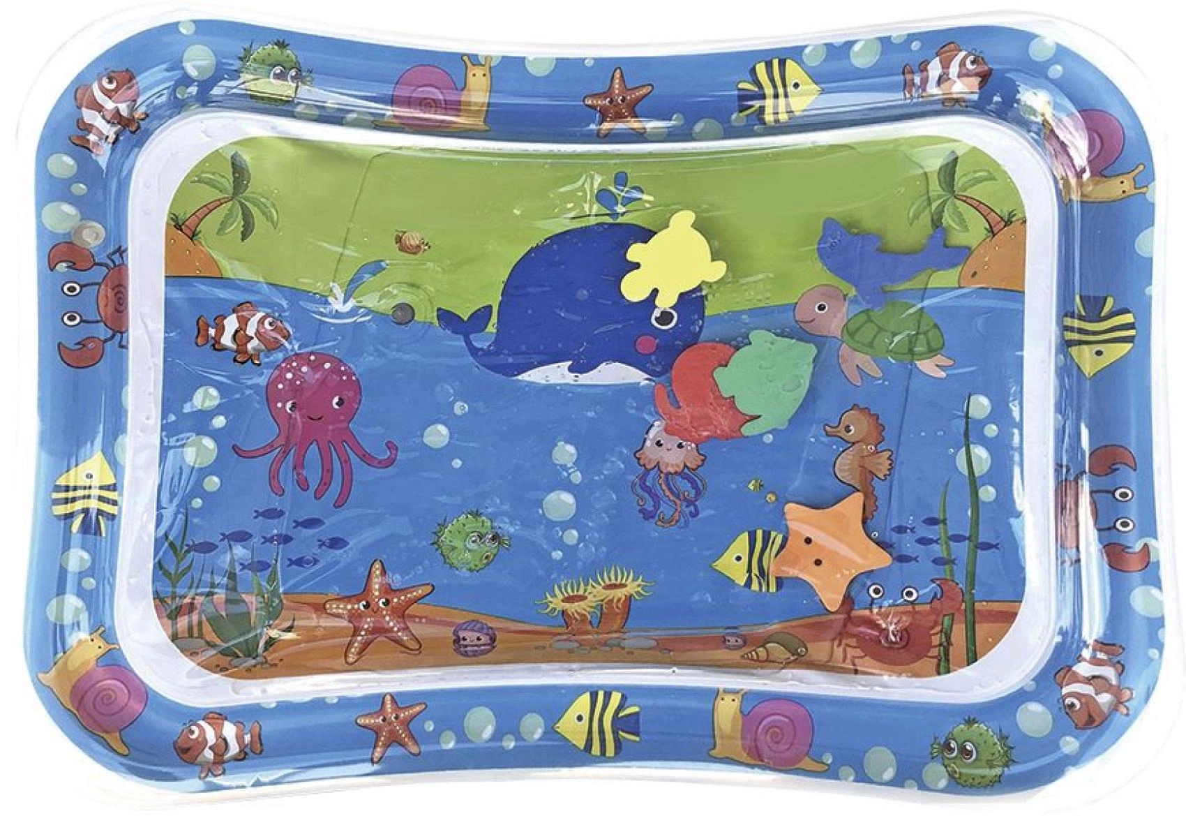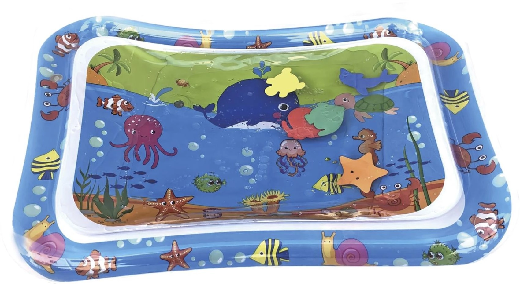 Ova napušna vodena podloga s oceanskim motivima nudi djeci sigurno i zabavno okruženje za igru na trbuščiću i prvo podizanje glavice. Vodena komora s plutajućim oblicima stvara dojam kretanja koji prirodno potiče vid, dodir i koordinaciju oko–ruka.