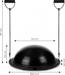 Zahvaljujući mogućnosti vježbanja s obje strane i pričvršćenim otpornim gumama, svladat ćete balansne i stabilizacijske vježbe, jačanje središnjeg dijela tijela i potezne vježbe za gornji dio. Nakon treninga polukuglu lako složite u kompaktan oblik i spremite pod krevet ili u ormar. Nožna pumpa s dva nastavka omogućuje brzo napuhavanje i ispuhivanje.