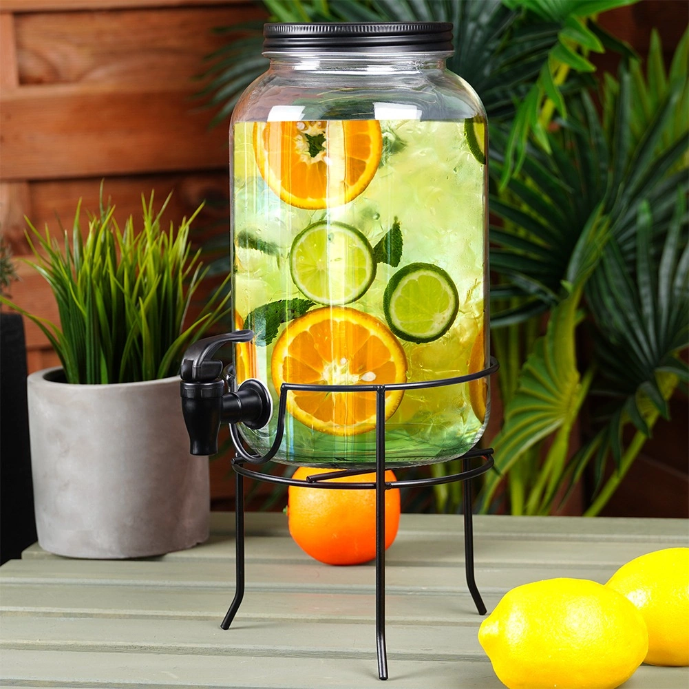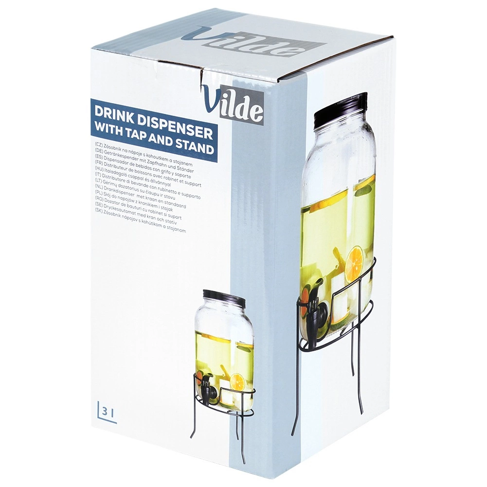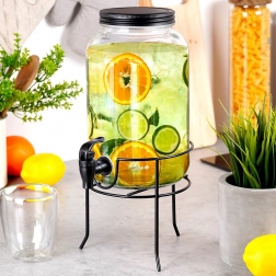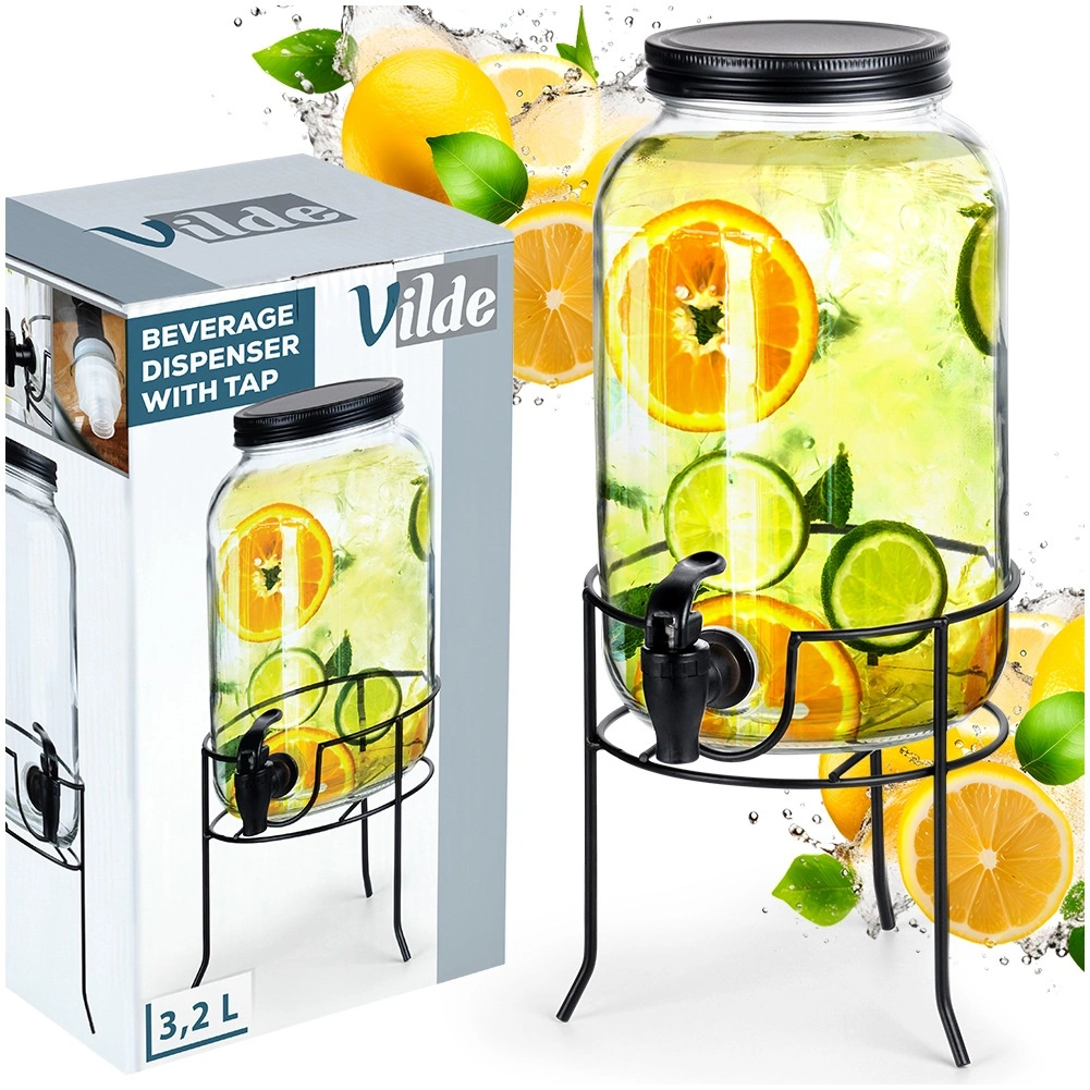 Praktičan dozator napitaka od kvalitetnog debelog stakla s crnim pipcem i mat crnim poklopcem čuva vaše osvježavajuće napitke zaštićenima od kukaca i nečistoća. Stabilan metalni stalak podiže posudu na idealnu visinu za čaše, pa je točenje čisto i udobno.