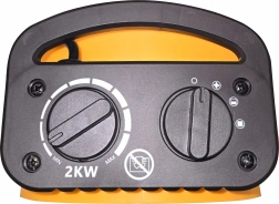 Intuitivne upravljačke tipke omogućuju glatko podešavanje termostata i odabir režima. Prednja sigurnosna rešetka štiti od dodira s grijaćim tijelom, a robusna konstrukcija i nagibno postolje osiguravaju usmjereni tok toplog zraka tamo gdje je potreban.