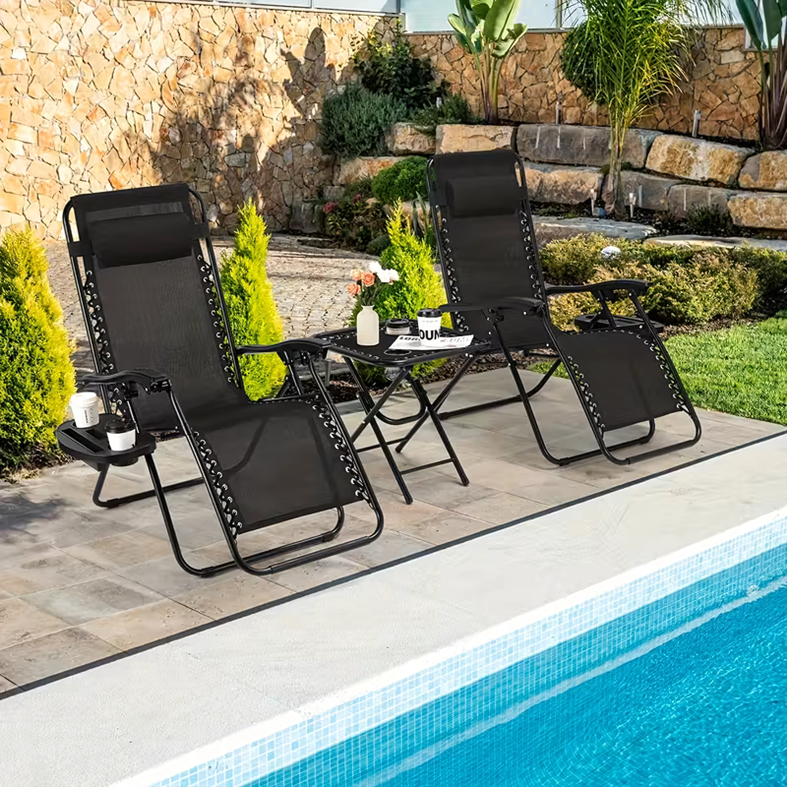 Instalacija je trenutačna – bez šarafljenja i alata. Idealno rješenje za vanjsko opuštanje uz bazen, na terasi ili pri kampiranju. Kompatibilno s većinom ležaljki tipa Zero Gravity.