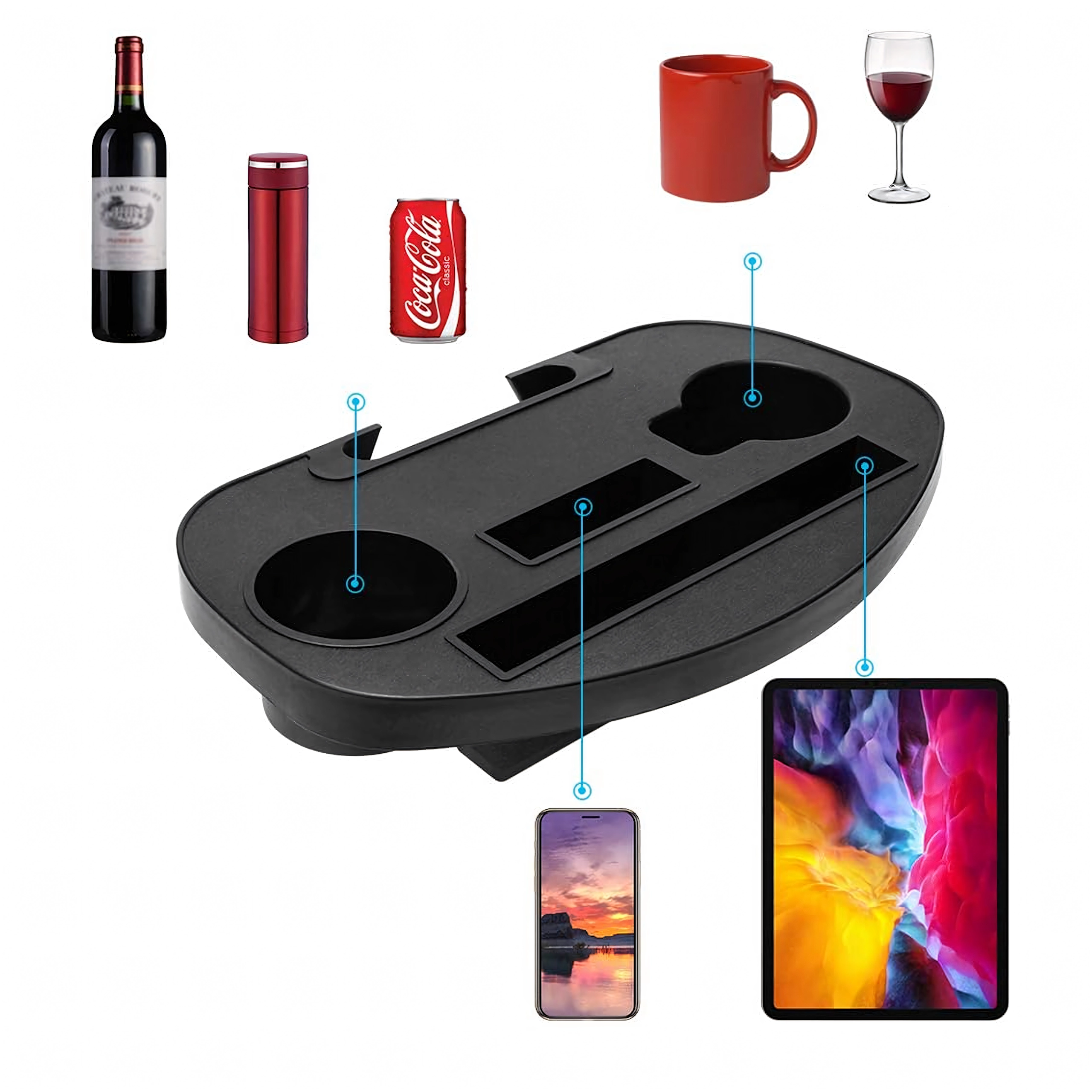 Dva držača za napitke, utor za telefon i dodatni pretinci drže vaše stvari uredno organizirane tijekom odmora.