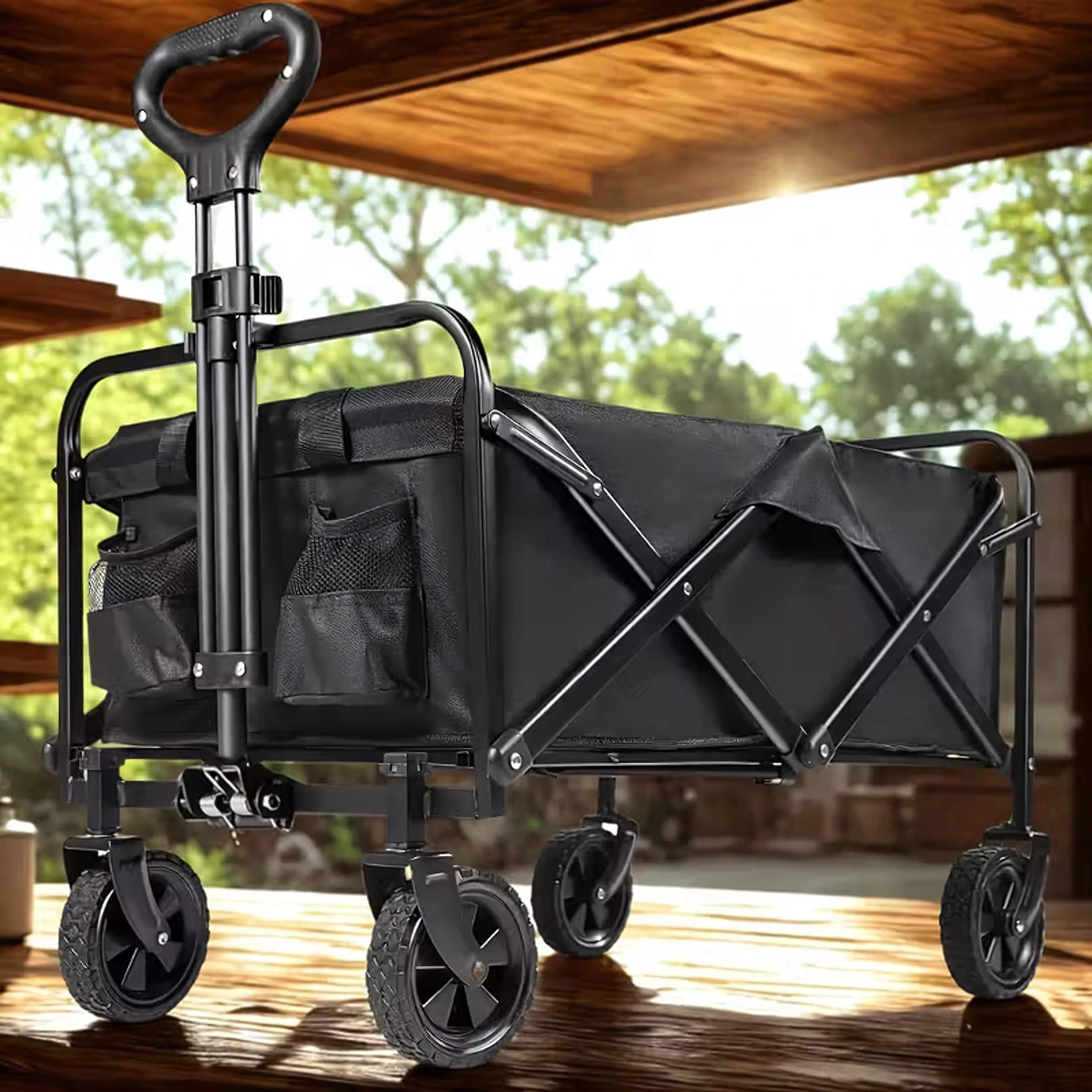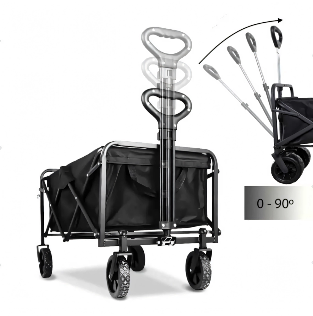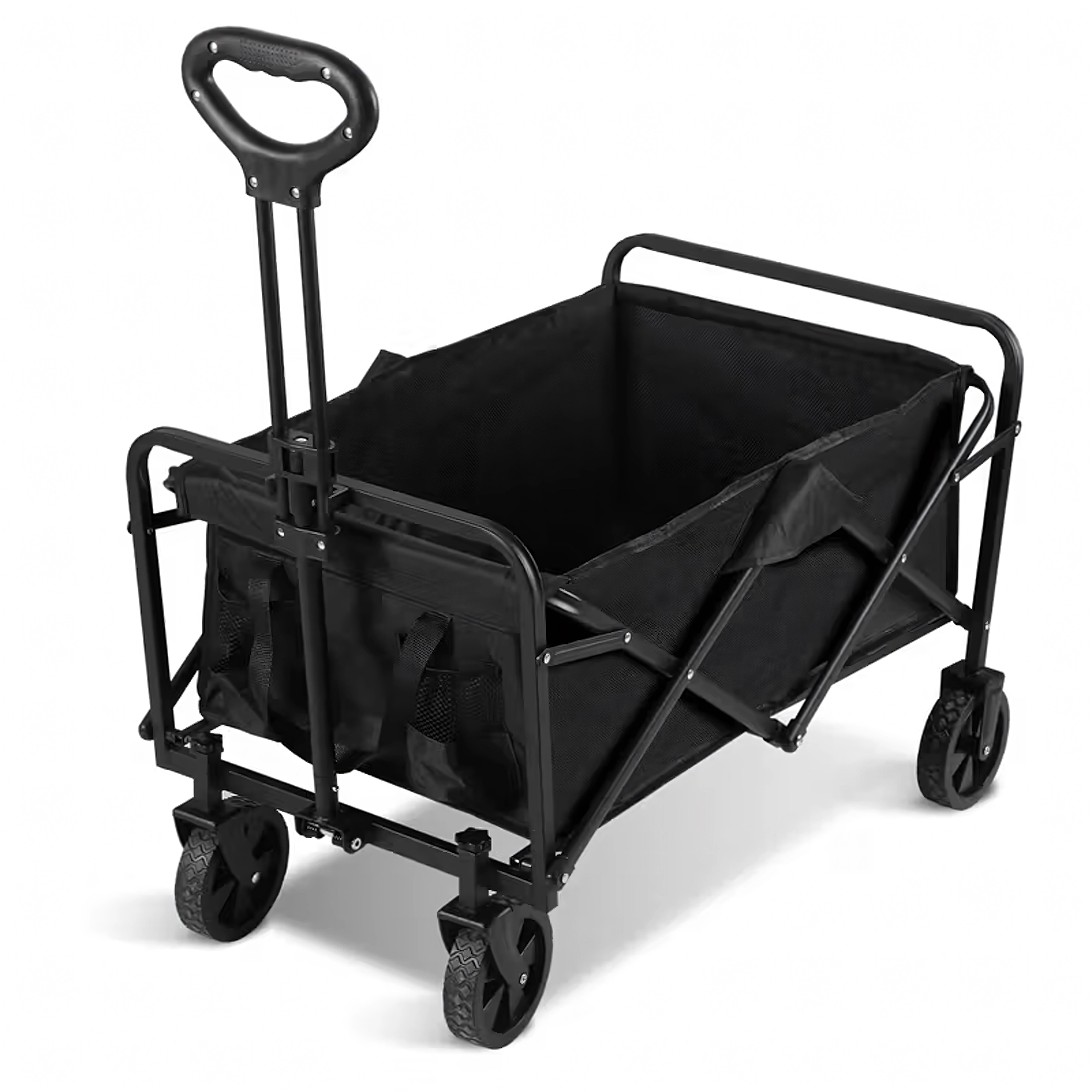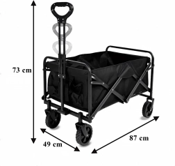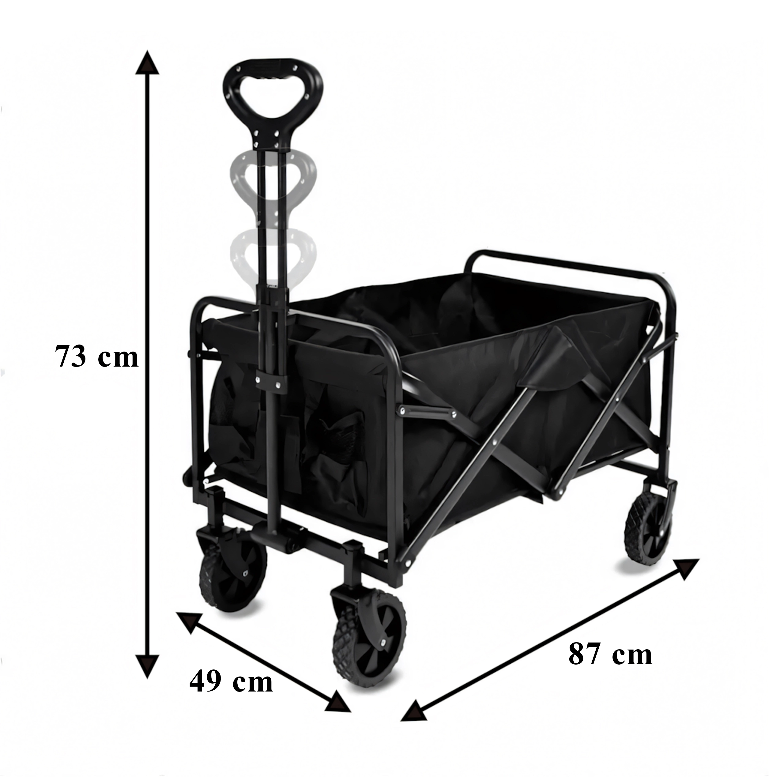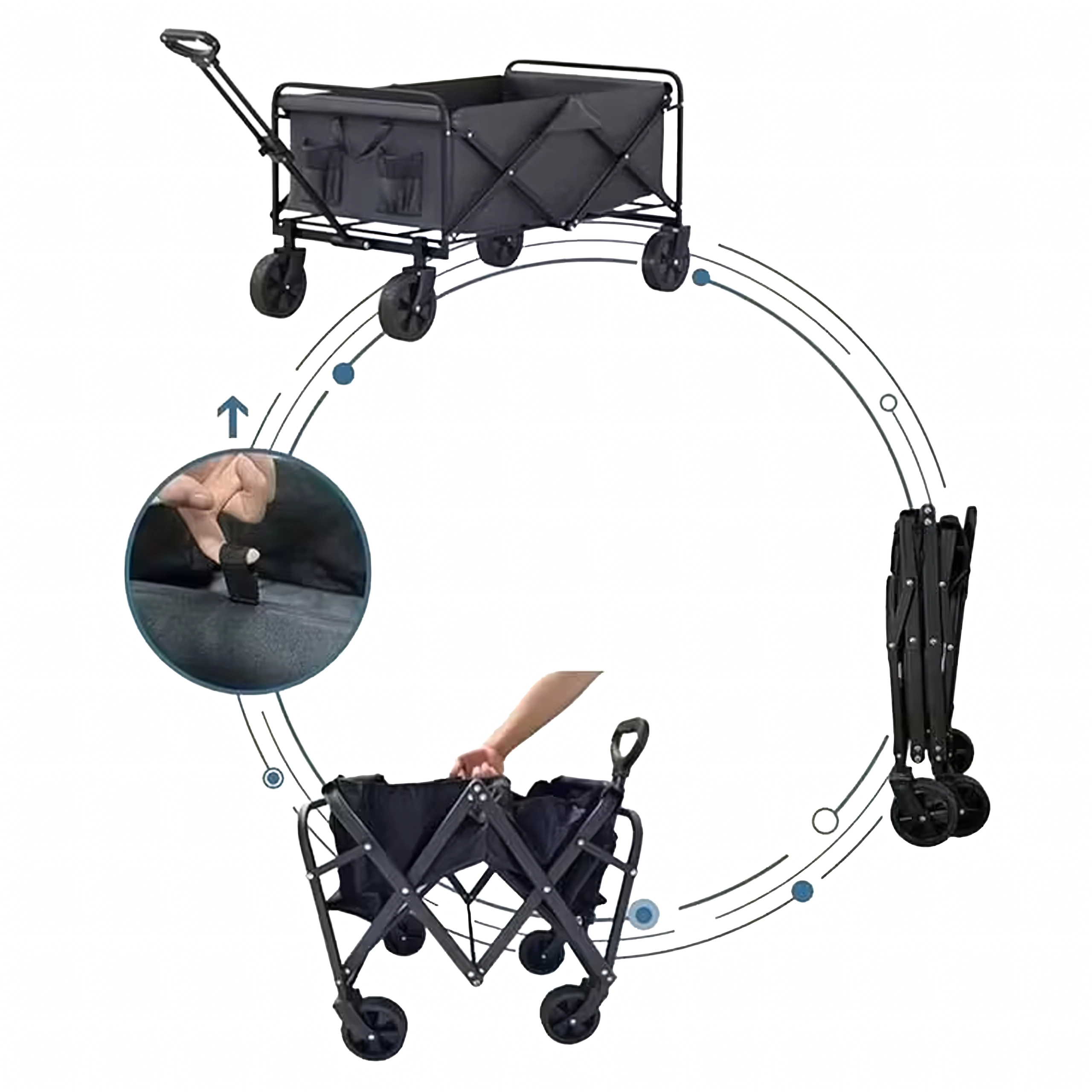 Univerzalna sklopiva kolica olakšat će vam svakodnevne i slobodne aktivnosti. Zahvaljujući izdržljivom čeličnom okviru i čvrstoj tkanini mogu prenijeti teži teret na raznim podlogama – od vrta i parka do plaže. Veliki okretni kotači osiguravaju gladak hod i lako manevriranje i na neravnom terenu.