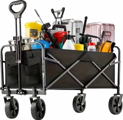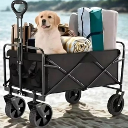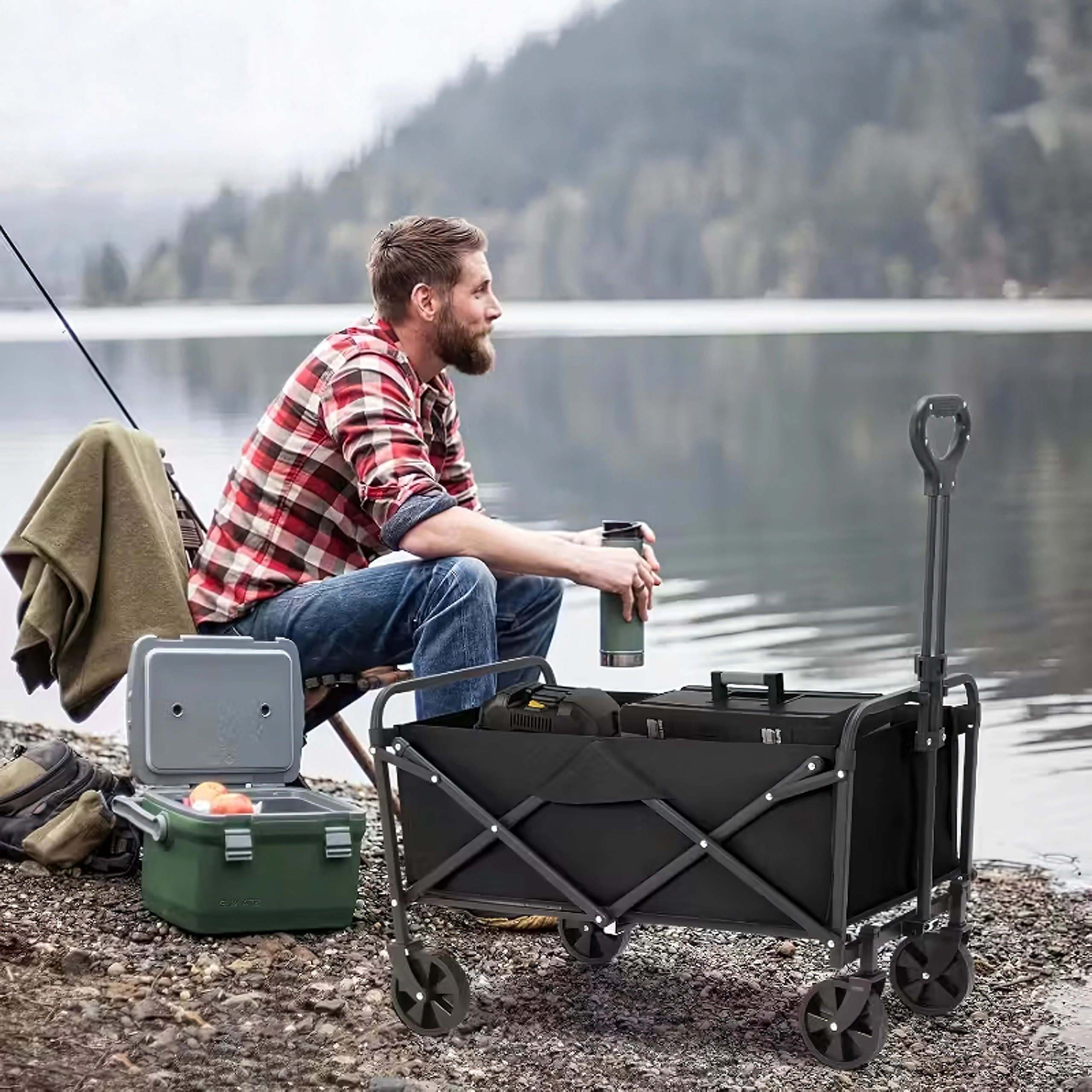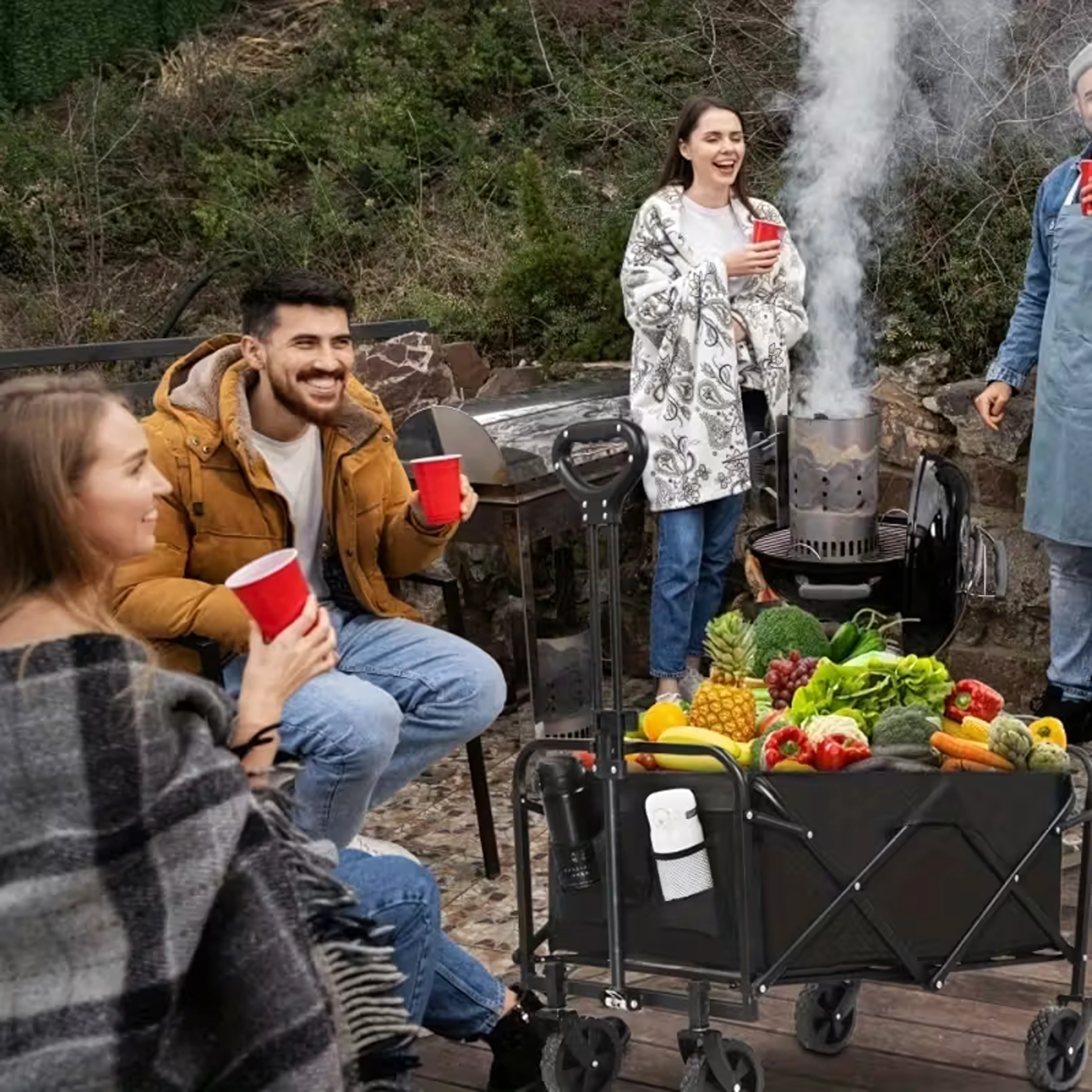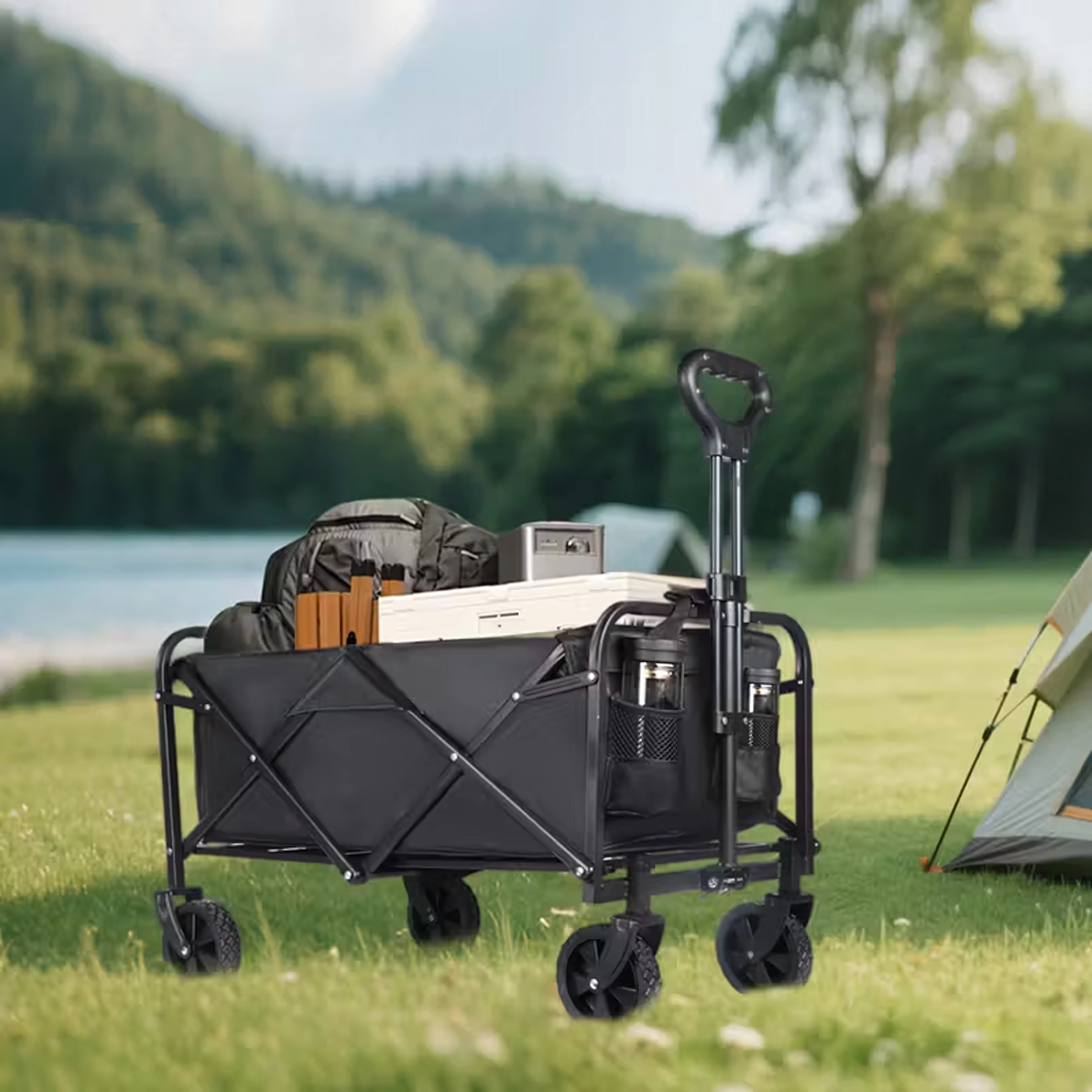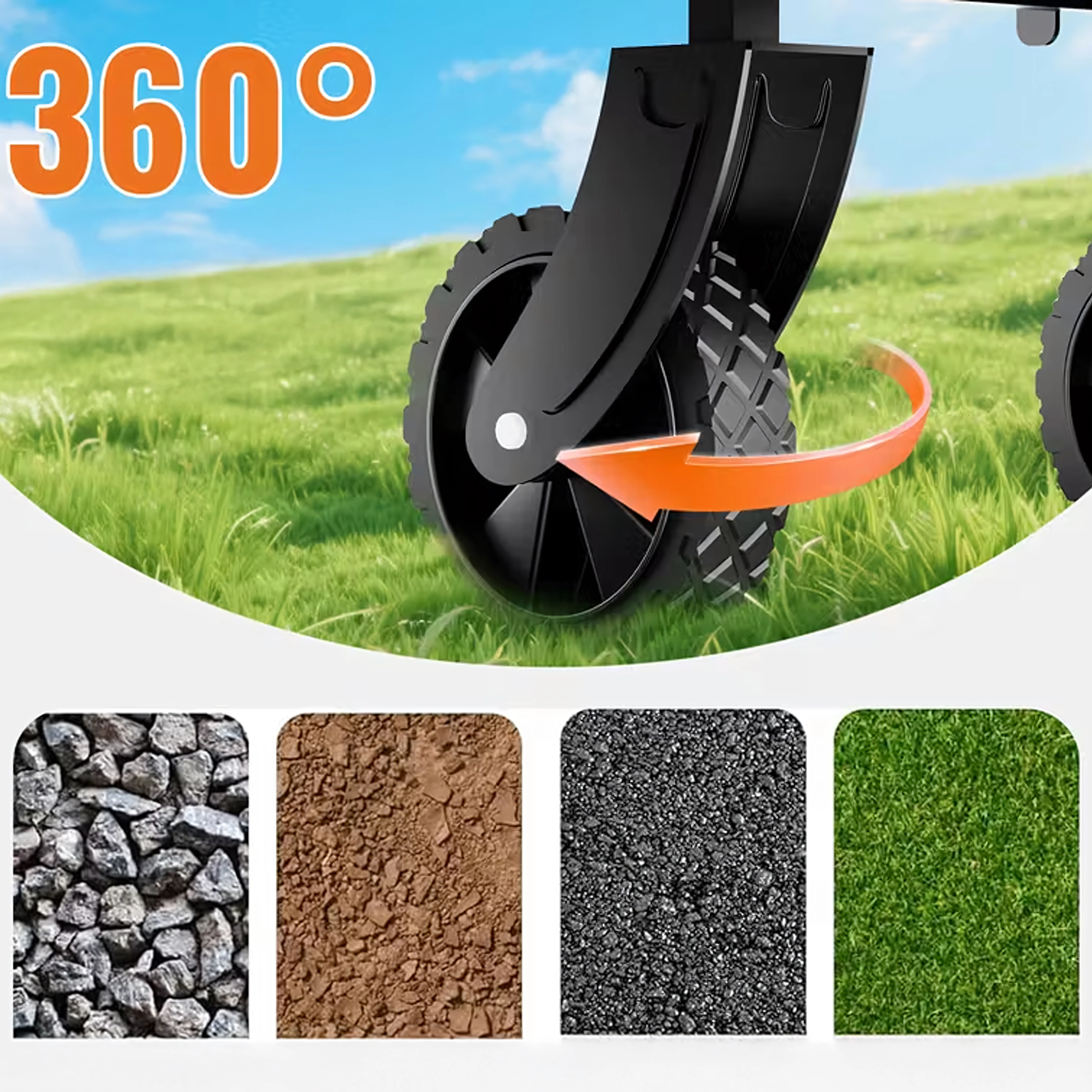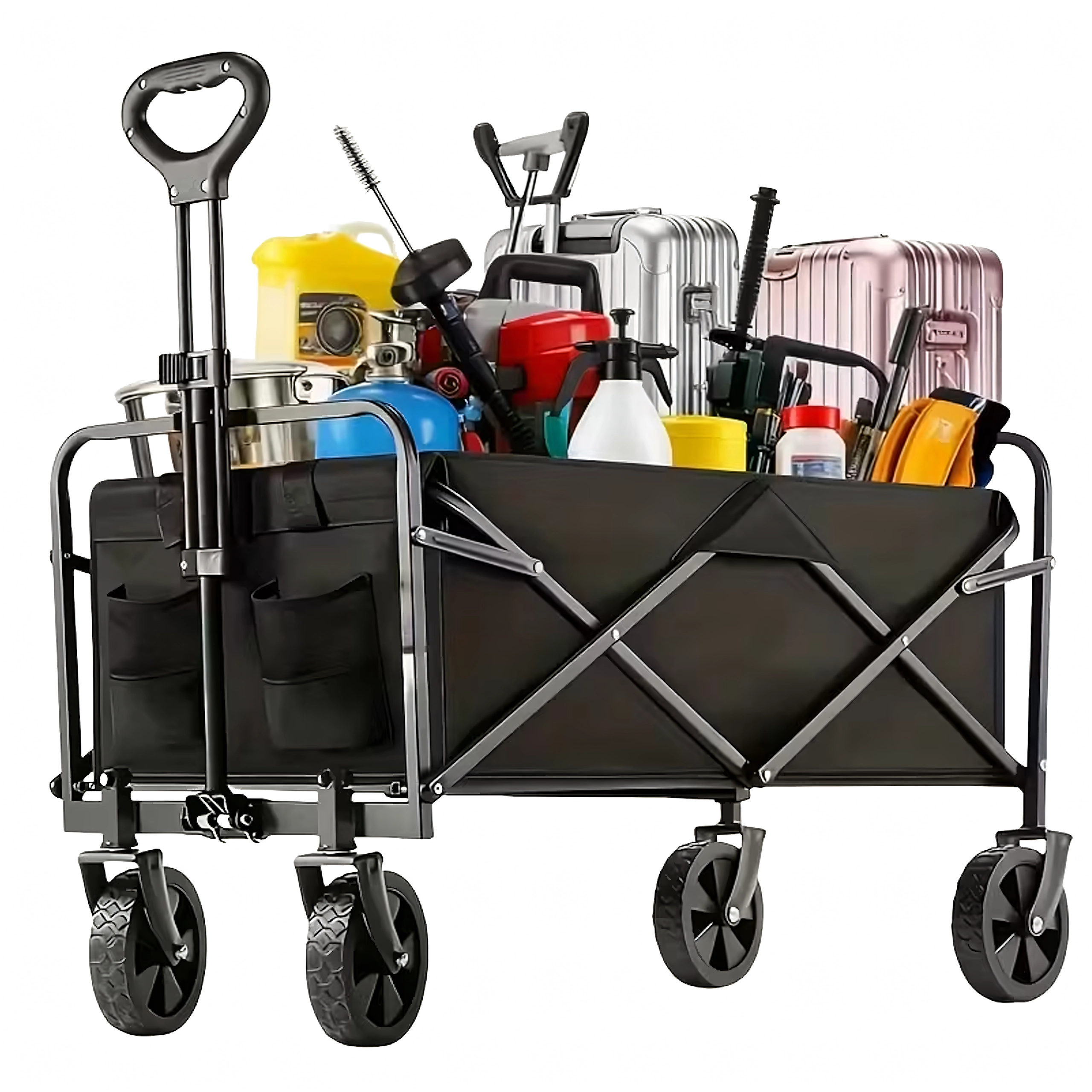 Univerzalna sklopiva kolica olakšat će vam svakodnevne i slobodne aktivnosti. Zahvaljujući izdržljivom čeličnom okviru i čvrstoj tkanini mogu prenijeti teži teret na raznim podlogama – od vrta i parka do plaže. Veliki okretni kotači osiguravaju gladak hod i lako manevriranje i na neravnom terenu.