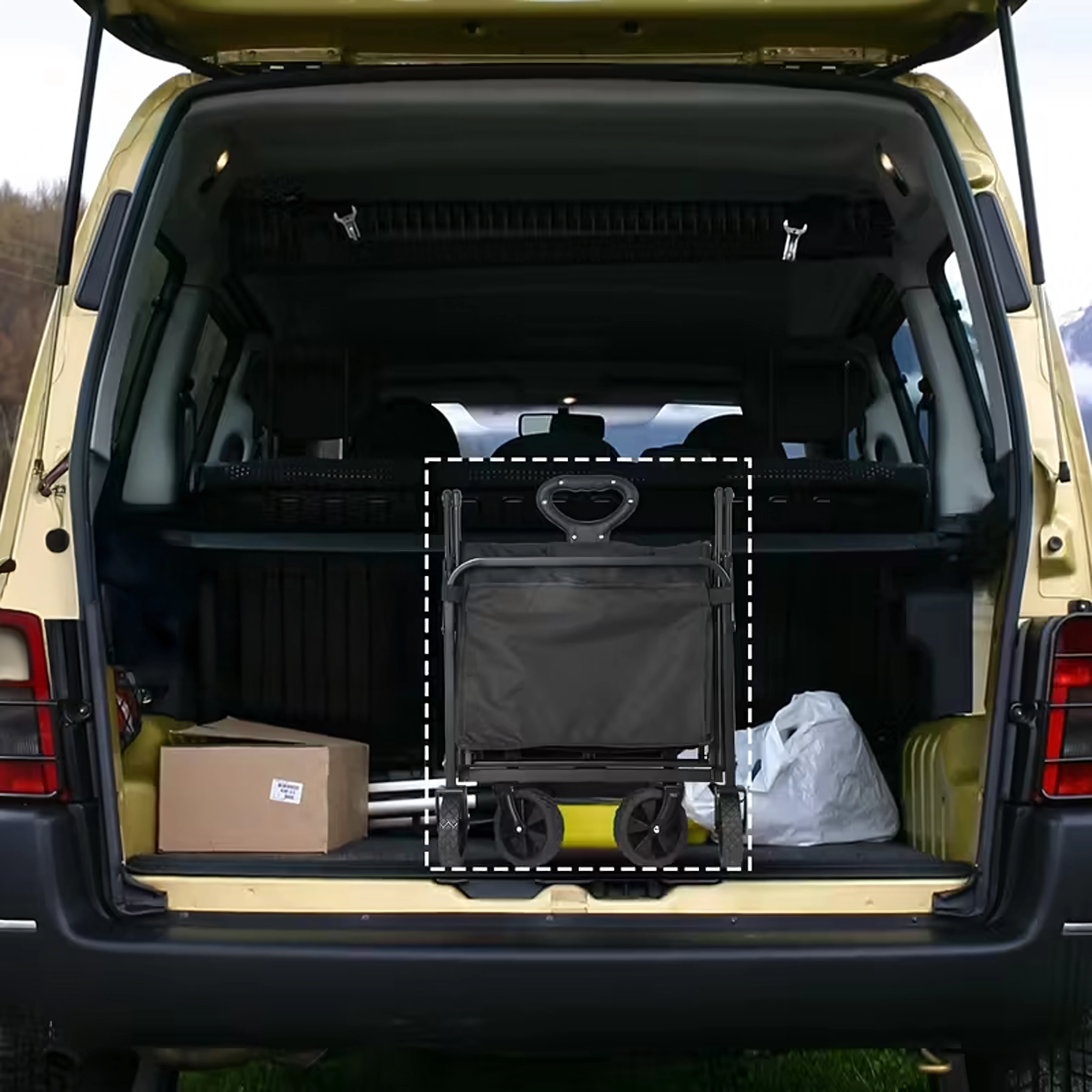 Čelični sklopivi okvir i izdržljiva tkanina omogućuju siguran prijevoz težeg tereta – od drva do kamping opreme.