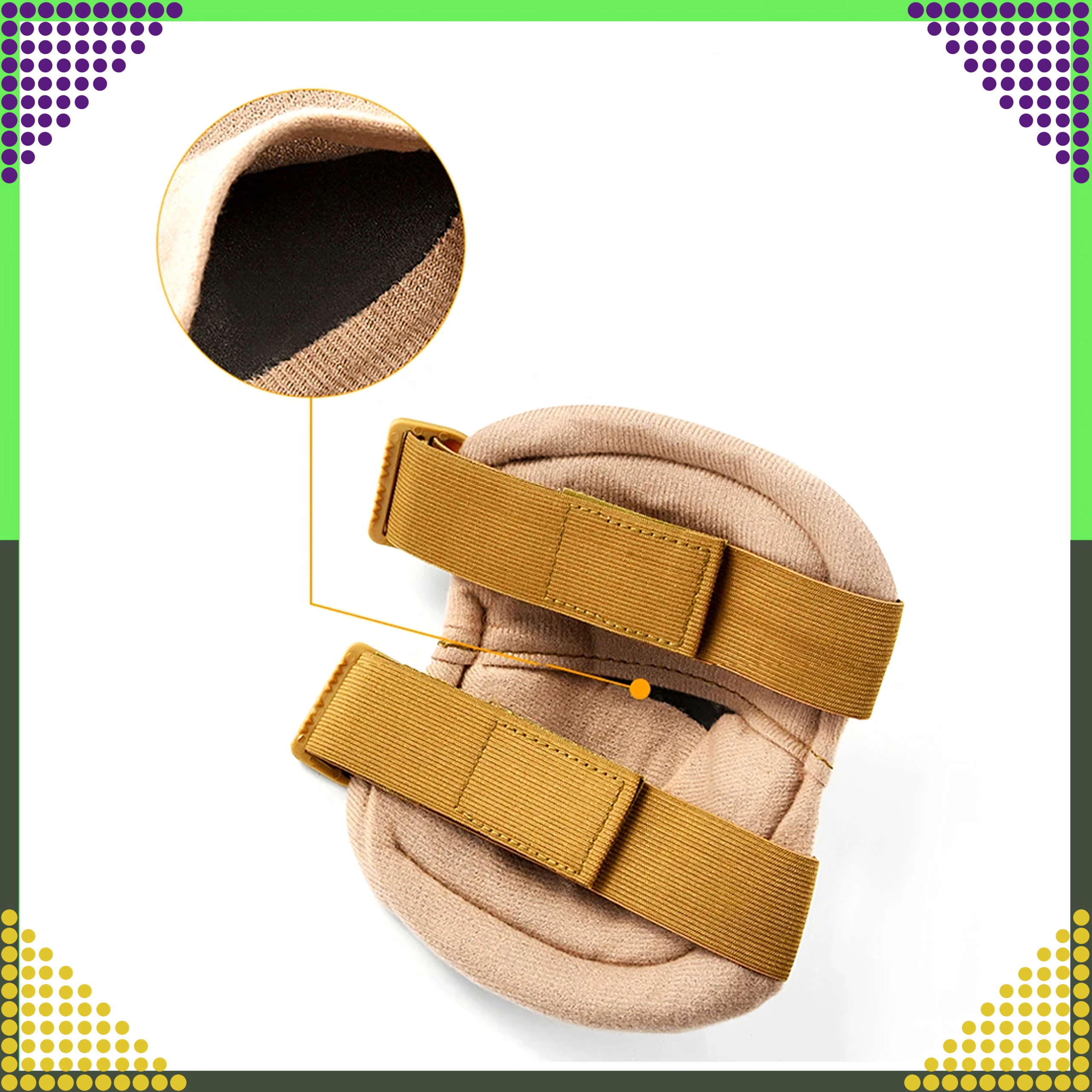 Učvršćivanje osiguravaju široke elastične trake s podesivim kopčama i sustavom brzog otpuštanja, koji omogućuje skidanje bez promjene duljine traka. Pogodno za airsoft, paintball, streljaštvo, motocikle, penjanje i skating. Neutralna smeđa boja pristaje većini opreme.