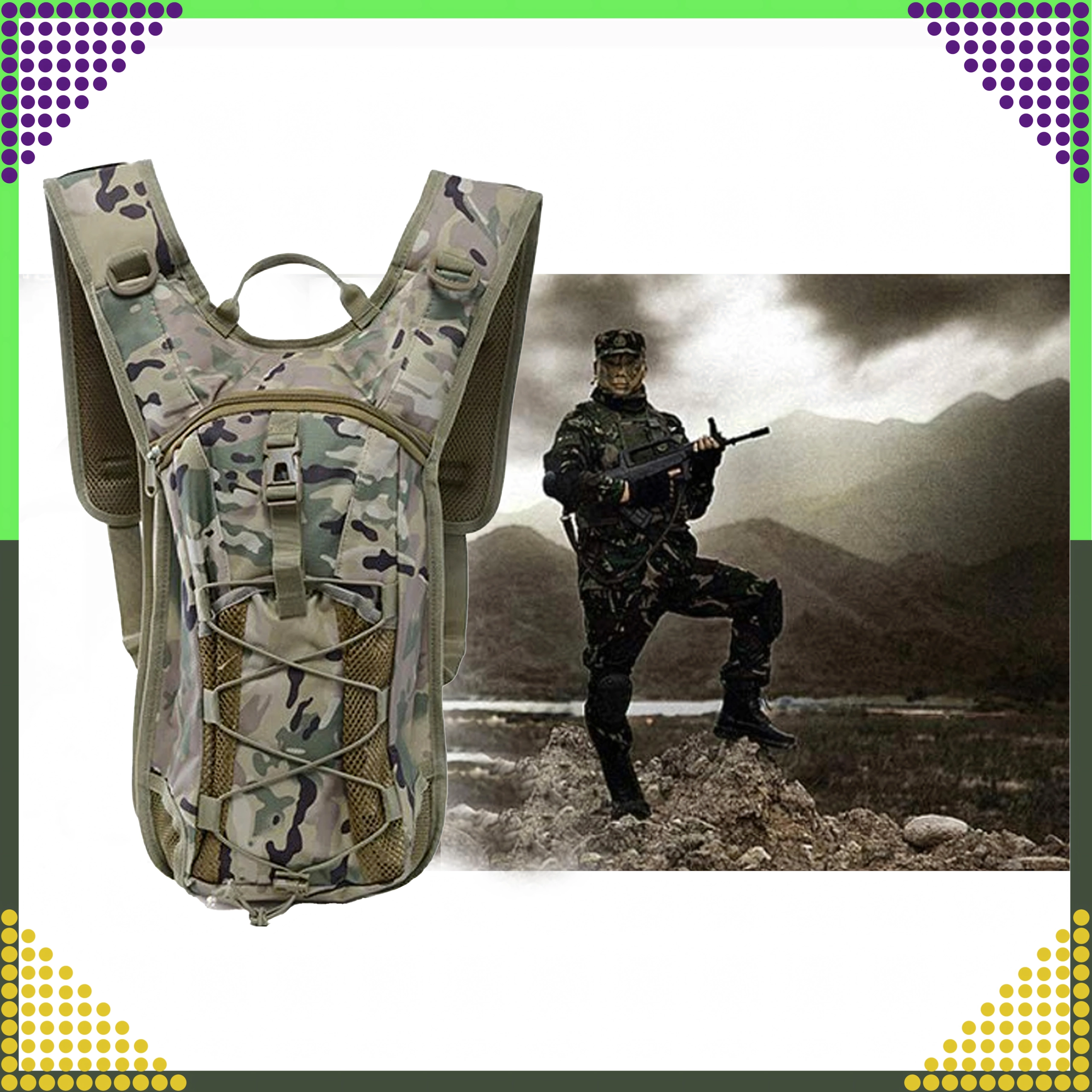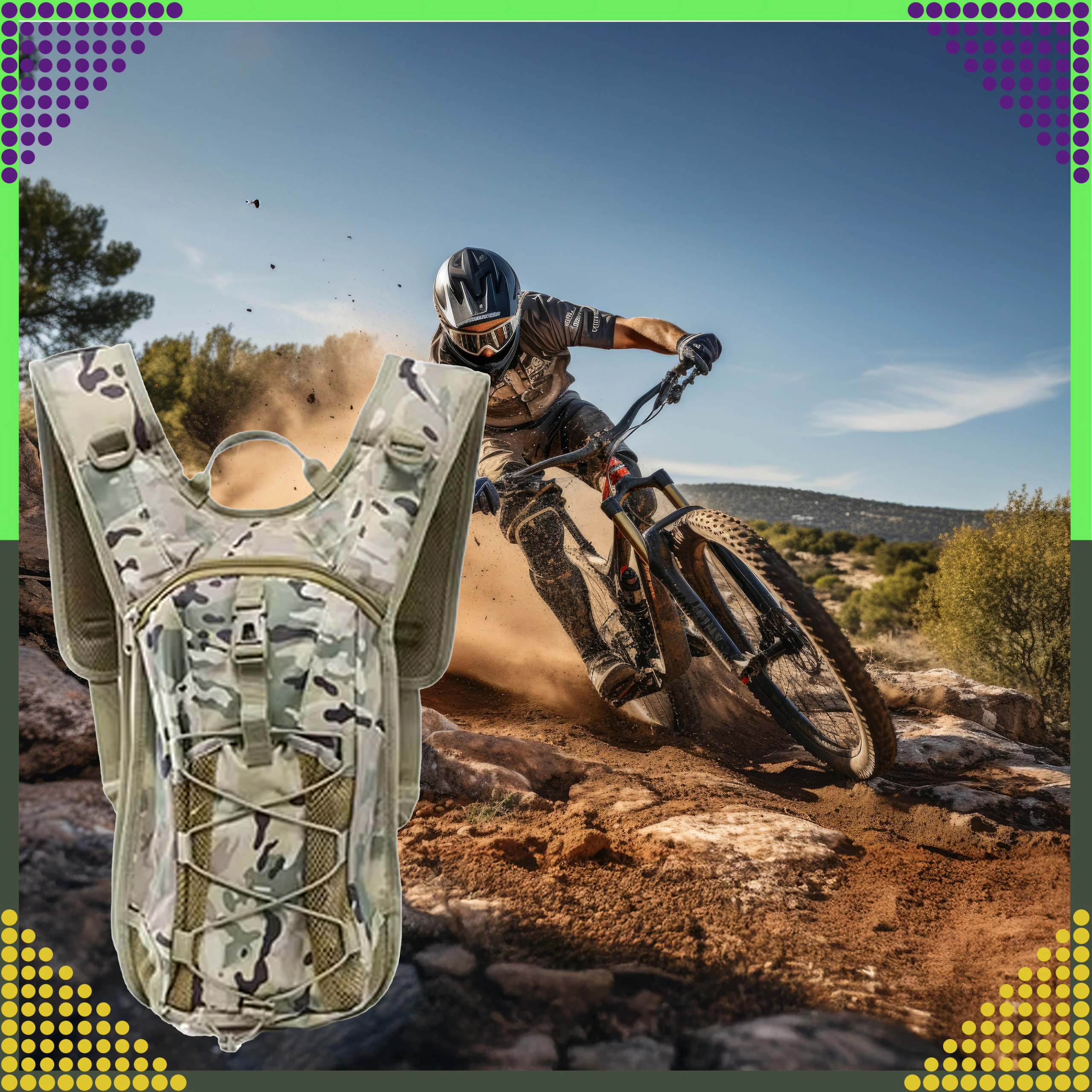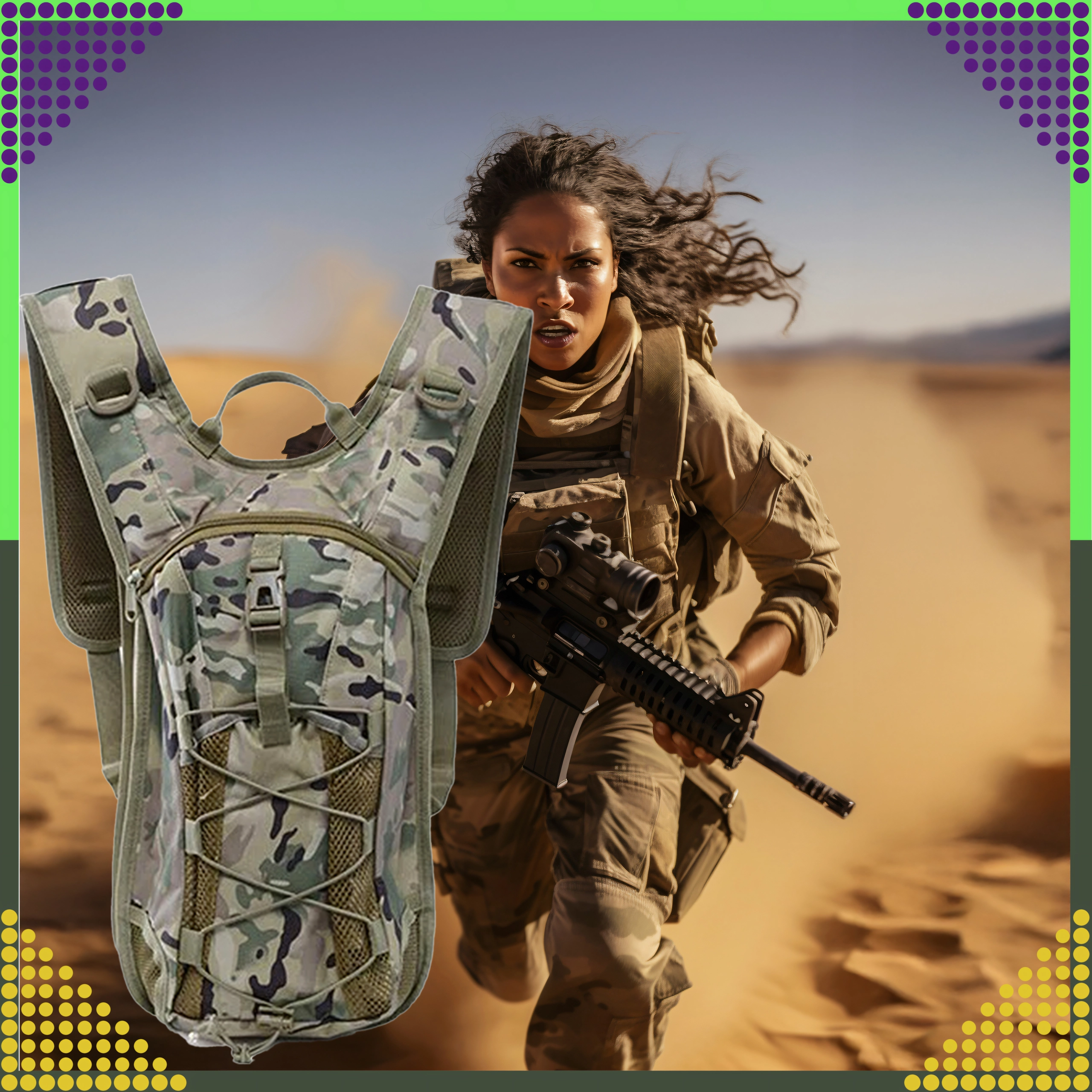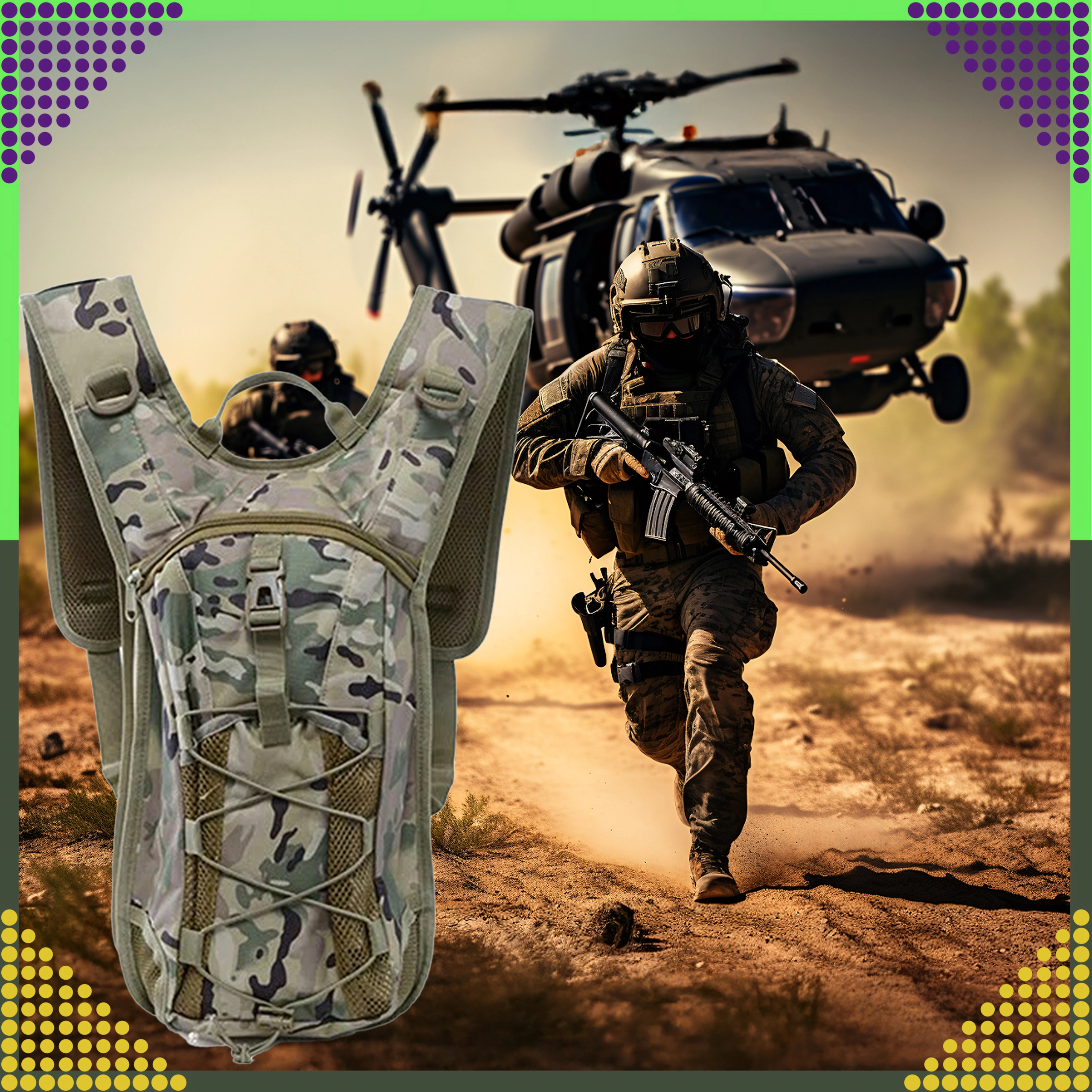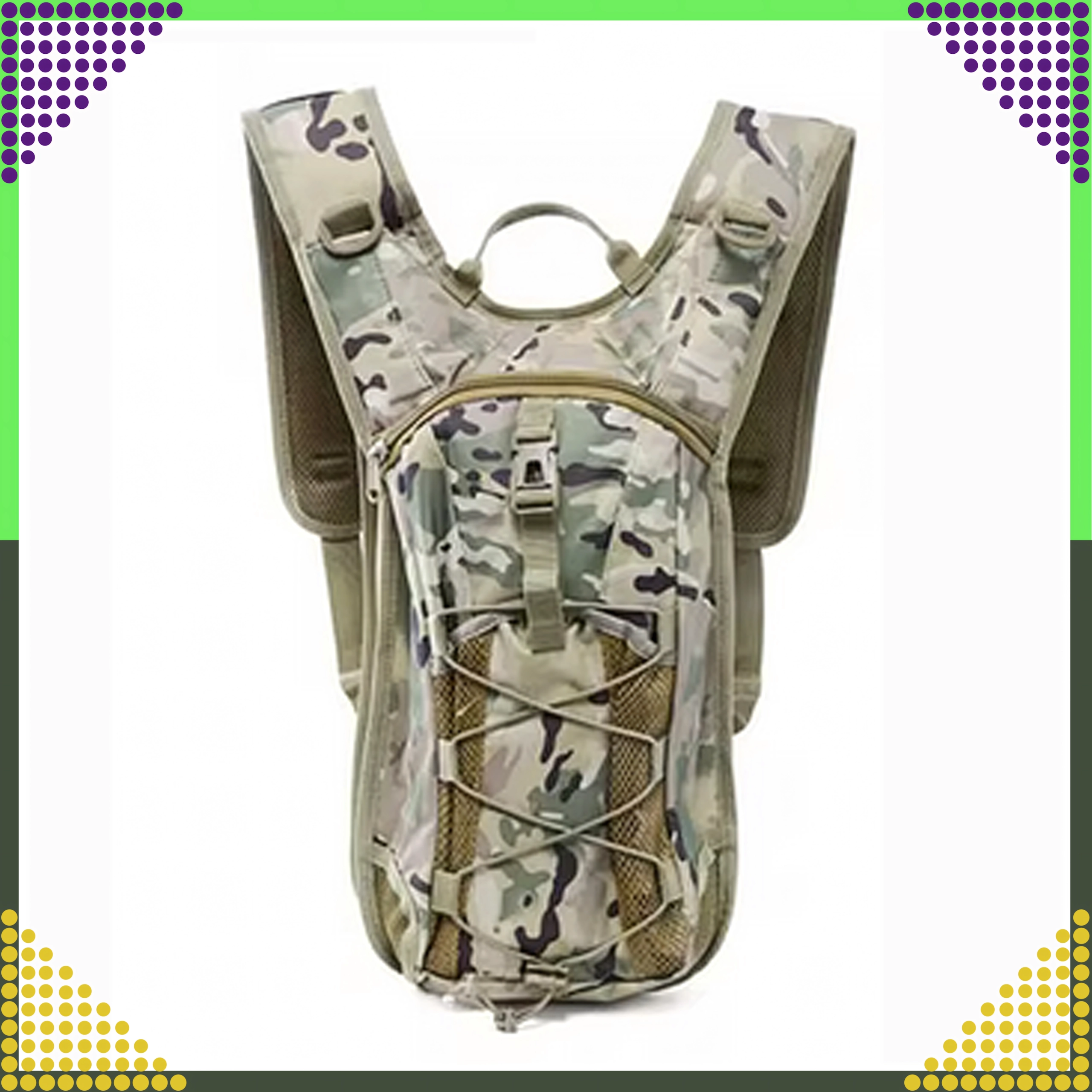 Prednji džep s patentnim zatvaračem, elastična bungee užad i bočni D-prsteni za pričvršćivanje sitnica. Maskirni izgled i čvrsti šavovi podnose zahtjevan teren.
