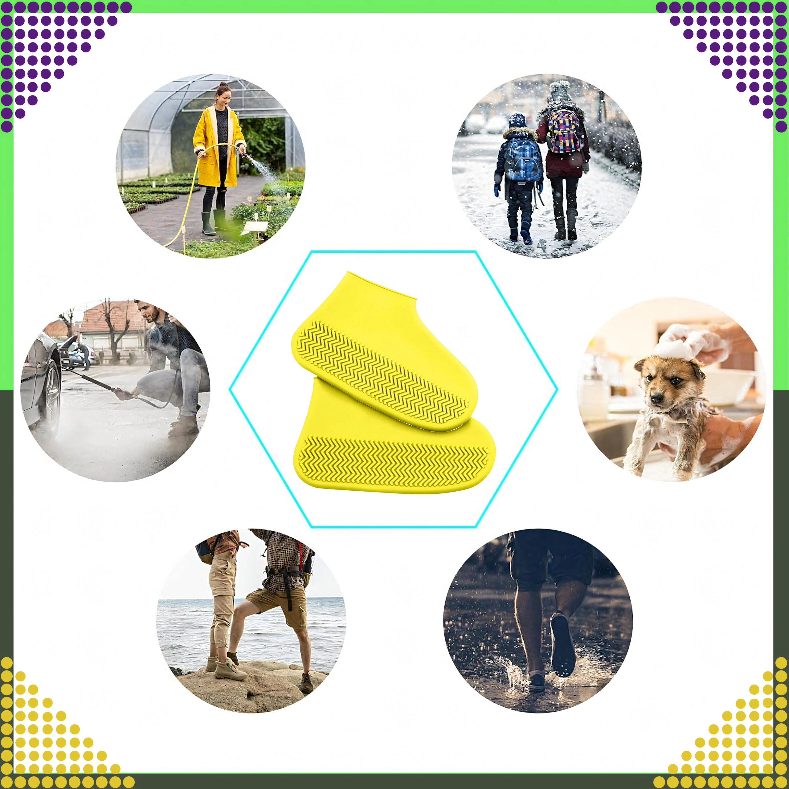 Održite svoje cipele čistima i suhima u svakom vremenu. Silikonske navlake u žutoj boji izrađene su od kvalitetnog elastičnog materijala koji savršeno prianja uz obuću, a istovremeno odolijeva vodi, blatu i snijegu. Protuklizna struktura potplata povećava sigurnost hoda na mokroj podlozi.