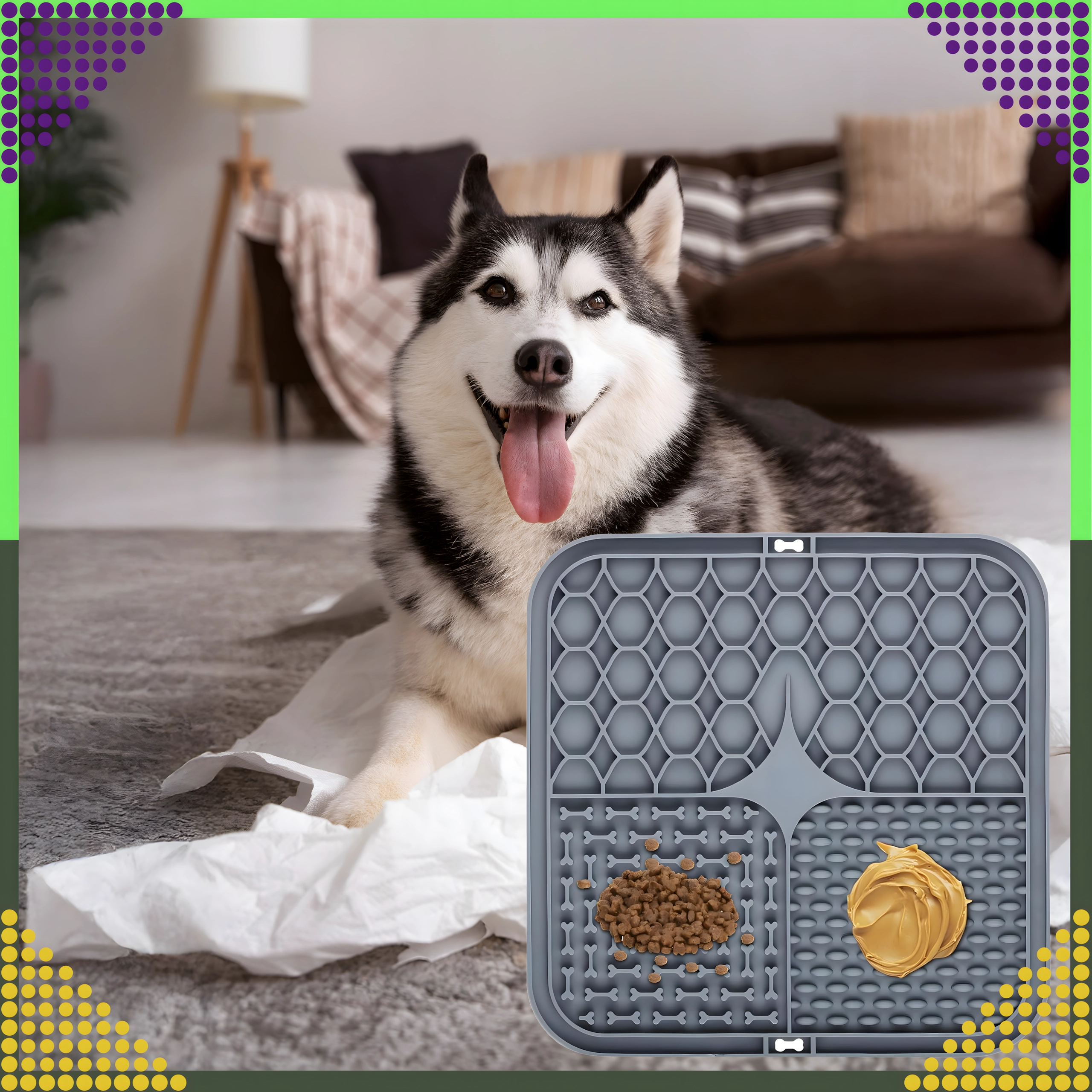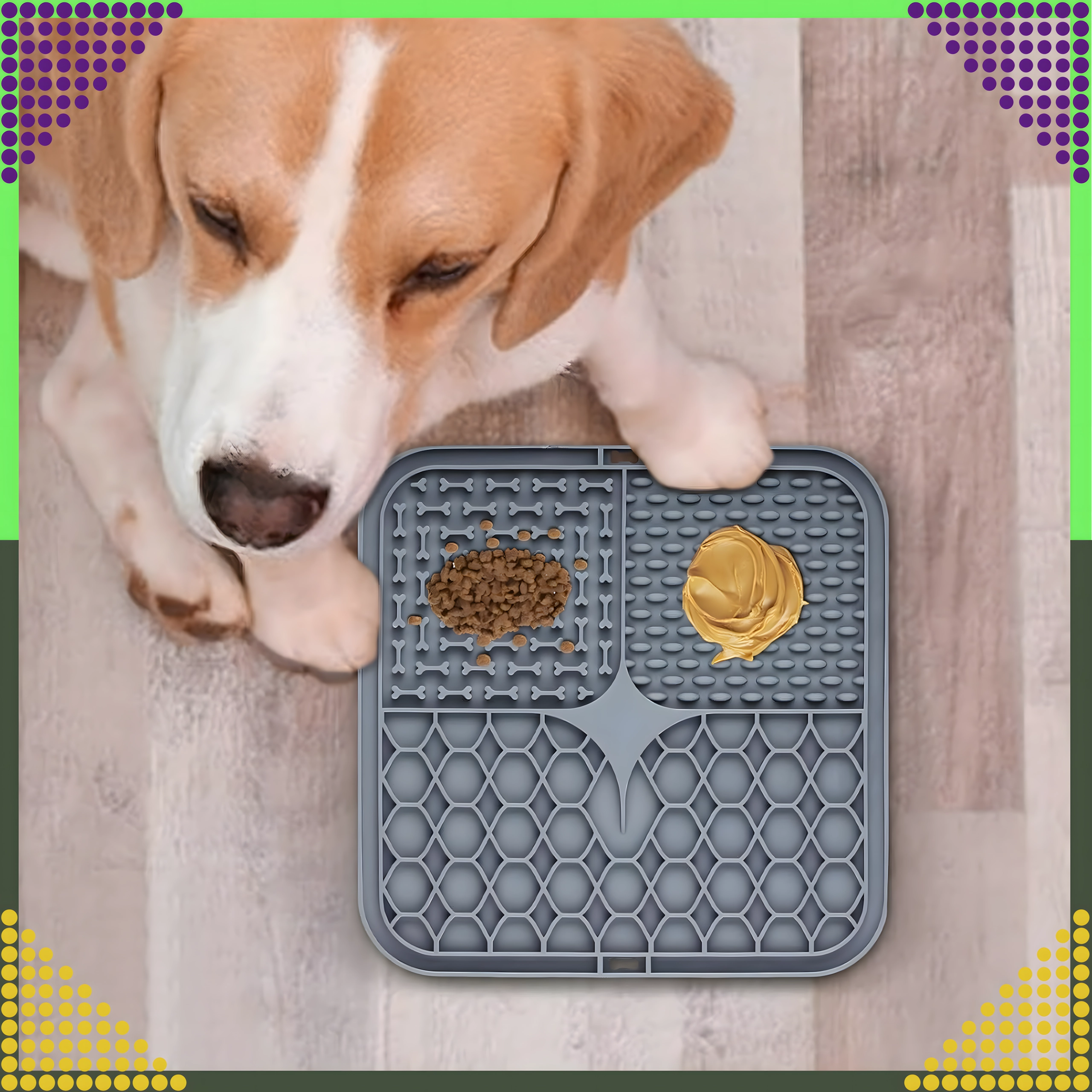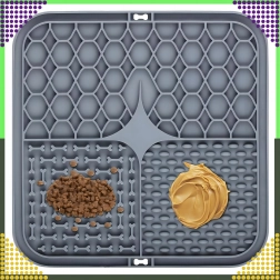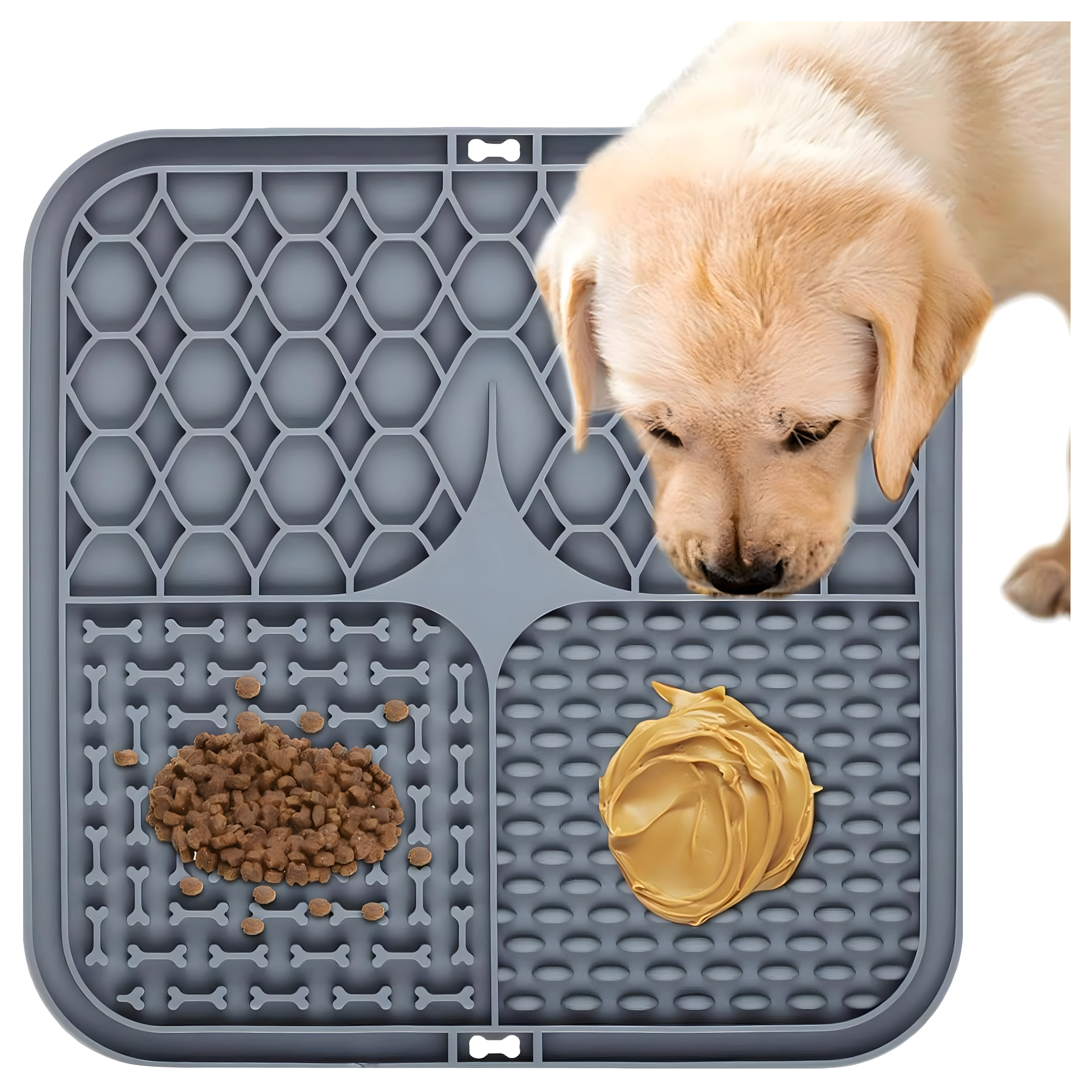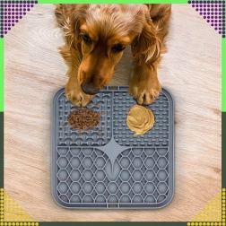 Stražnja strana s protukliznim vakuumskim čašicama drži podlogu čvrsto na podu ili na okomitom površinom (npr. u kupaonici tijekom kupanja). Podloga je od mekog, lako perivog silikona i idealna je za usporavanje hranjenja te kao distrakcija tijekom njege krzna ili posjeta veterinaru.