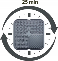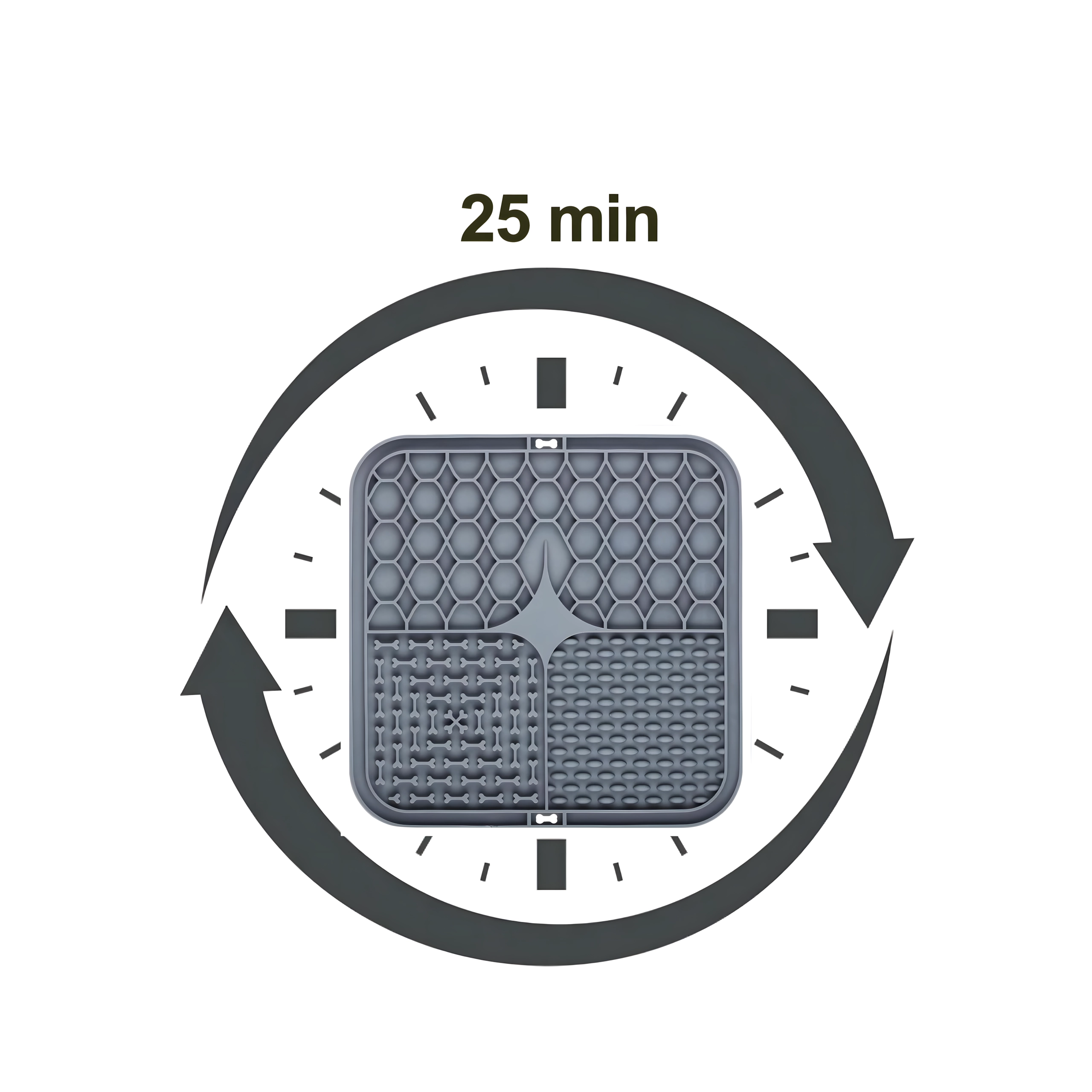 Ova antistres lizalica podloga omogućuje razmazivanje mokre hrane, pašteta ili kikiriki maslaca tako da ih ljubimac mora postupno lizati. Različite reljefne zone potiču prirodni instinkt lizanja, čime umiruju i istodobno podržavaju oralnu higijenu nježnim čišćenjem jezika.