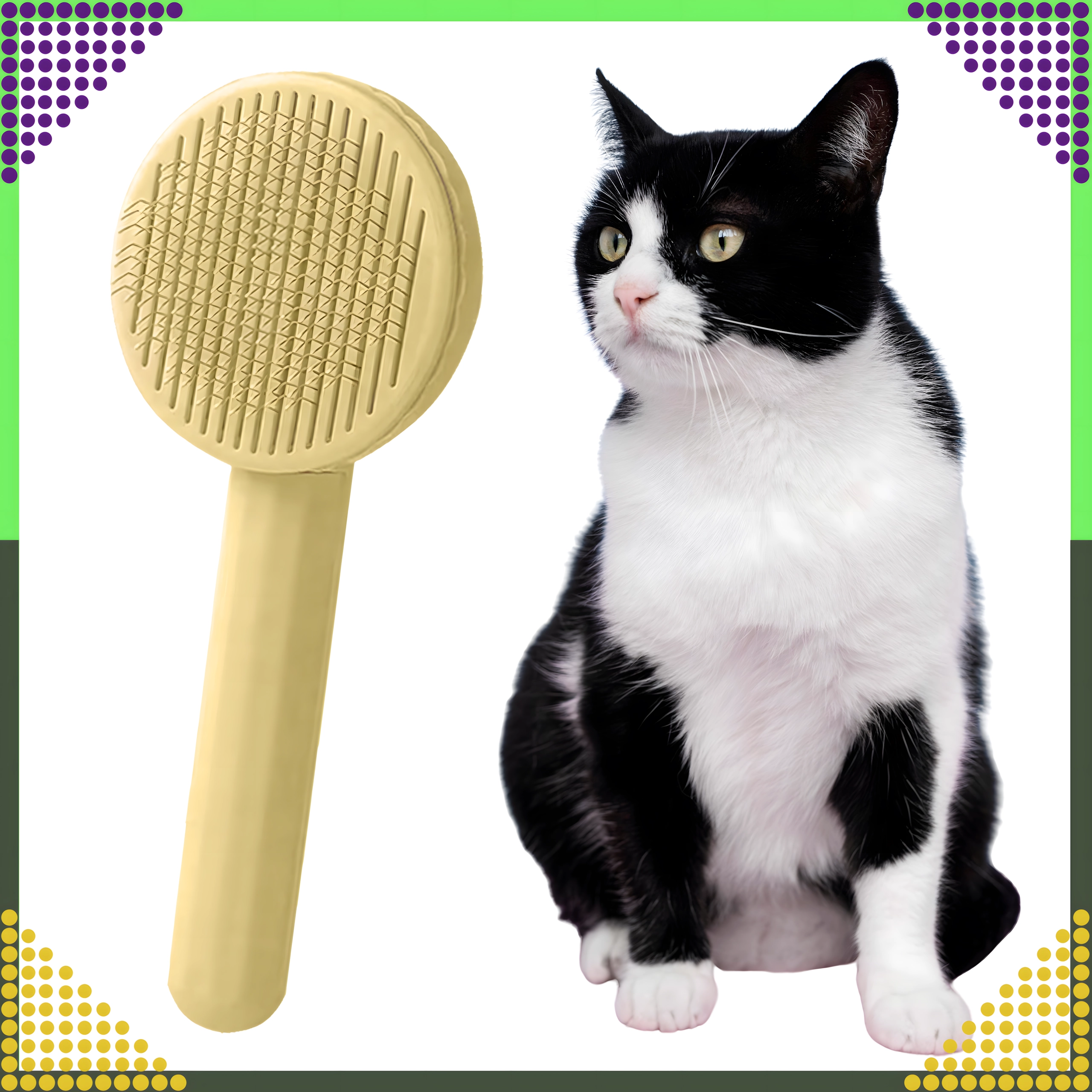 Samočisteća četka za dlaku olakšava svakodnevnu njegu pasa i mačaka. Guste fine žičice s okruglim završecima nježno prodiru kroz dlaku, uklanjaju otpale dlačice i lagano masiraju kožu, čime potiču sjaj i zdravlje dlake. Ergonomska drška udobno leži u ruci i omogućuje precizno vođenje bez napora.