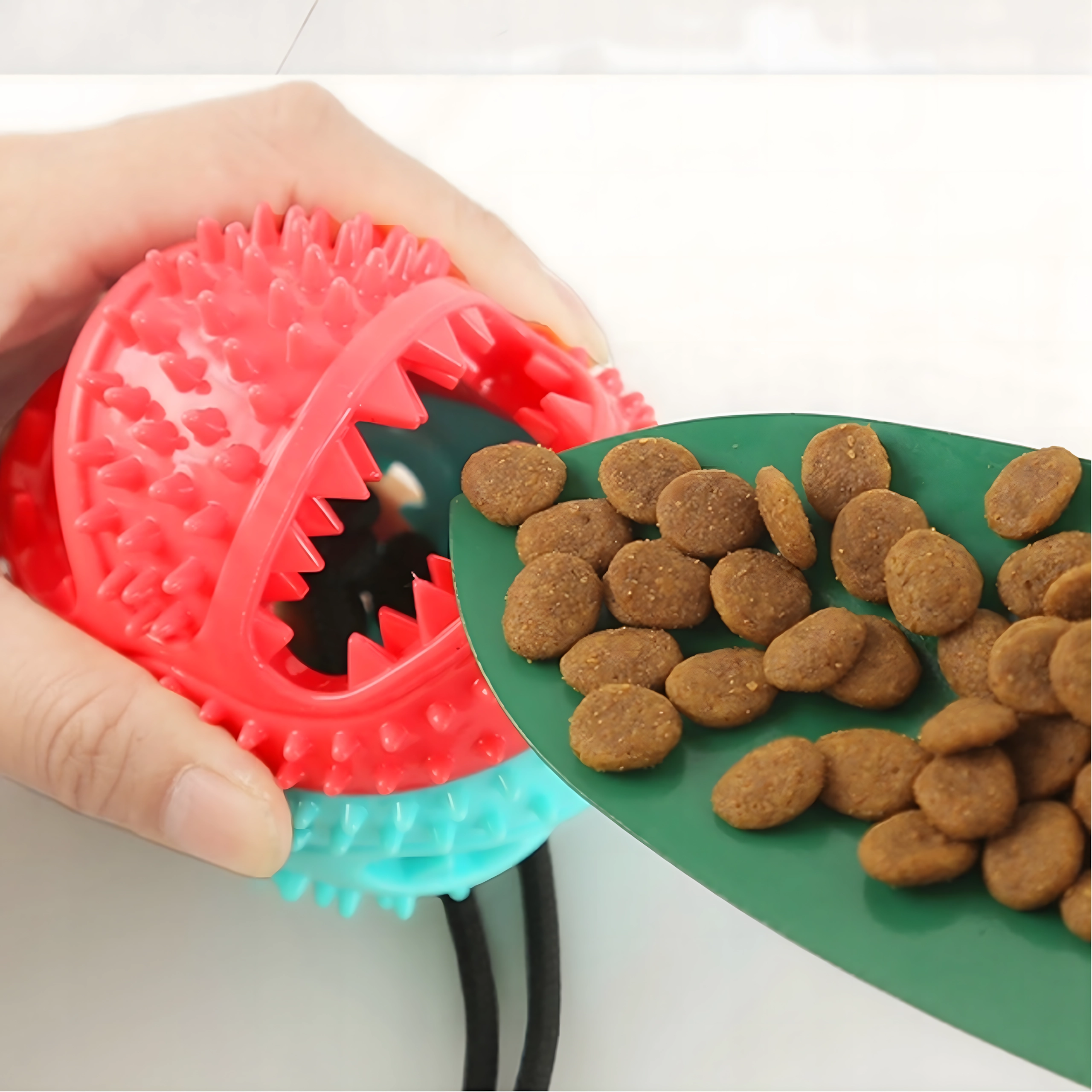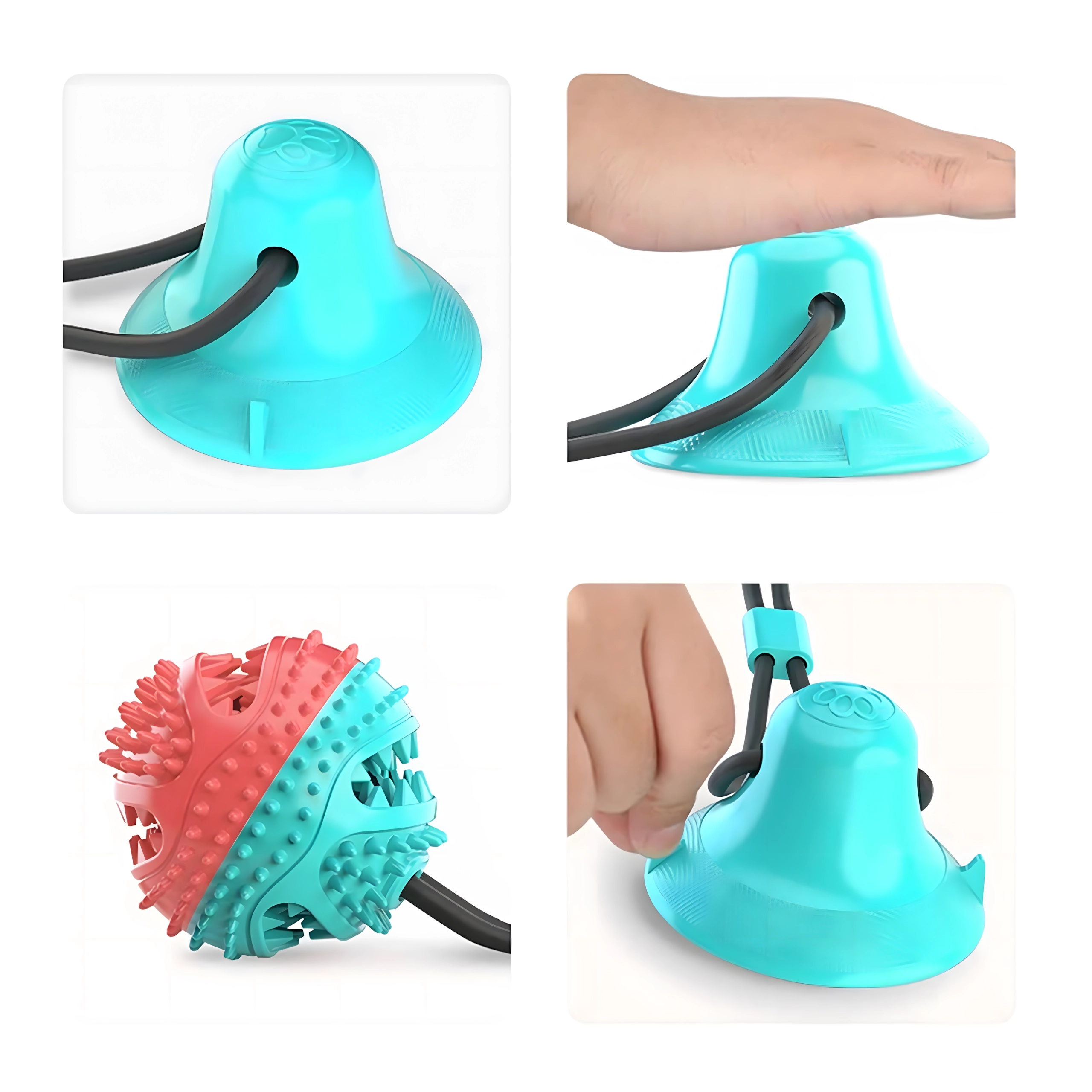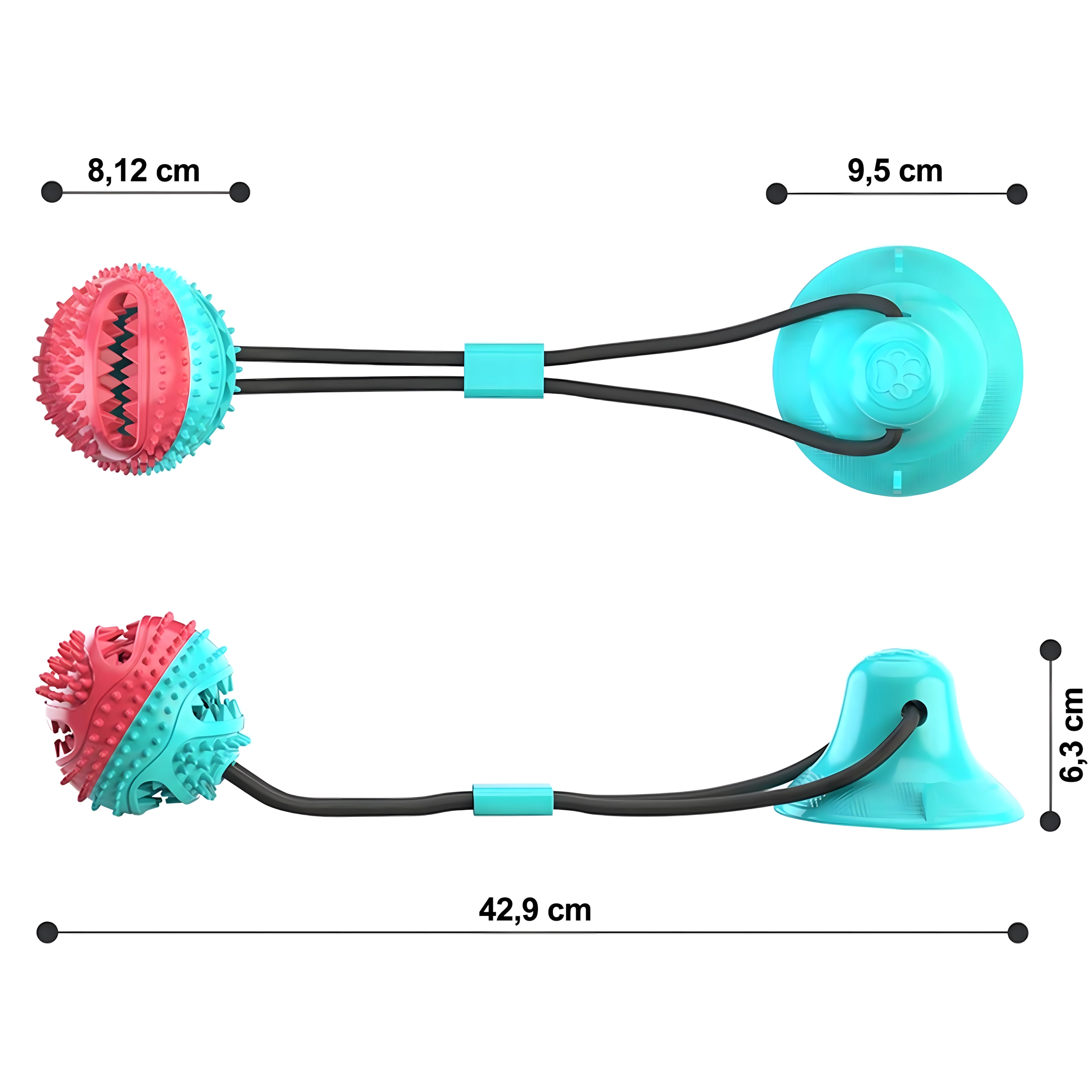 Ova interaktivna igračka s vakuumskom čašicom kombinira lopticu za poslastice s užetom za povlačenje i žvakanje. Čašicu lako pričvrstite na glatku površinu i pas se može sigurno igrati i bez vaše asistencije. Spiky struktura loptice pri svakom zalogaju pomaže smanjiti zubni plak i brinuti o desnima. Otvor za poslastice potiče sporiji unos hrane i produžuje zabavu.