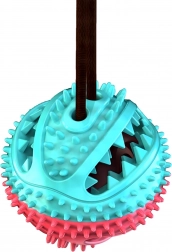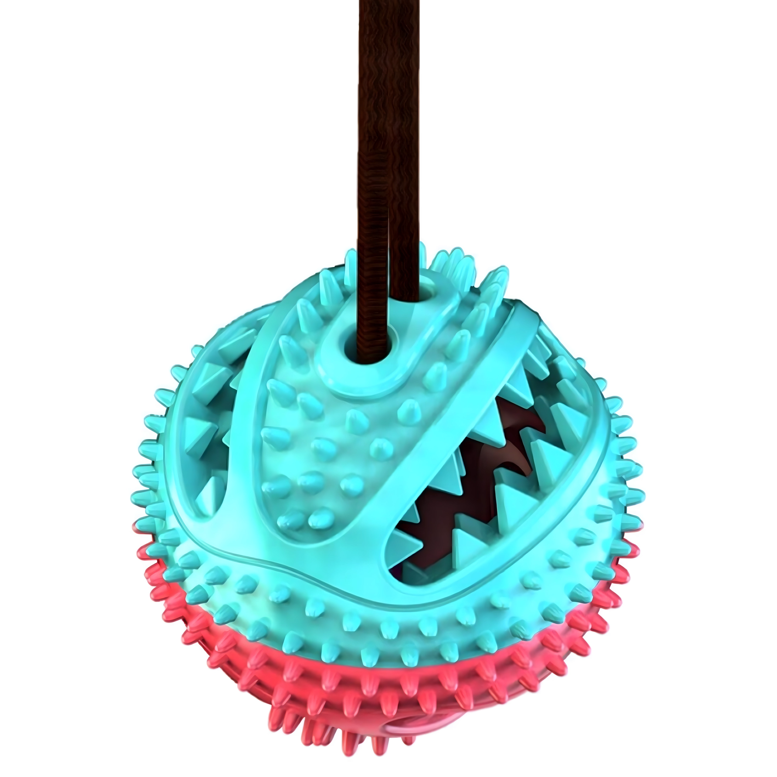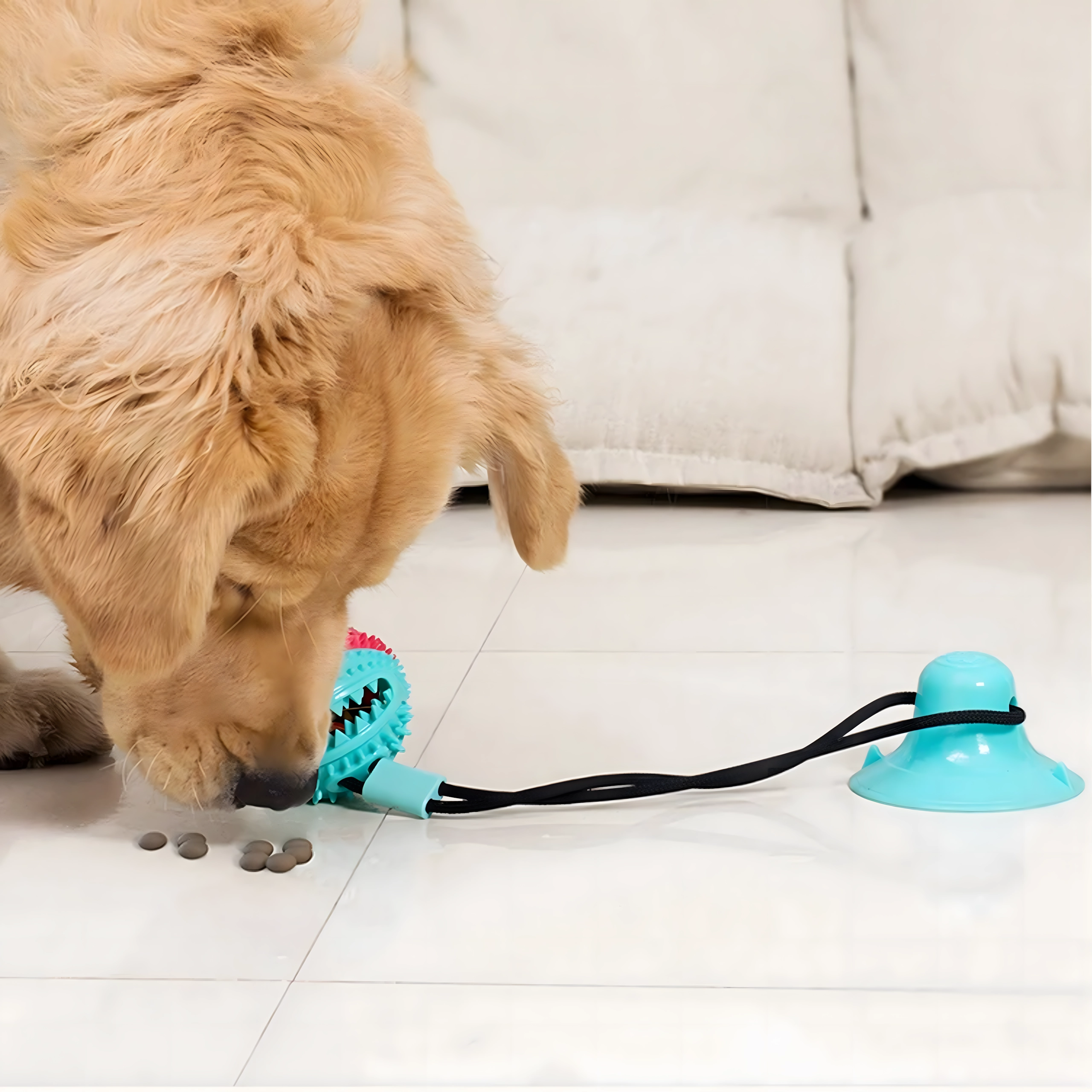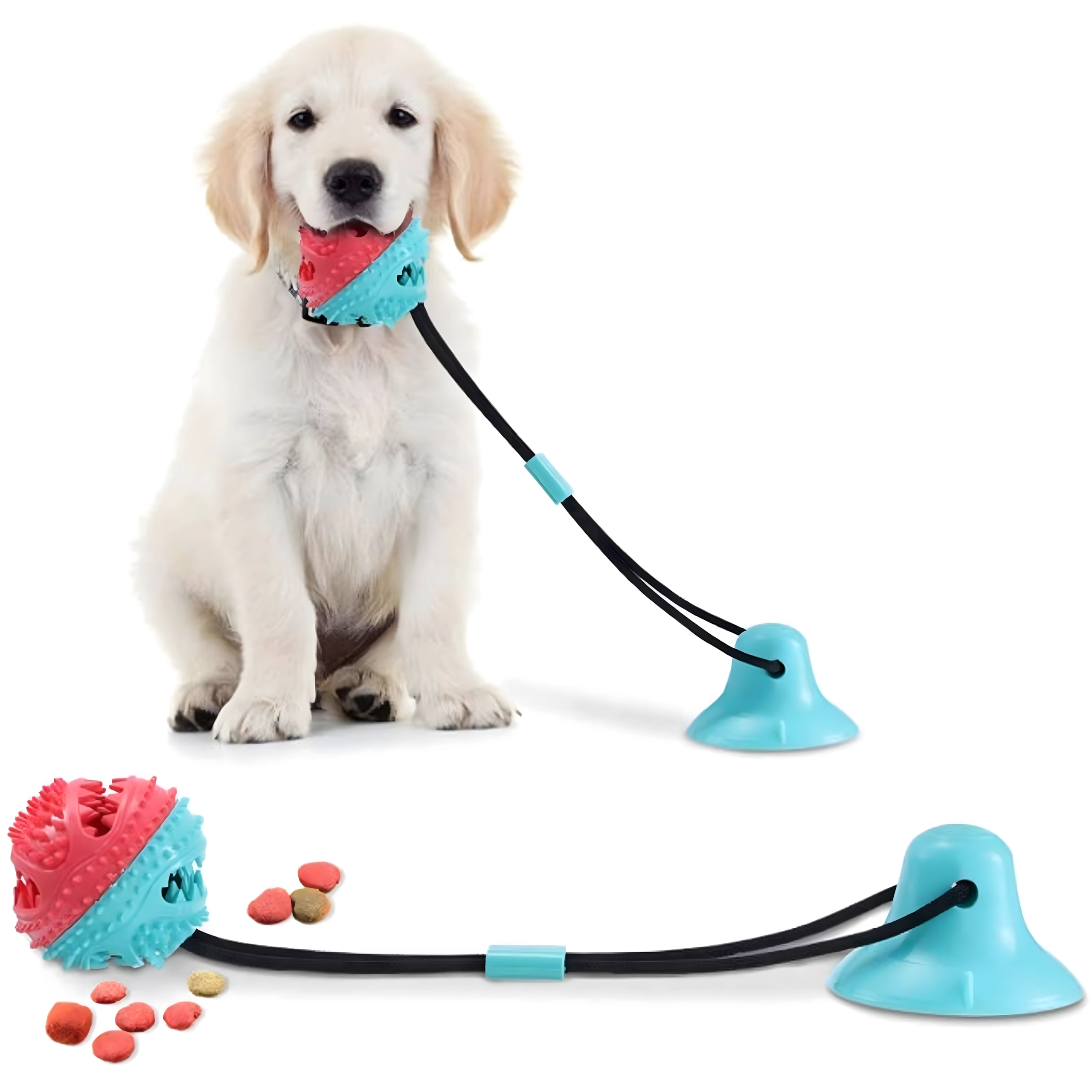 Ova interaktivna igračka s vakuumskom čašicom kombinira lopticu za poslastice s užetom za povlačenje i žvakanje. Čašicu lako pričvrstite na glatku površinu i pas se može sigurno igrati i bez vaše asistencije. Spiky struktura loptice pri svakom zalogaju pomaže smanjiti zubni plak i brinuti o desnima. Otvor za poslastice potiče sporiji unos hrane i produžuje zabavu.