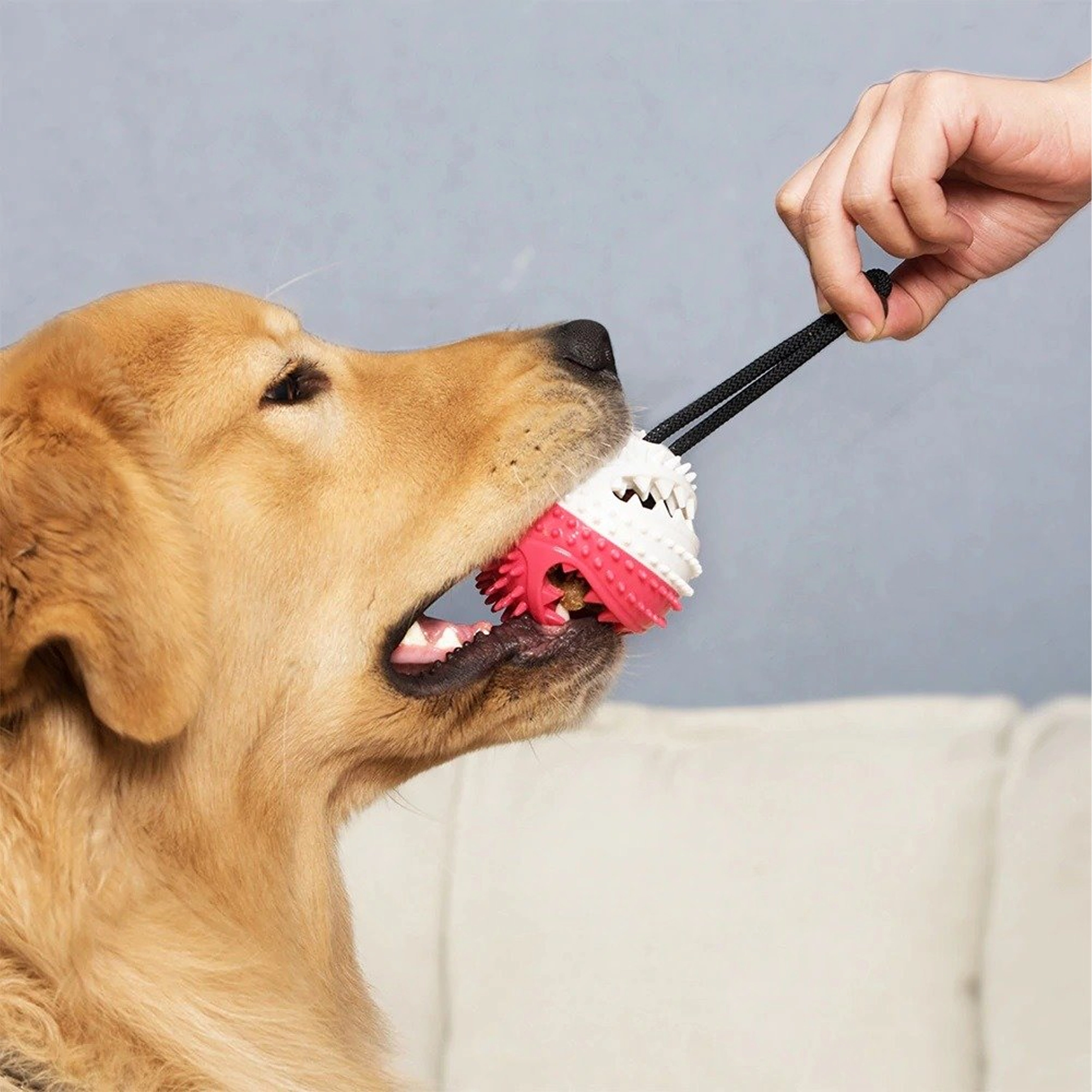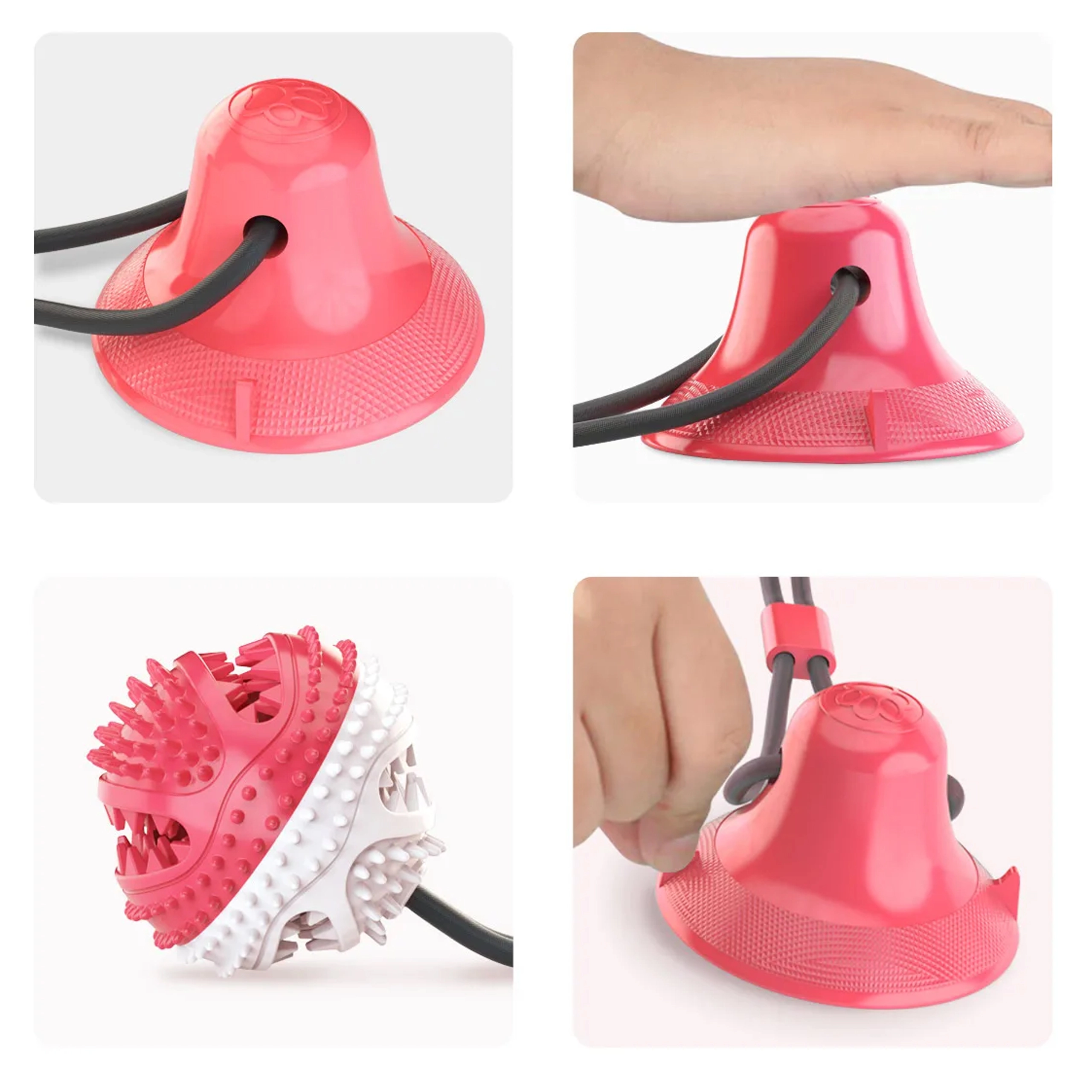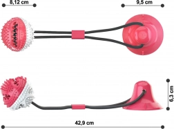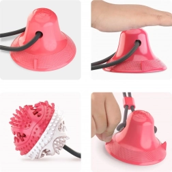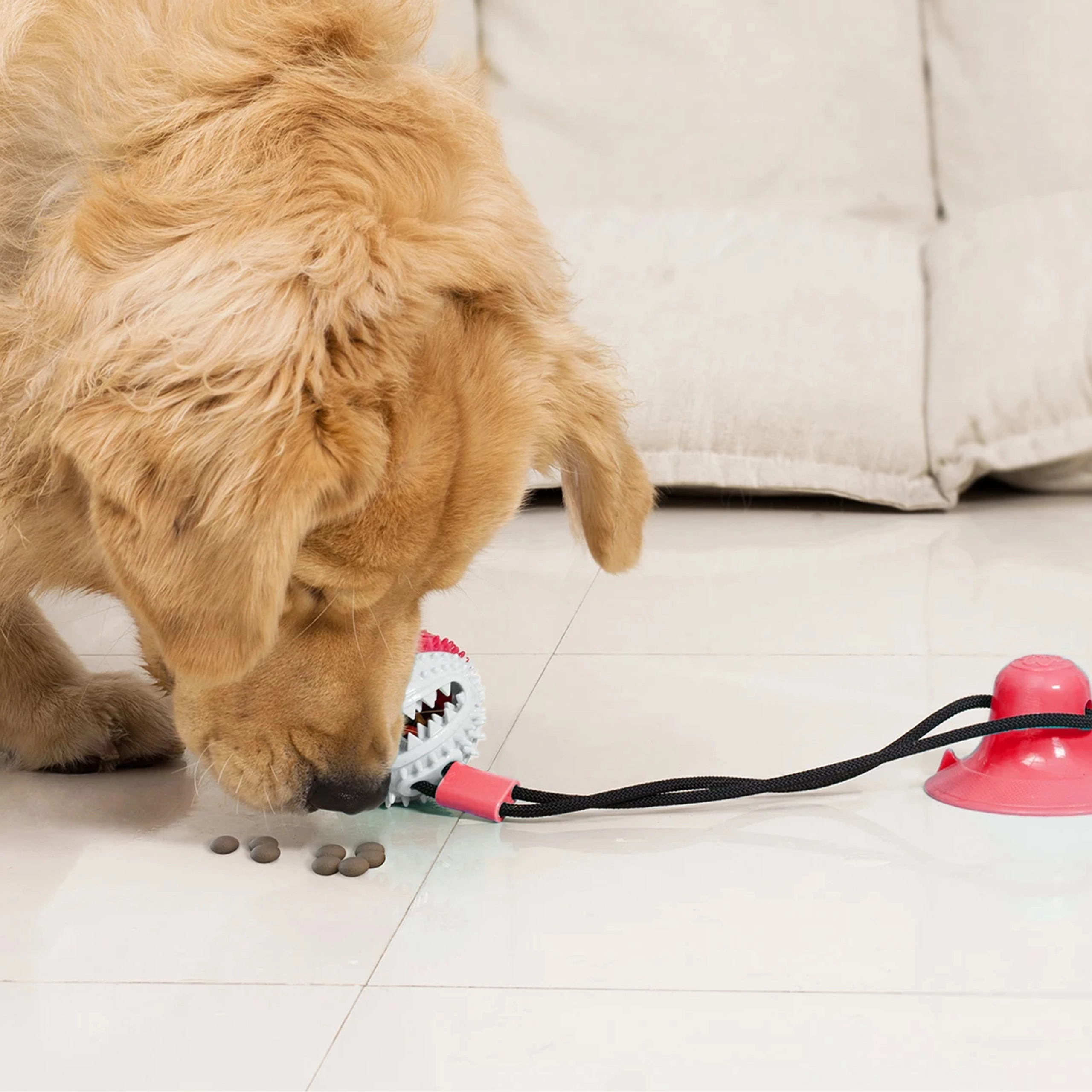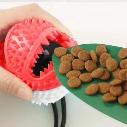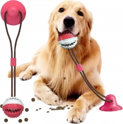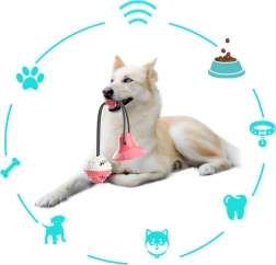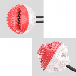 Interaktivna loptica s vakuumskom čašicom zabavit će vašeg psa povlačenjem, žvakanjem i lovljenjem poslastica. Zahvaljujući izdržljivom užetu i snažnoj vakuumskoj čašici igračku je moguće pričvrstiti na glatke površine, pa pas može sigurno vući i pokušavati osloboditi lopticu. Teksturirane gumene izbočine tijekom igre mehanički čiste zube i nježno masiraju desni, što potiče higijenu usne šupljine.