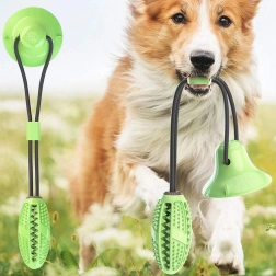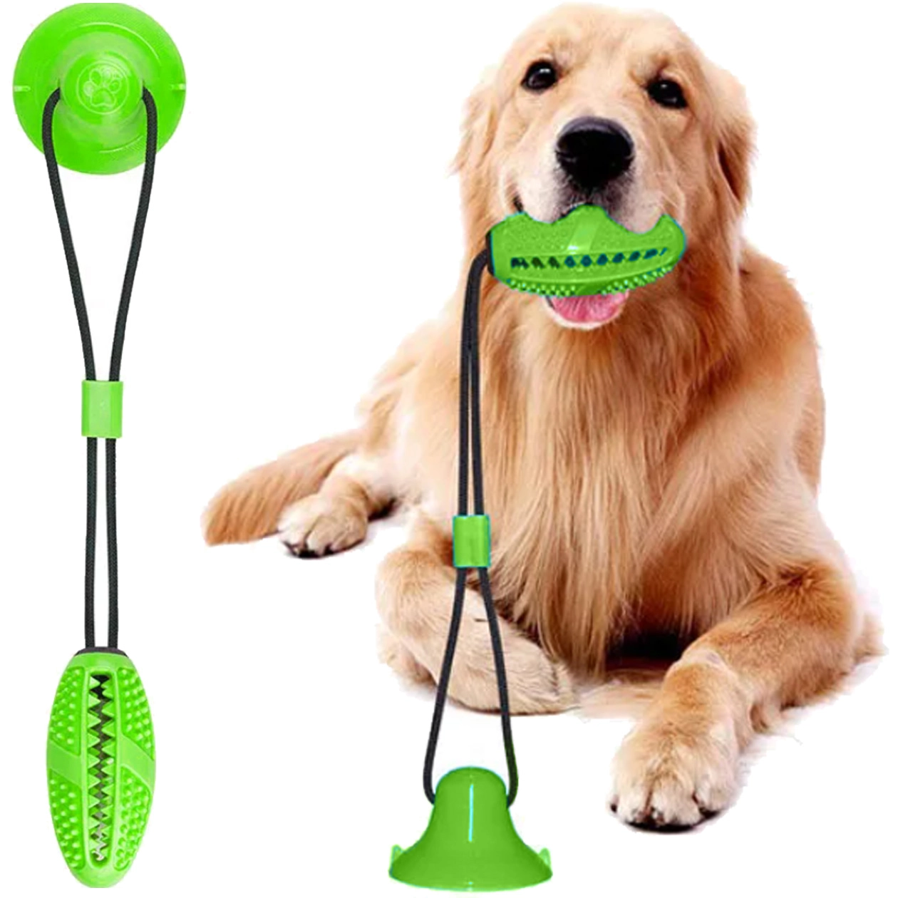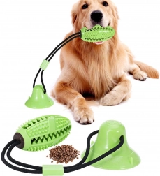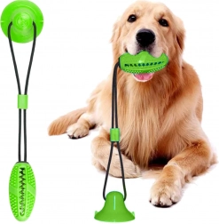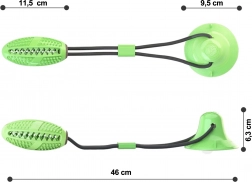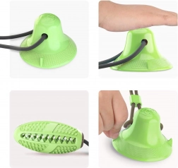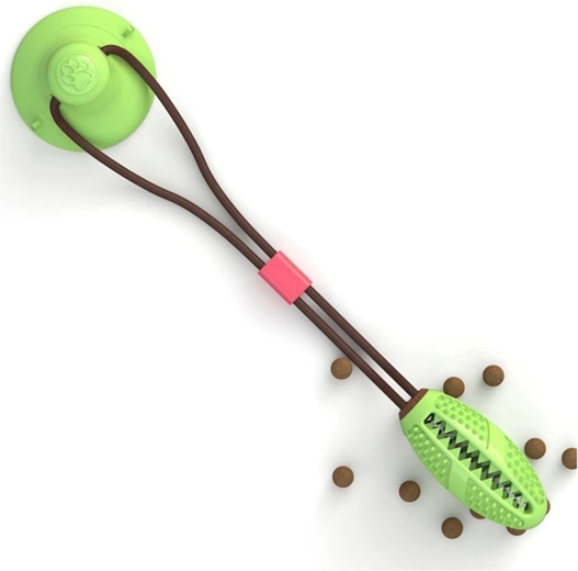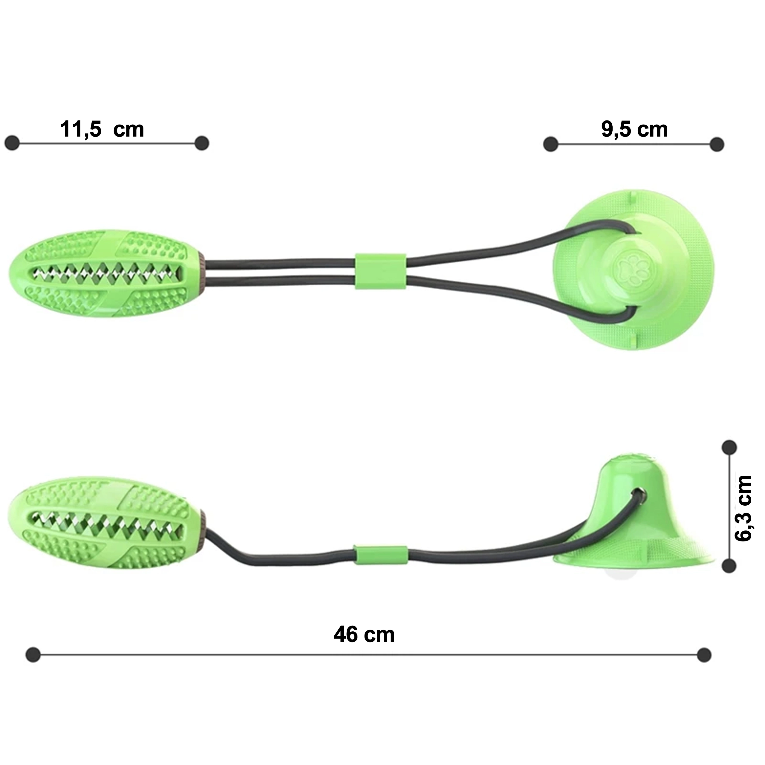 Interaktivna žvakalica s vakuumskom čašicom osmišljena je za prirodnu potrebu psa za žvakanjem i mentalnu stimulaciju. Snažna čašica drži na glatkim površinama i omogućuje psu samostalno povlačenje i natezanje, dok izdržljivo uže i elastični spoj osiguravaju sigurnu i dugotrajnu zabavu. Teksturirana površina s bodljama i rebrima tijekom žvakanja čisti zube, masira desni i pomaže smanjiti zubni kamenac.