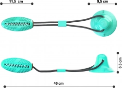 Pričvrstite vakuumsku čašicu na glatku površinu i dopustite psu da poteže, žvače i otkriva nagrade skrivene unutra. Izdržljivi materijali i elastično uže podnose intenzivno povlačenje, dok su mekani gumeni vrhovi nježni prema zubima i desnima. Redovita igra pomaže smanjiti dosadu, višak energije i potiče zdravlje usne šupljine.