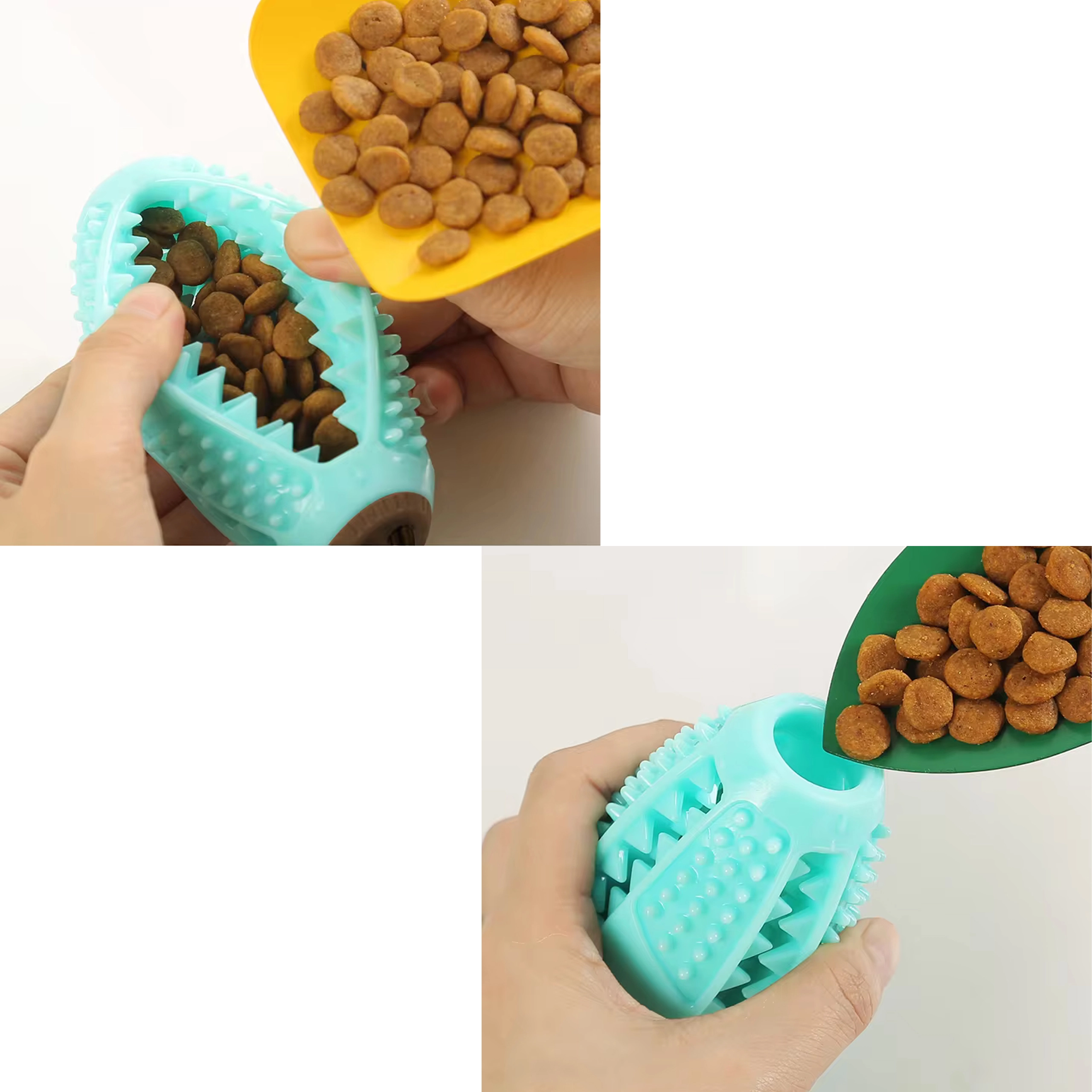 Otvorima za granule i poslastice nagrađuje se svako žvakanje. Igračka potiče sporiji unos hrane i smanjuje proždrljivost.