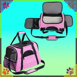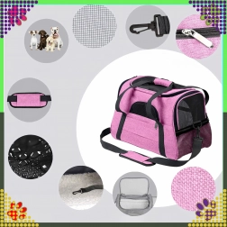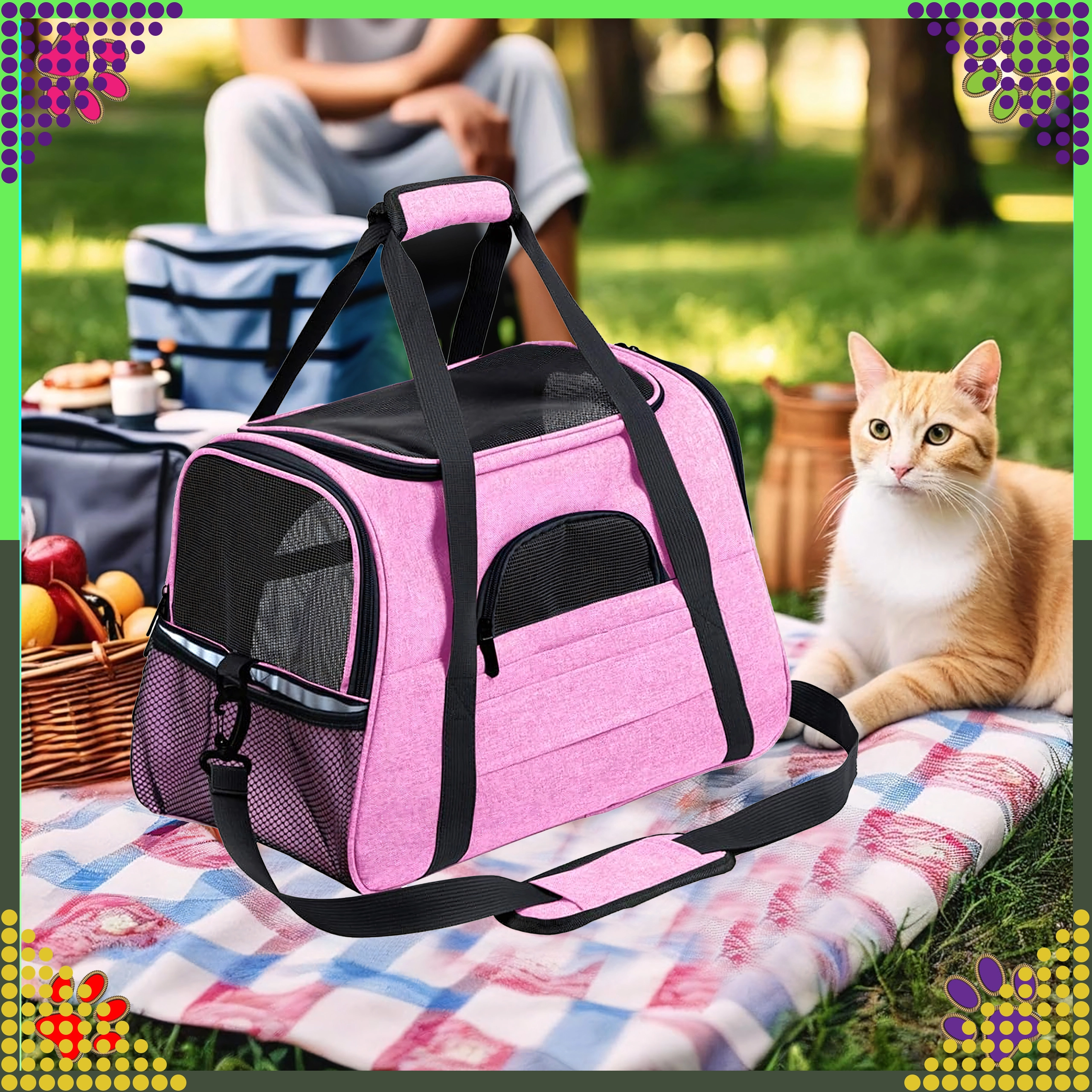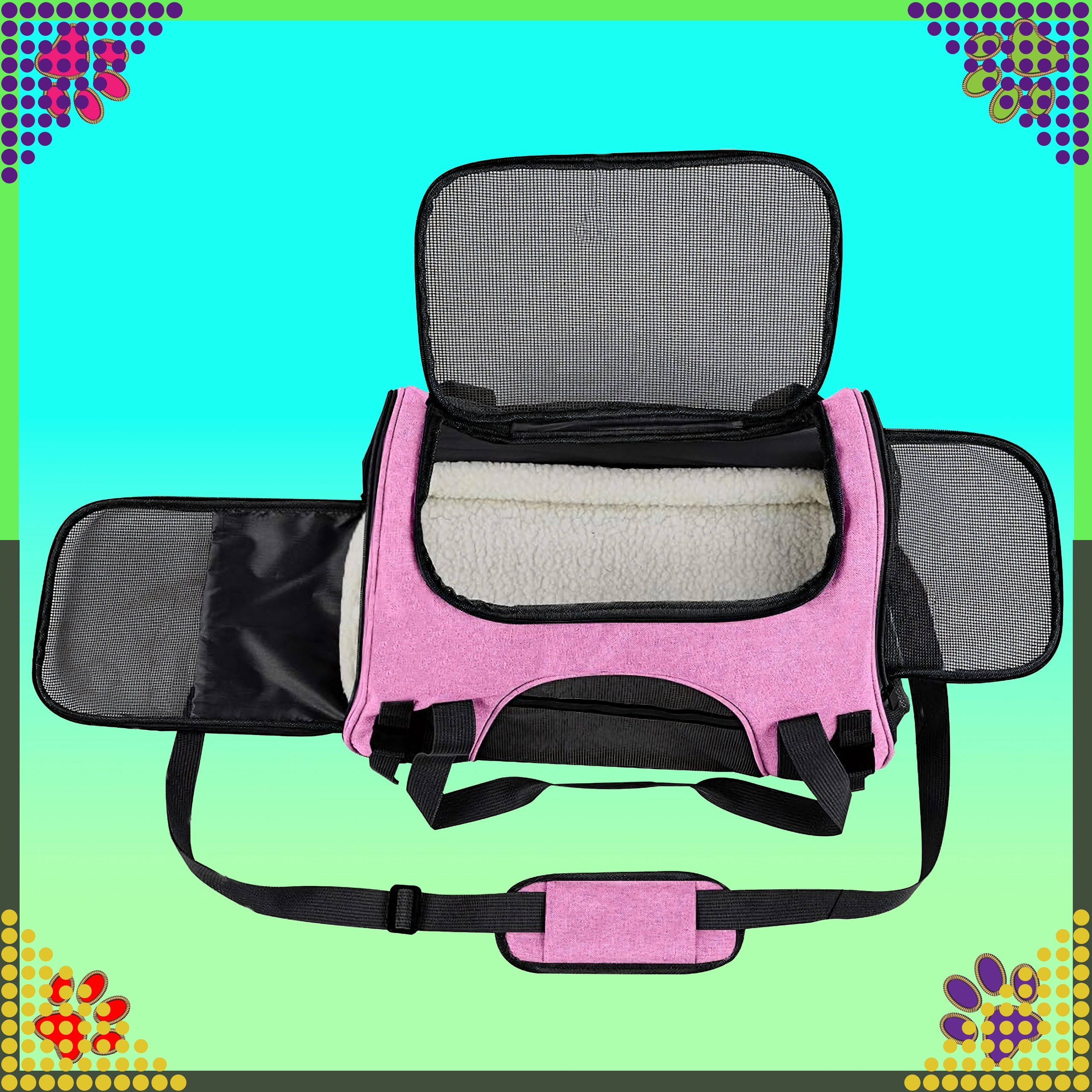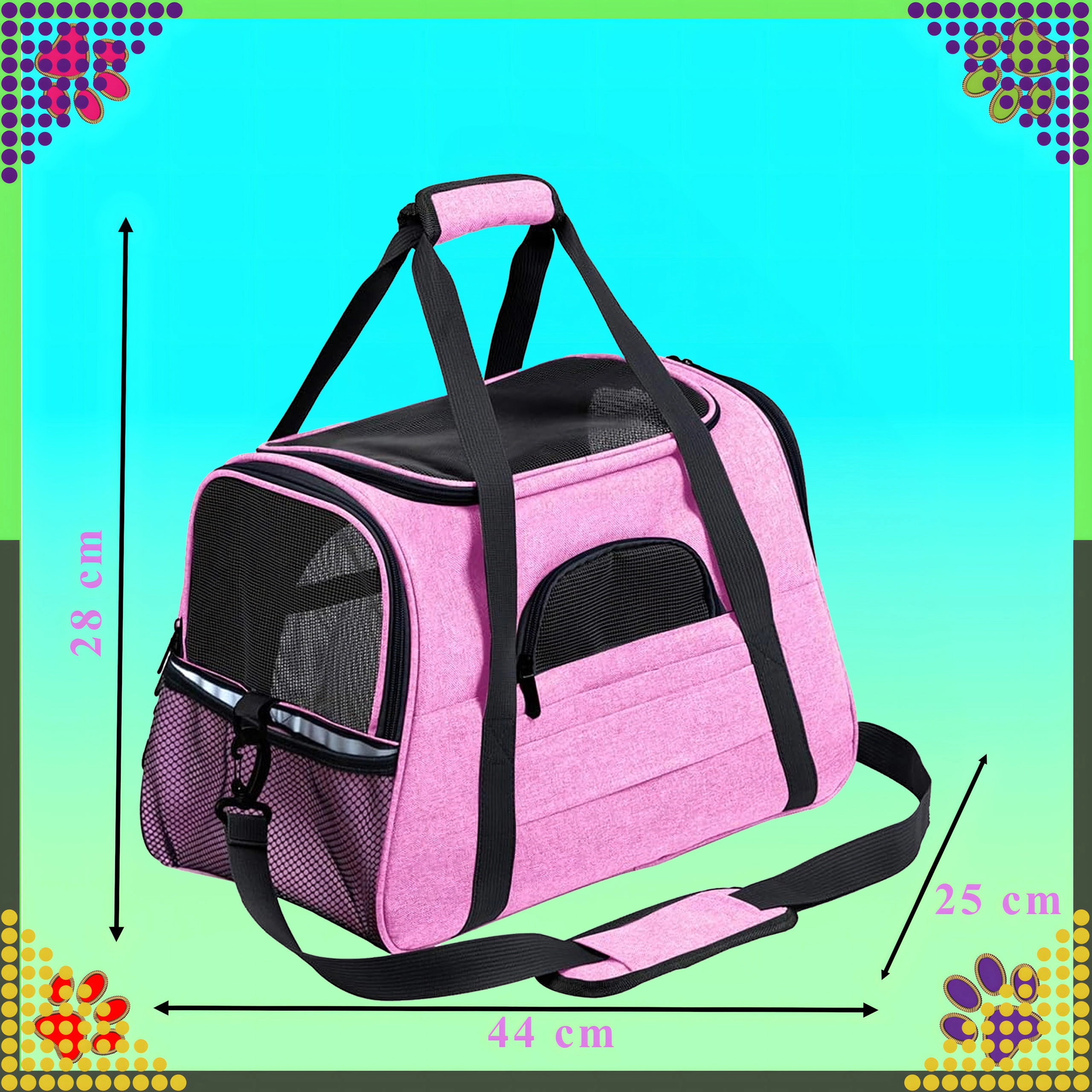 Praktična prijenosna torba za životinje kombinira udobnost, sigurnost i jednostavno održavanje. Zahvaljujući kvalitetnom poliesteru otporna je na mrlje i oštećenja, ne upija neugodne mirise i zadržava svoj izgled i pri čestoj upotrebi. Różičasto izdanje razveselit će ljubitelje stila i životinji pružiti mirno utočište tijekom puta.
