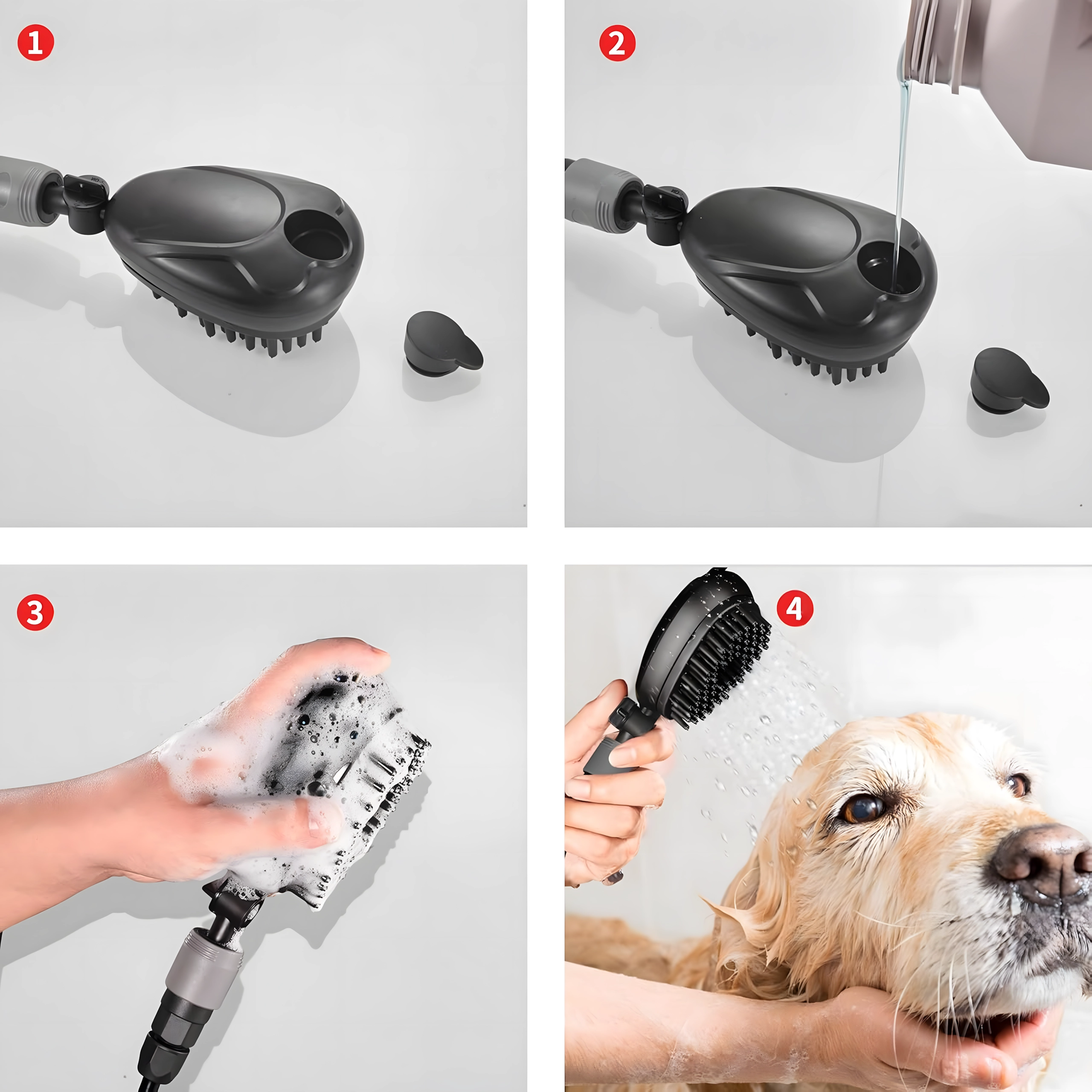 - Tuš + četka 2u1: istodobno pranje, masaža i uklanjanje nečistoća te opuštene dlake.