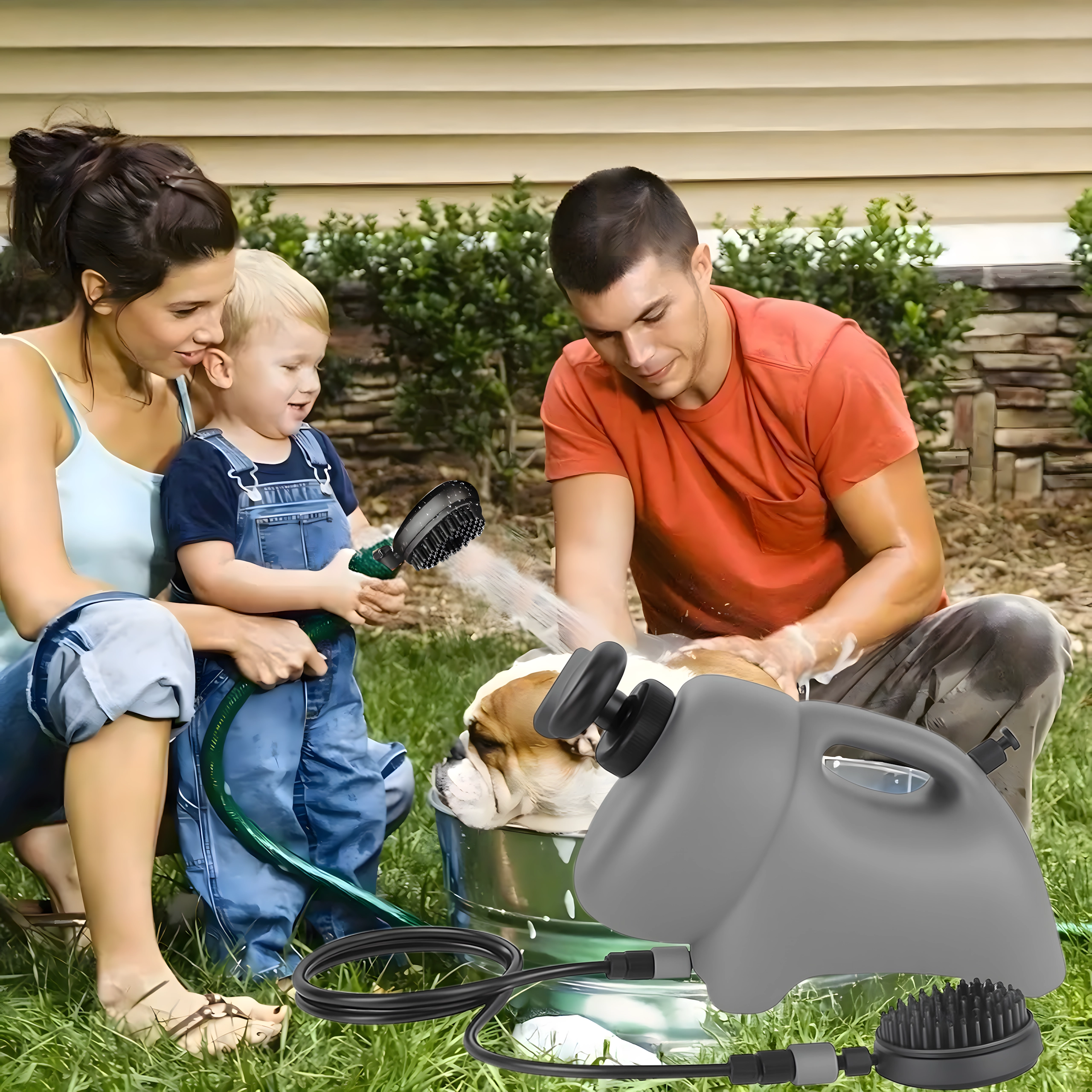 - Prijenosna perilica za kućne ljubimce s 2u1 tuš-četkom