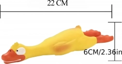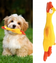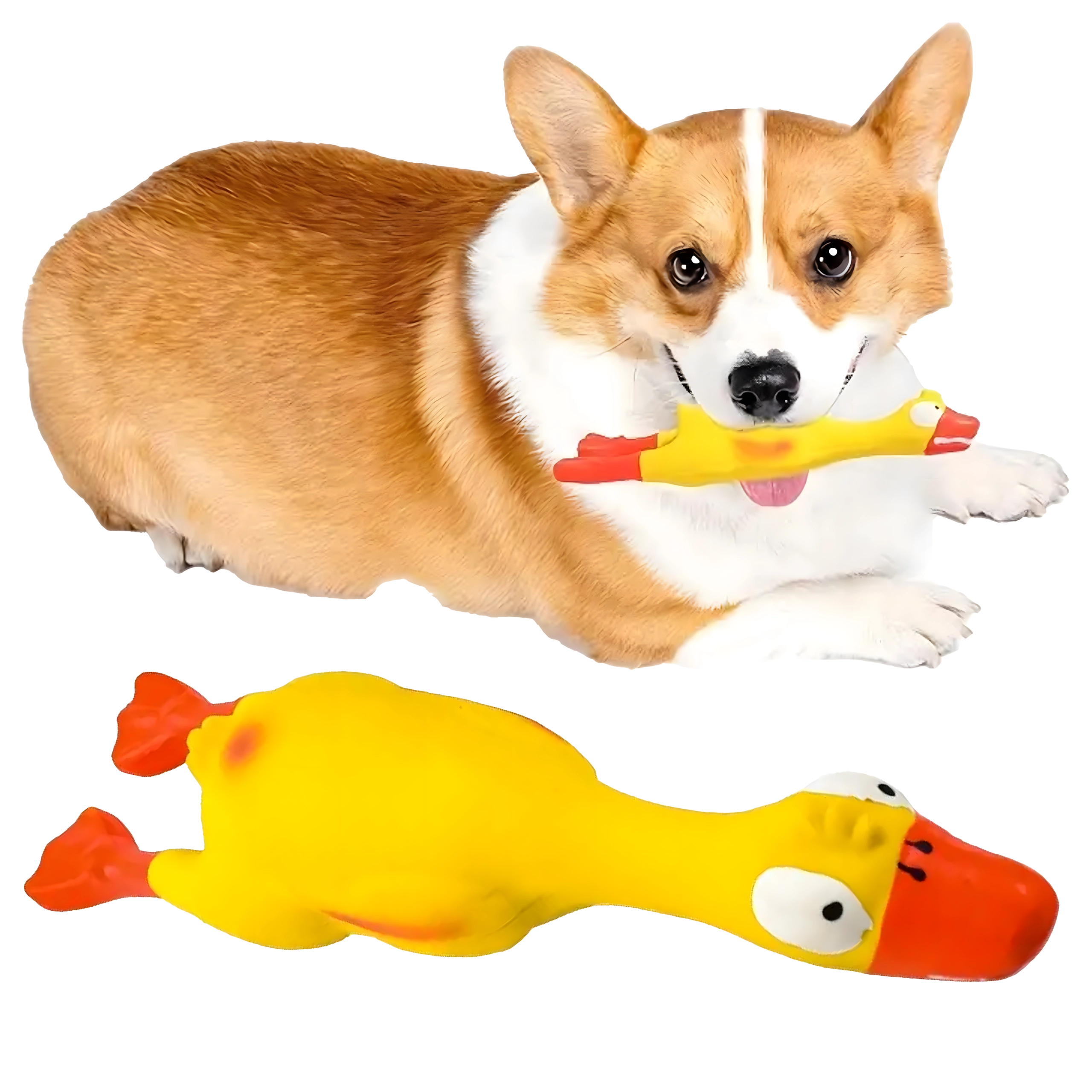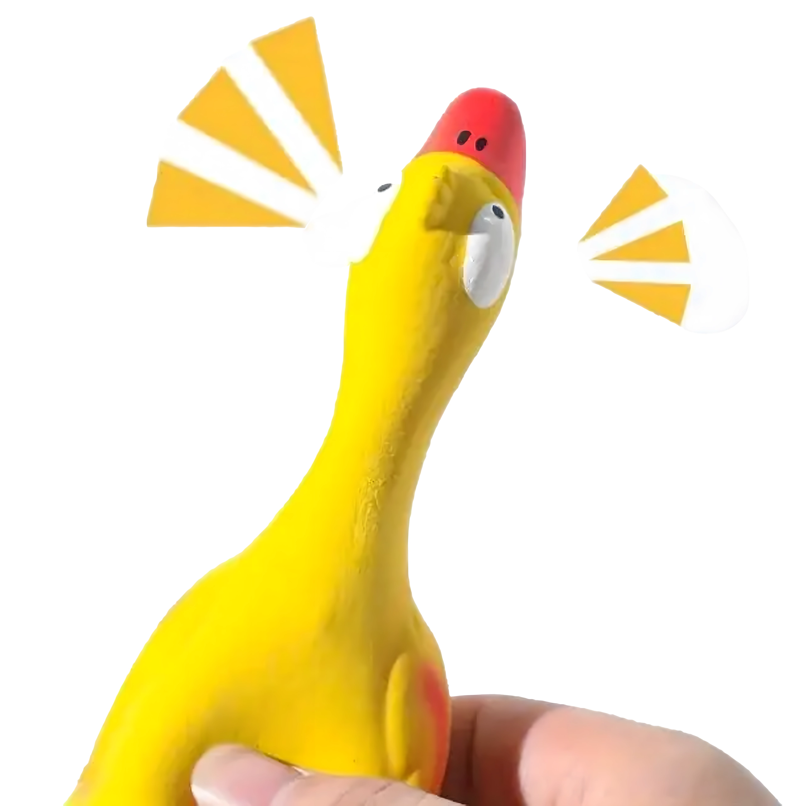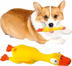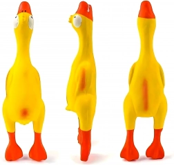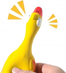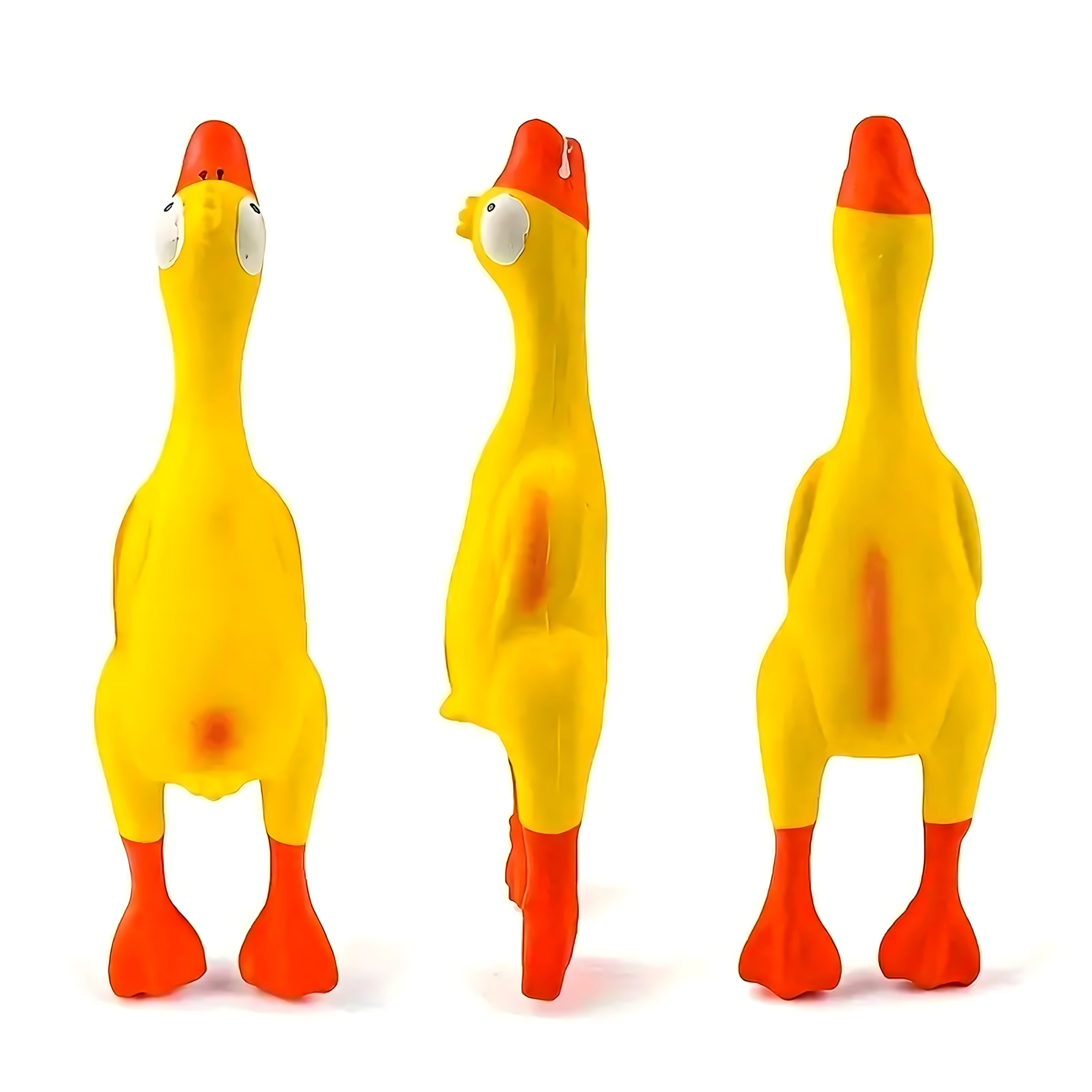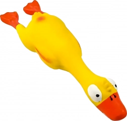 Piskajuća gumena kokoš duljine 22 cm univerzalna je igračka za svakodnevnu zabavu u domu i na otvorenom. Jarko žuta boja s narančastim kljunom i šapama dobro je vidljiva u travi i na podu, a piskalo iznutra pouzdano potiče svakog ljubimca na igru.