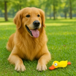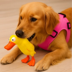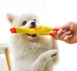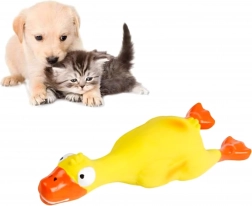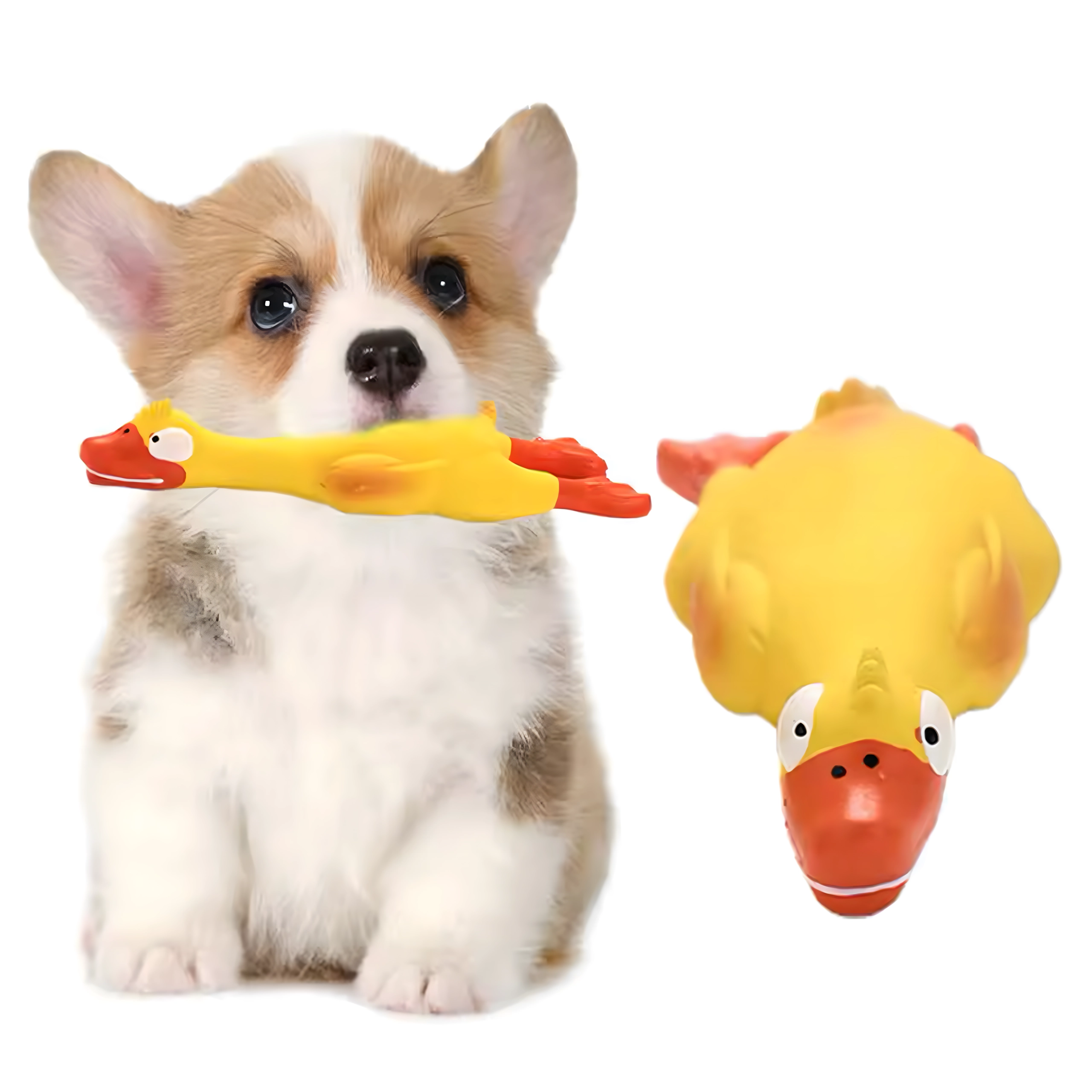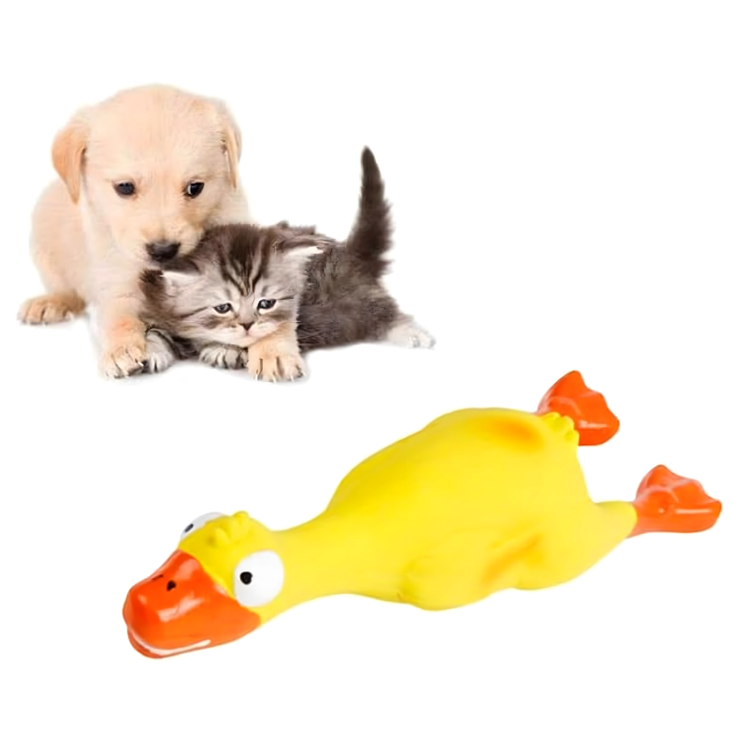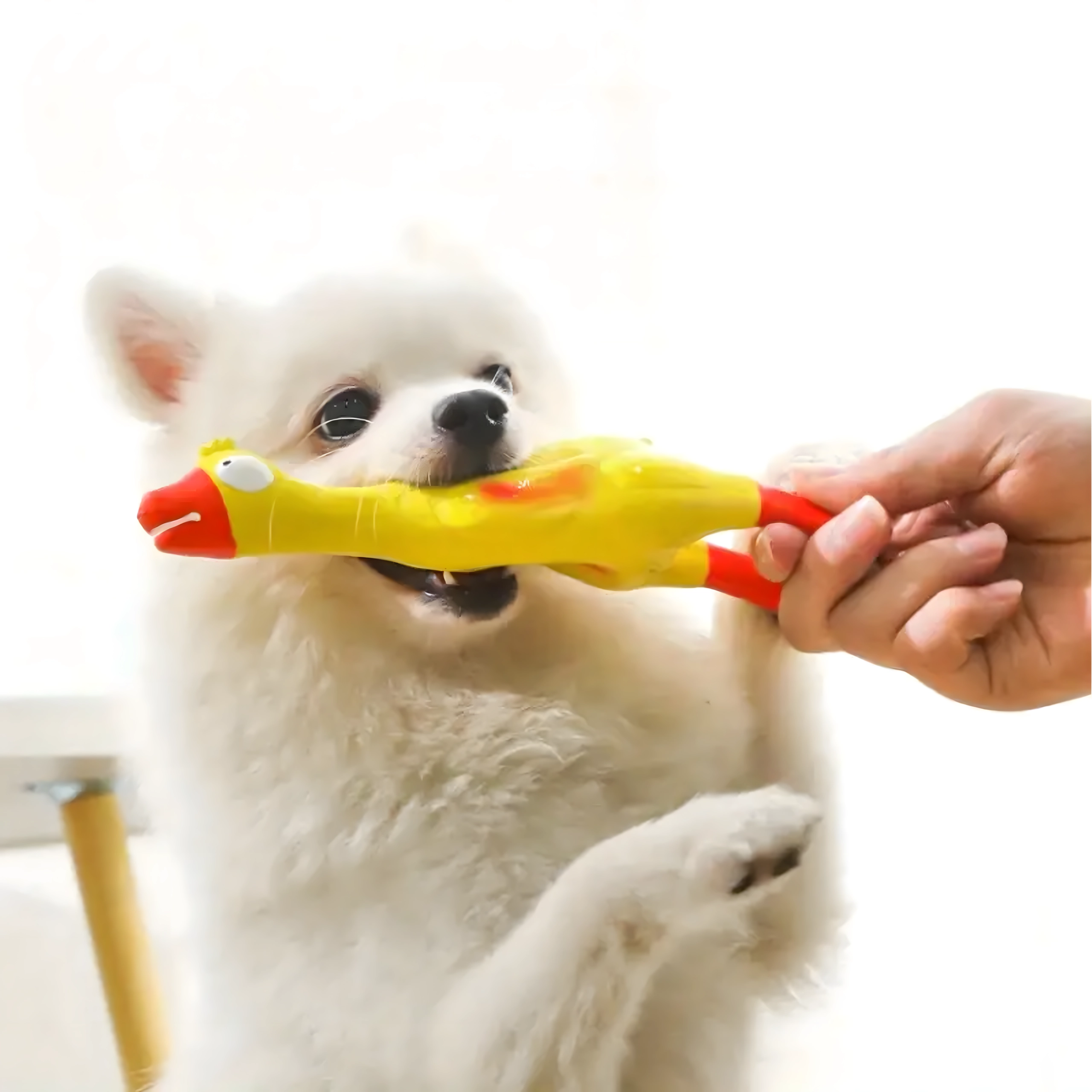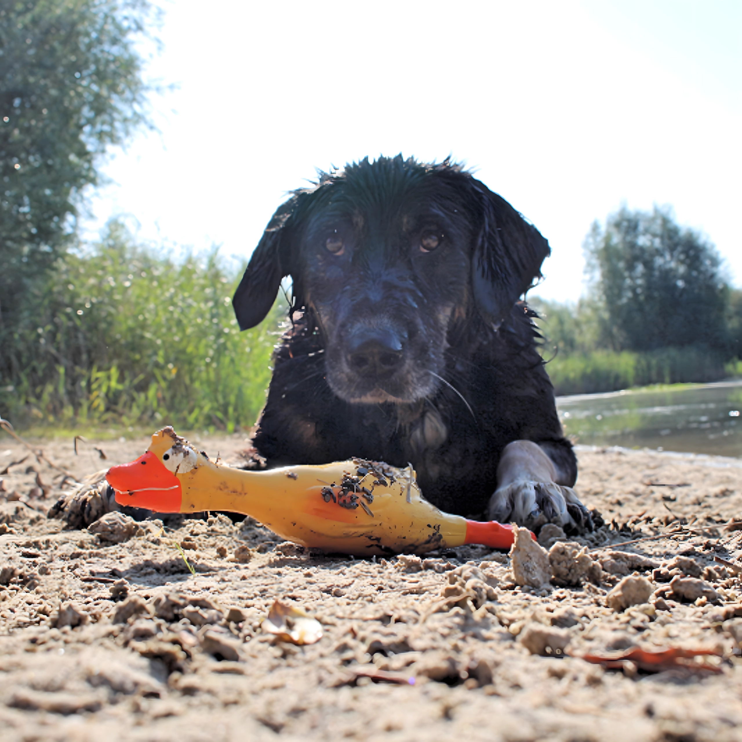 Piskajuća gumena kokoš duljine 22 cm univerzalna je igračka za svakodnevnu zabavu u domu i na otvorenom. Jarko žuta boja s narančastim kljunom i šapama dobro je vidljiva u travi i na podu, a piskalo iznutra pouzdano potiče svakog ljubimca na igru.