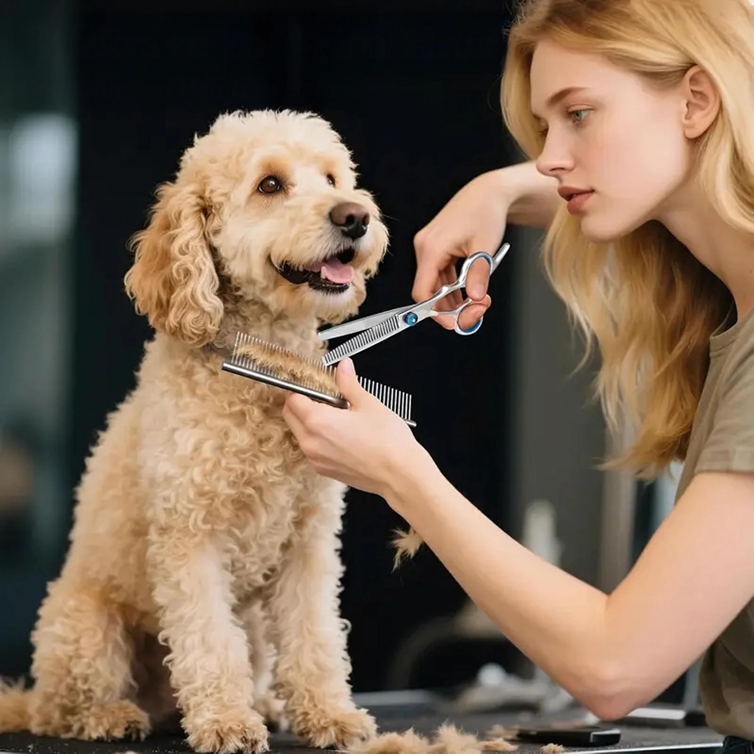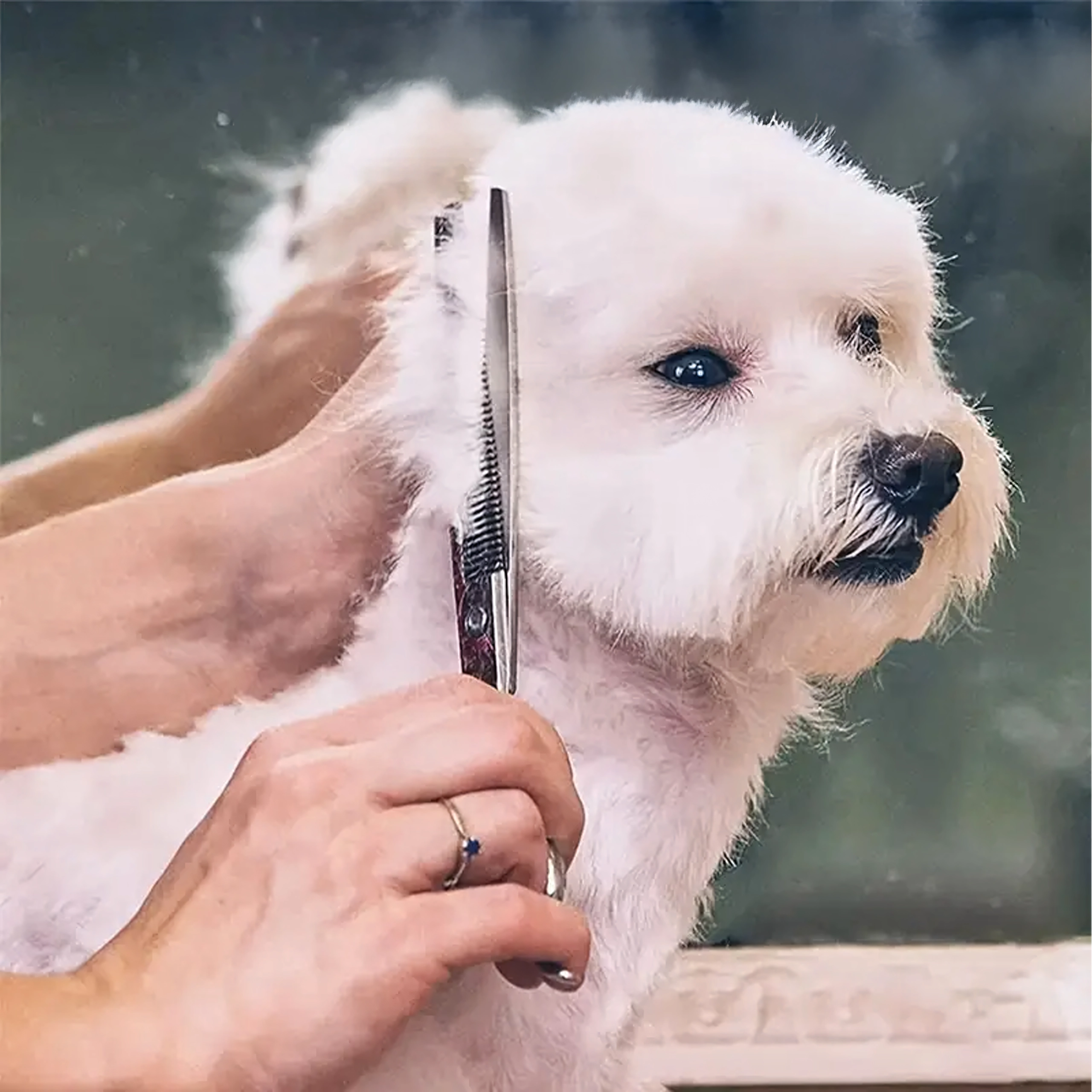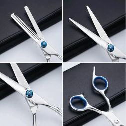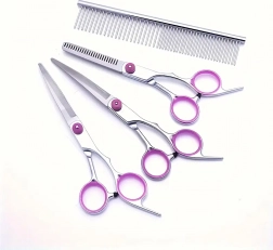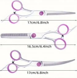 Ovaj univerzalni grooming set osmišljen je za precizno oblikovanje, prorjeđivanje i završne dorade dlake pasa i mačaka. Nehrđajući čelik jamči dug vijek trajanja, čist rez i jednostavno održavanje. Zahvaljujući ergonomskim prstenovima za prste i osloncima, rad je udoban i pri duljoj uporabi.
